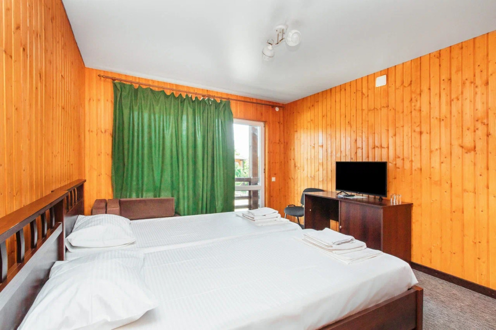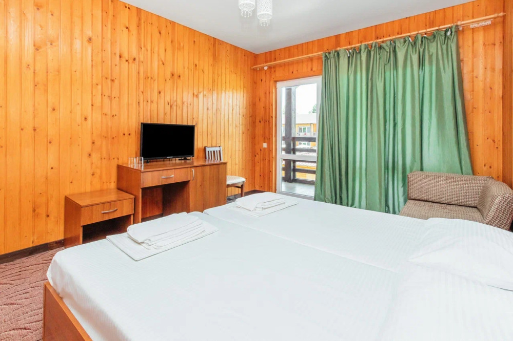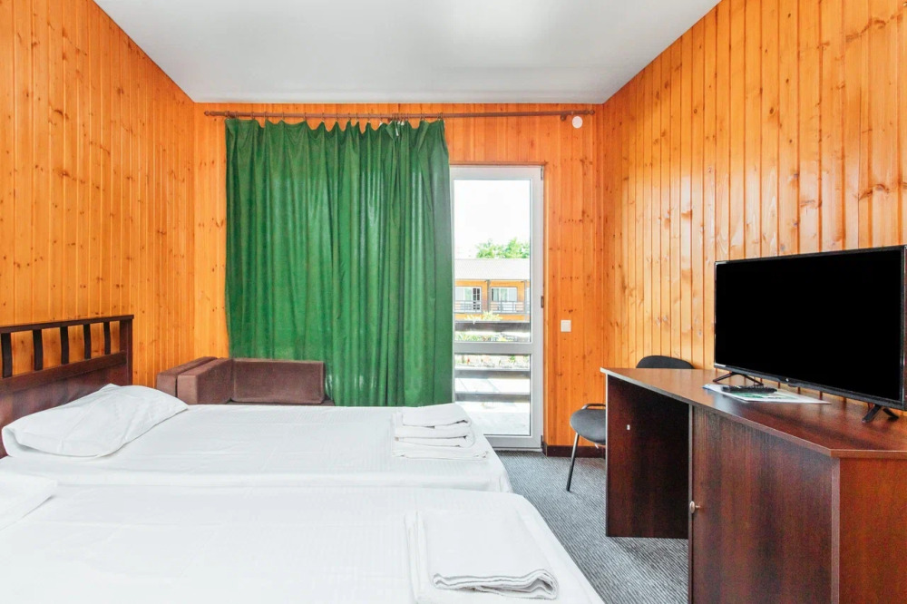 - комфортабельный однокомнатный номер ( 2 этаж) общий балкон со всеми удобствами, оборудован двумя