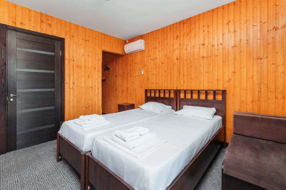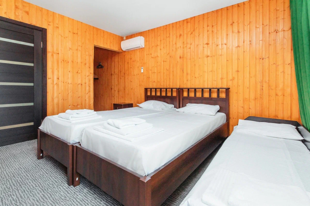 Корпуса отеля выполнены из натурального дерева. Номера на первом этаже имеют собственный вход. (Корпус I построен в 2017 году, корпус II построен в 2018 году, корпус III построен в 2020 году).