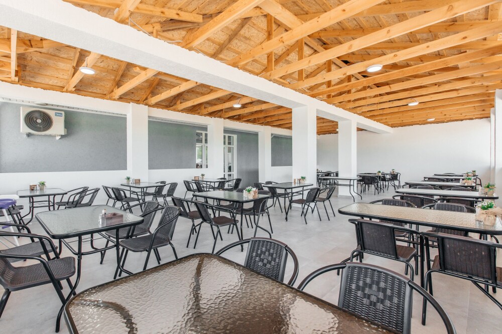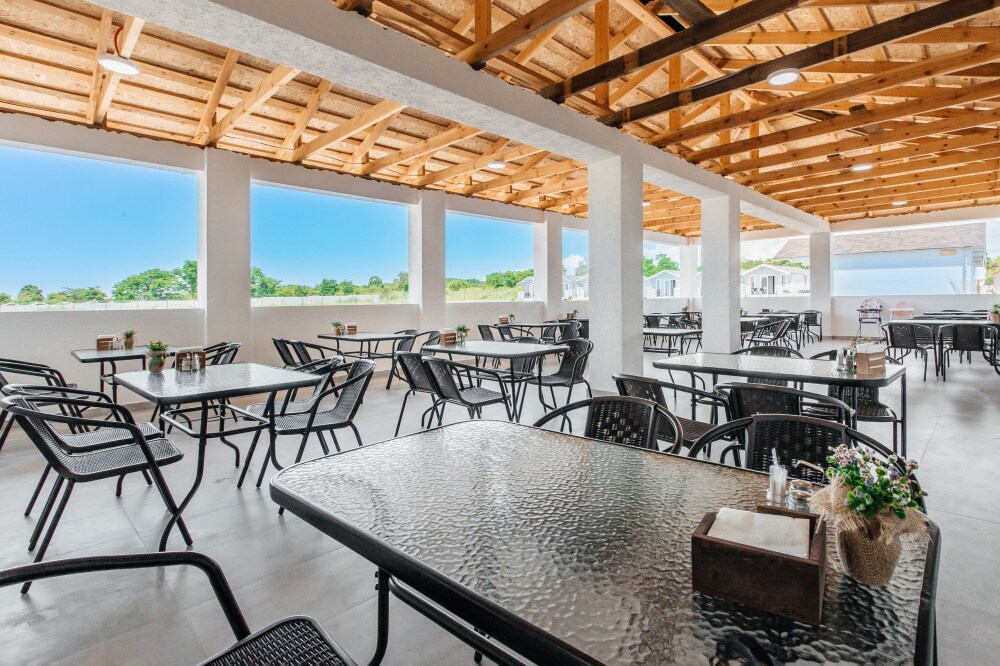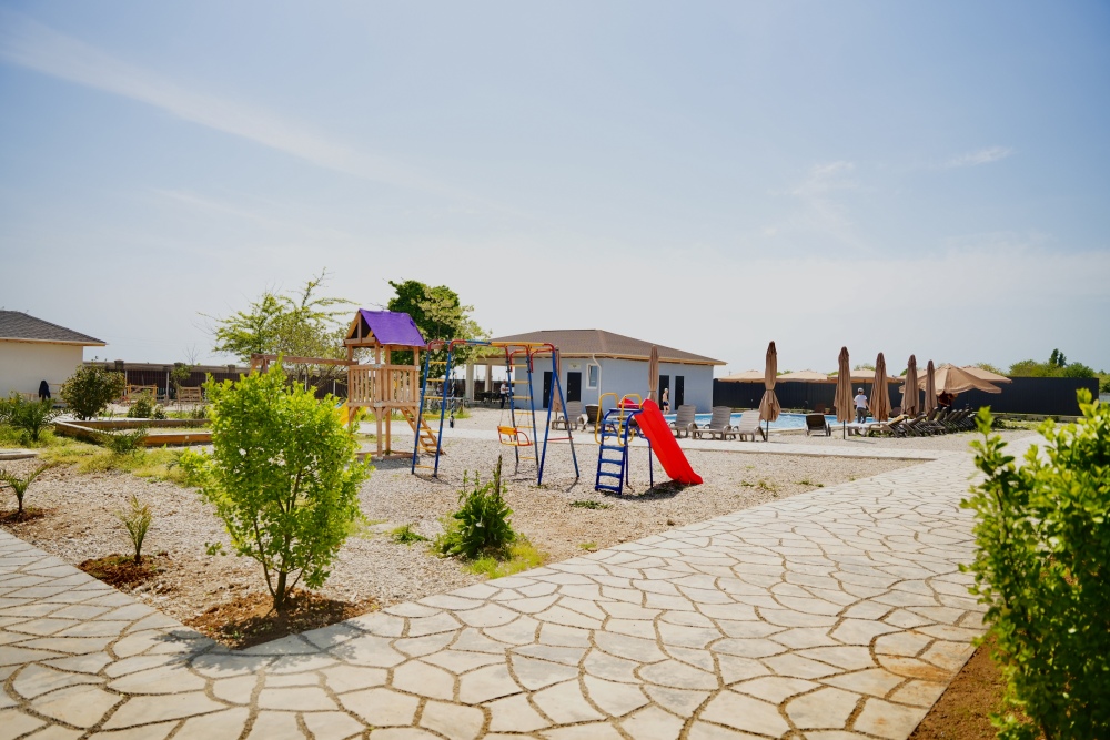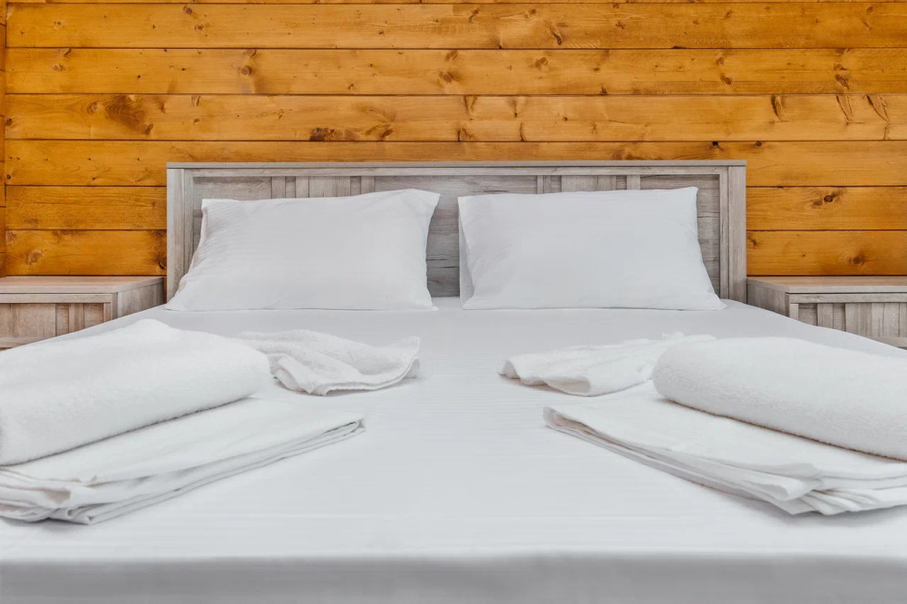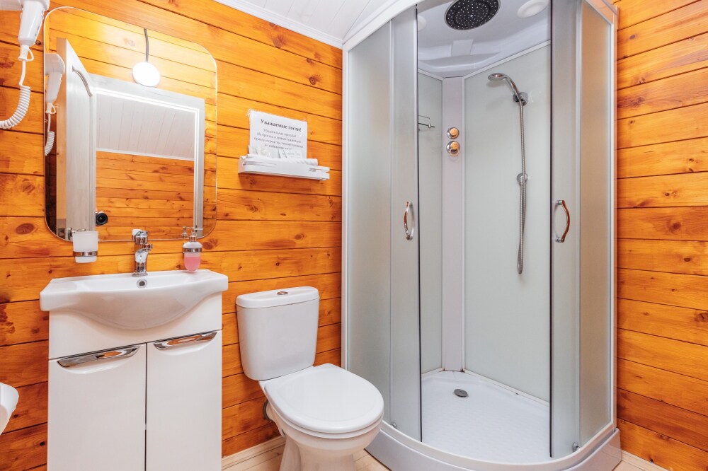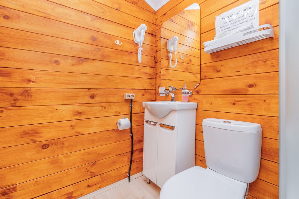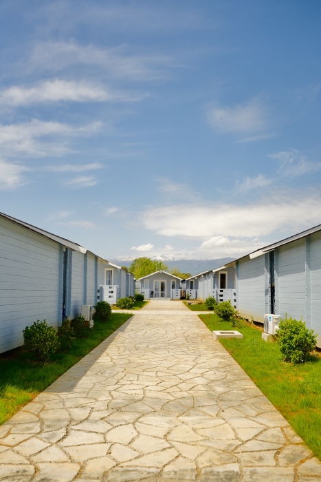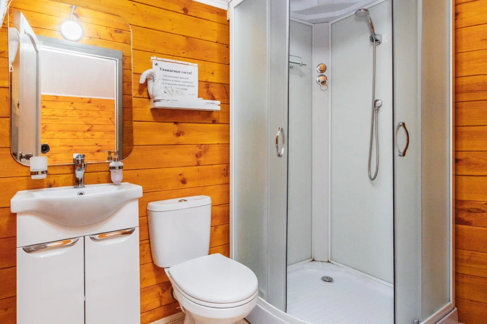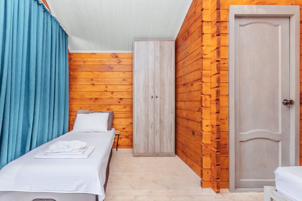 На территории отеля находятся 100 деревянных шале из сосны со всеми удобствами и отдельным входом.
