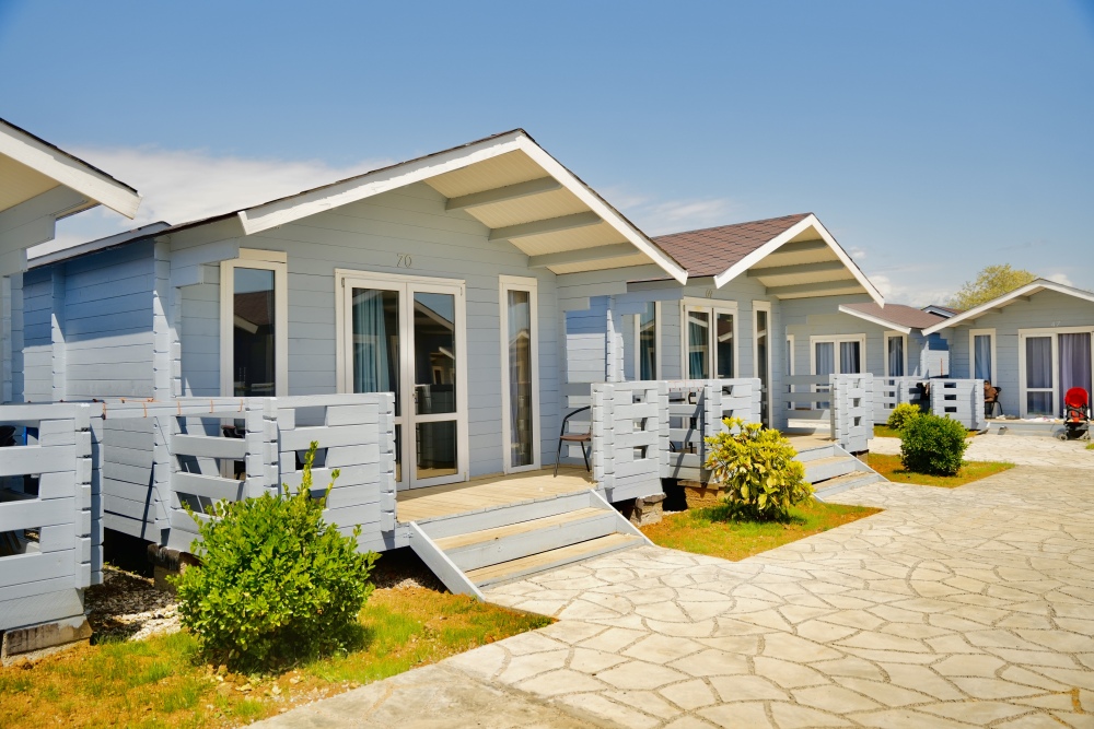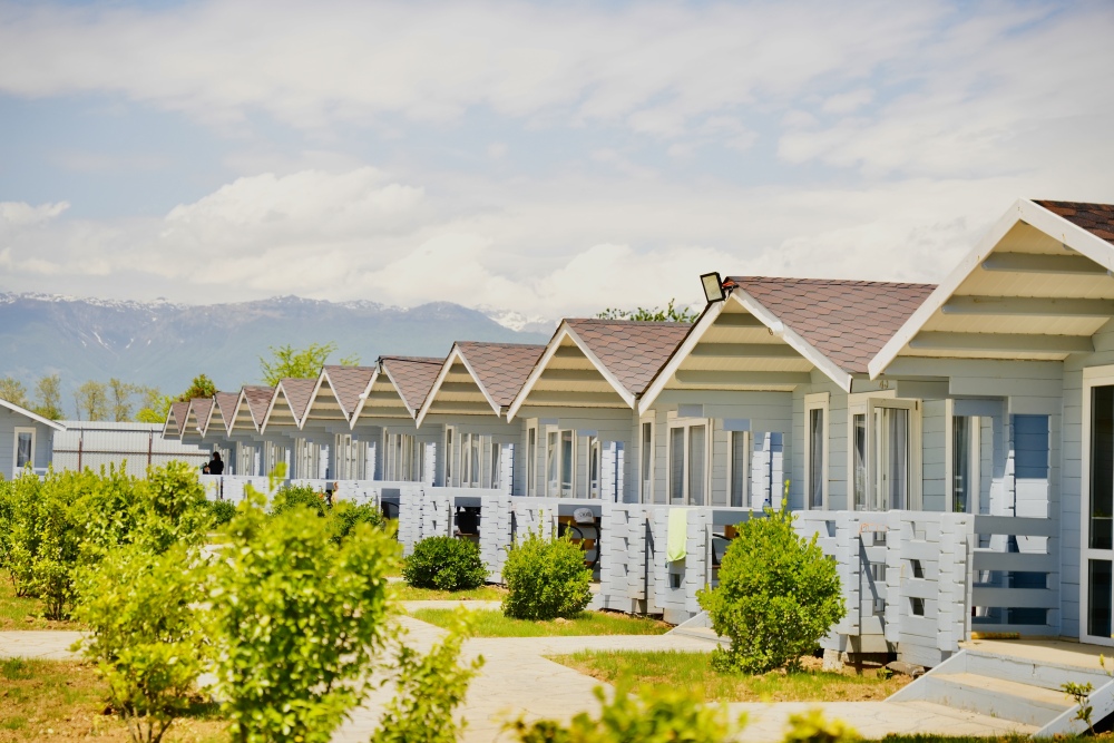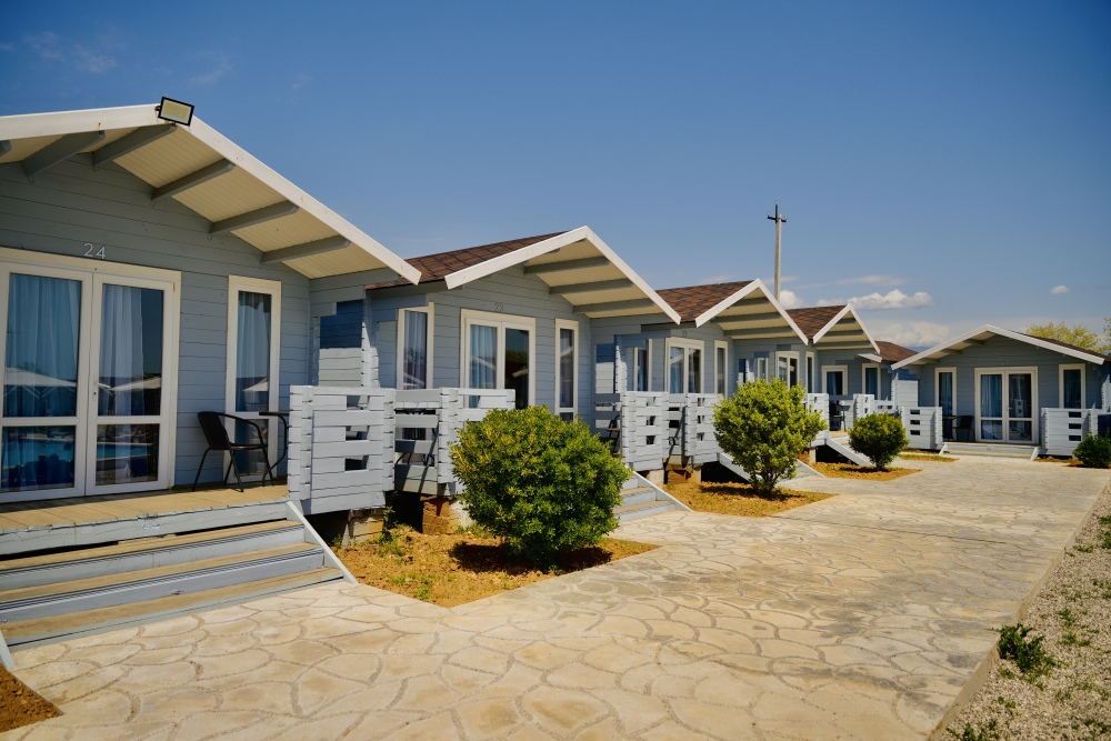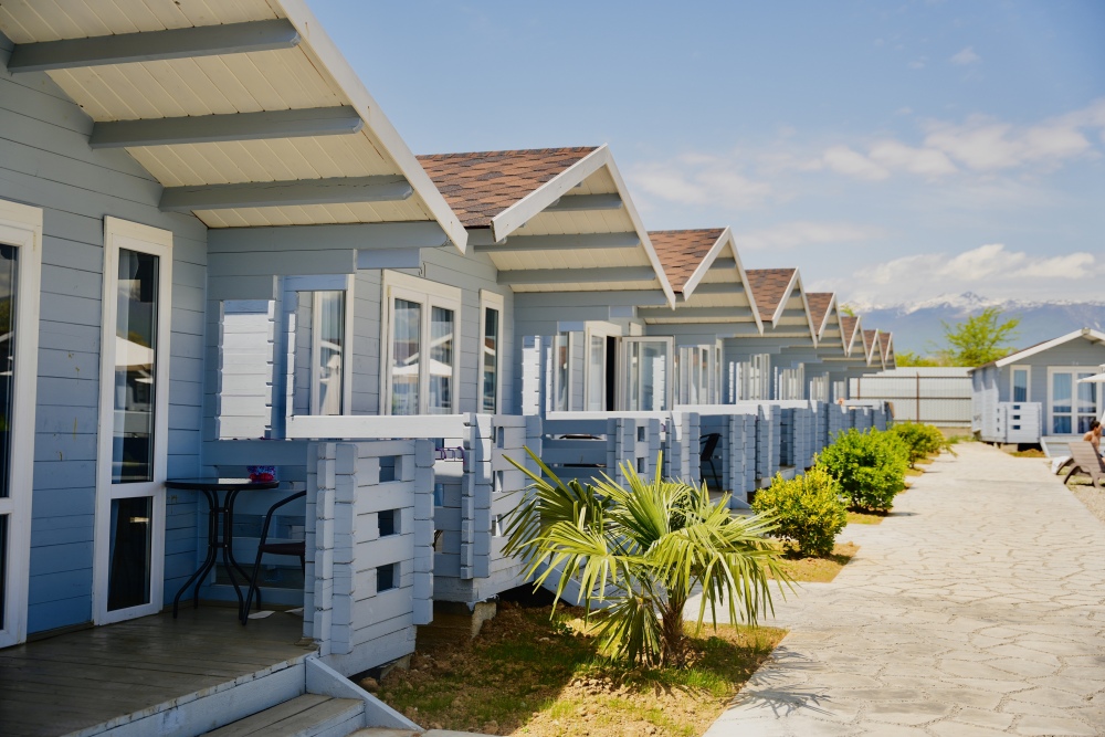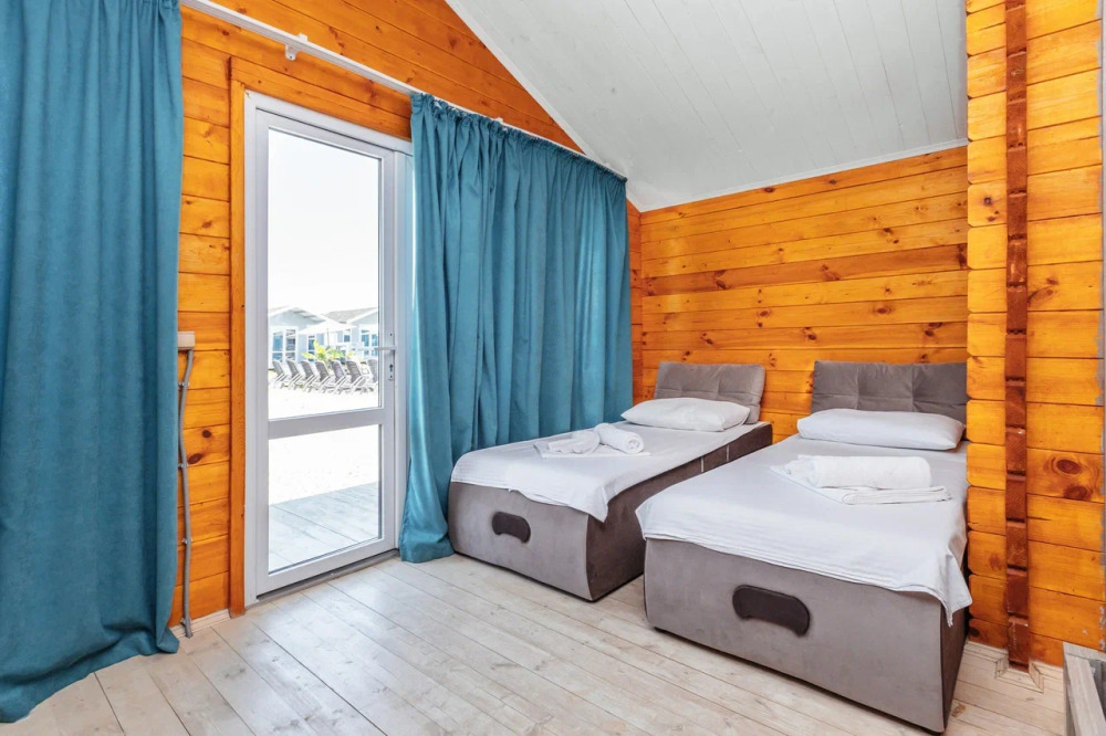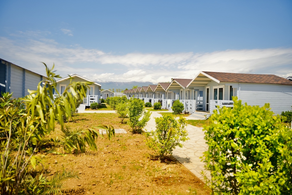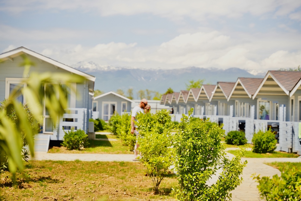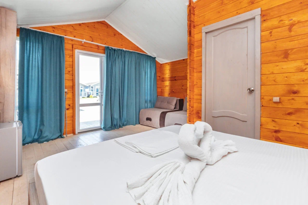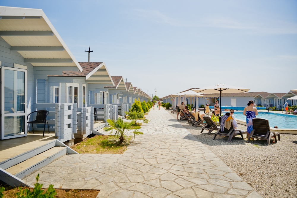 Номерной фонд отеля – 100 отдельно стоящих деревянных домика с отдельным входом.