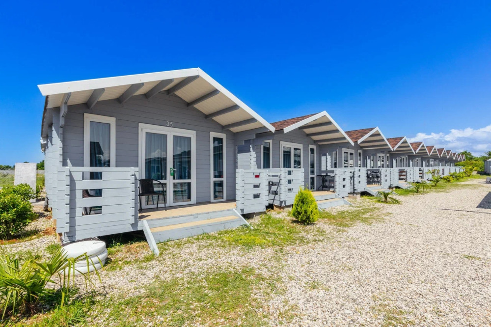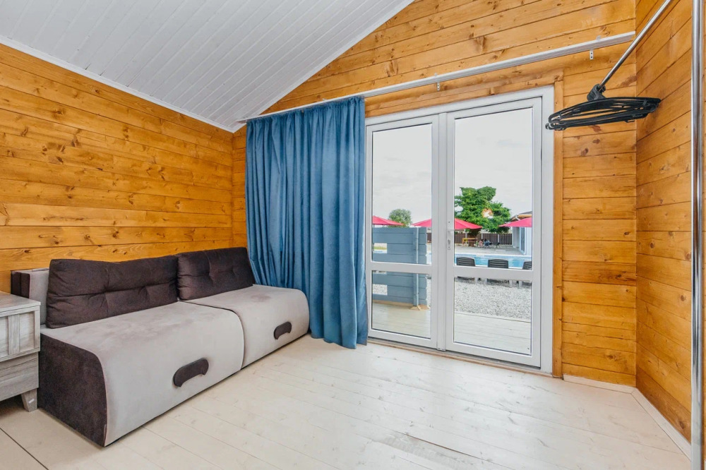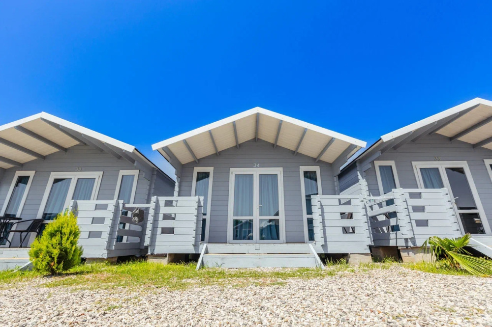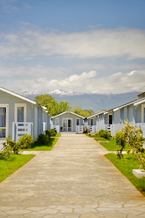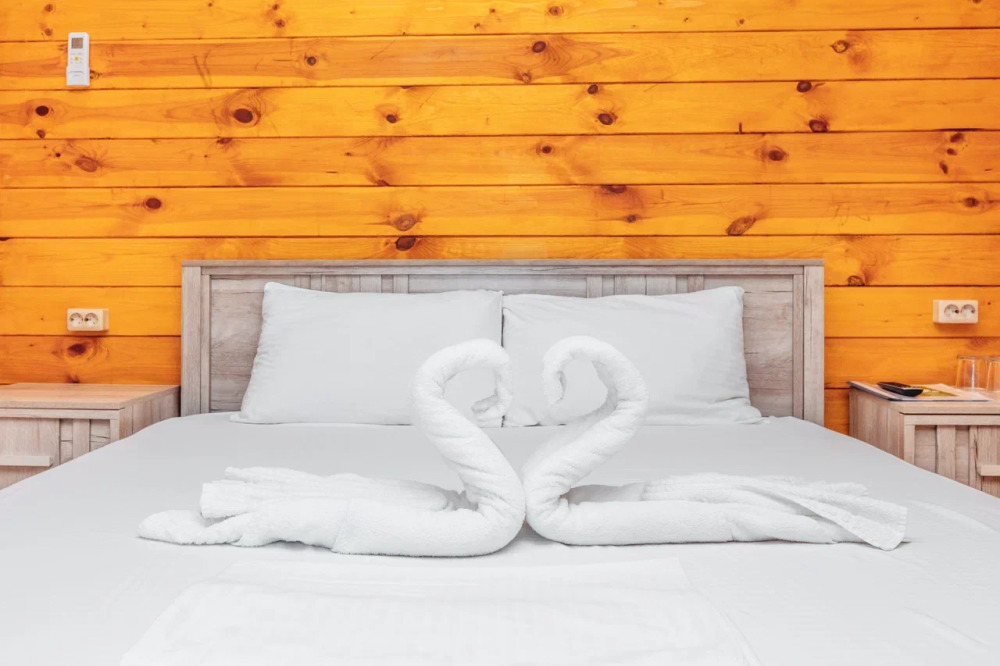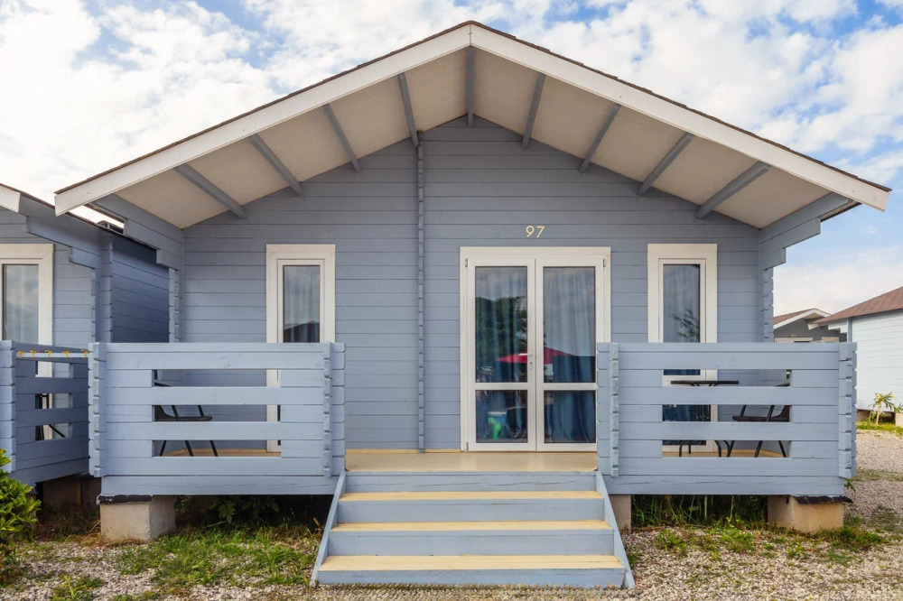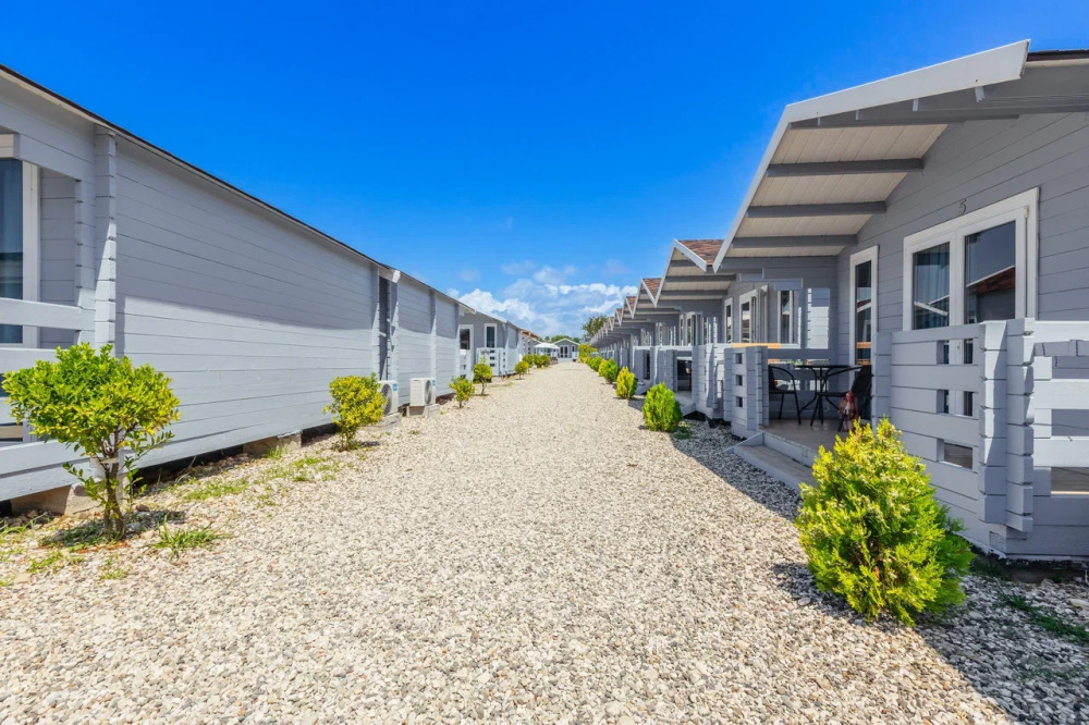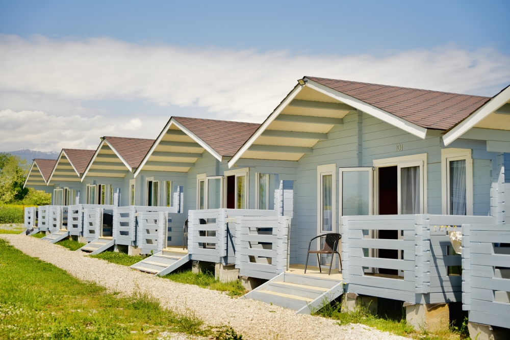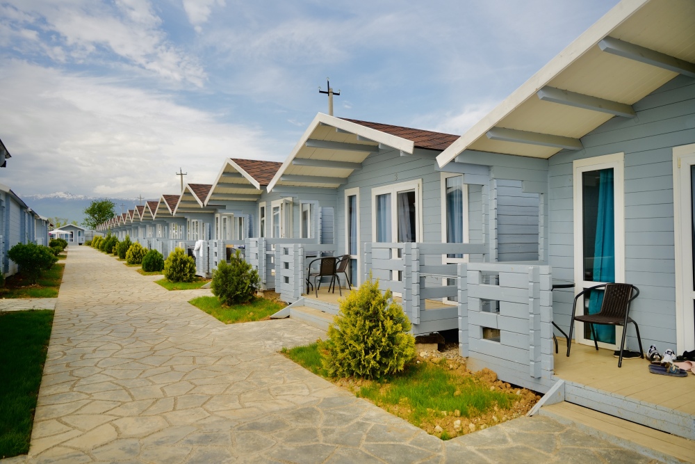 Номерной фонд отеля – 100 отдельно стоящих деревянных домика с отдельным входом.