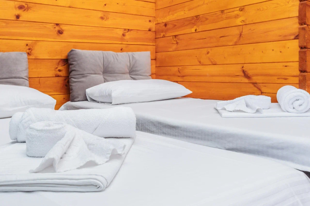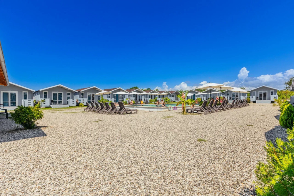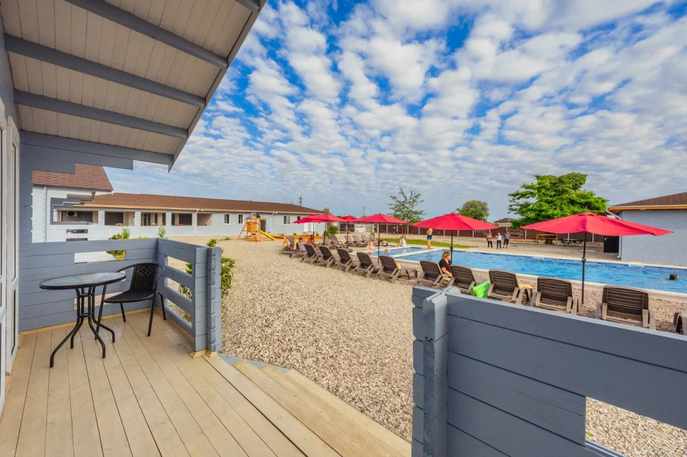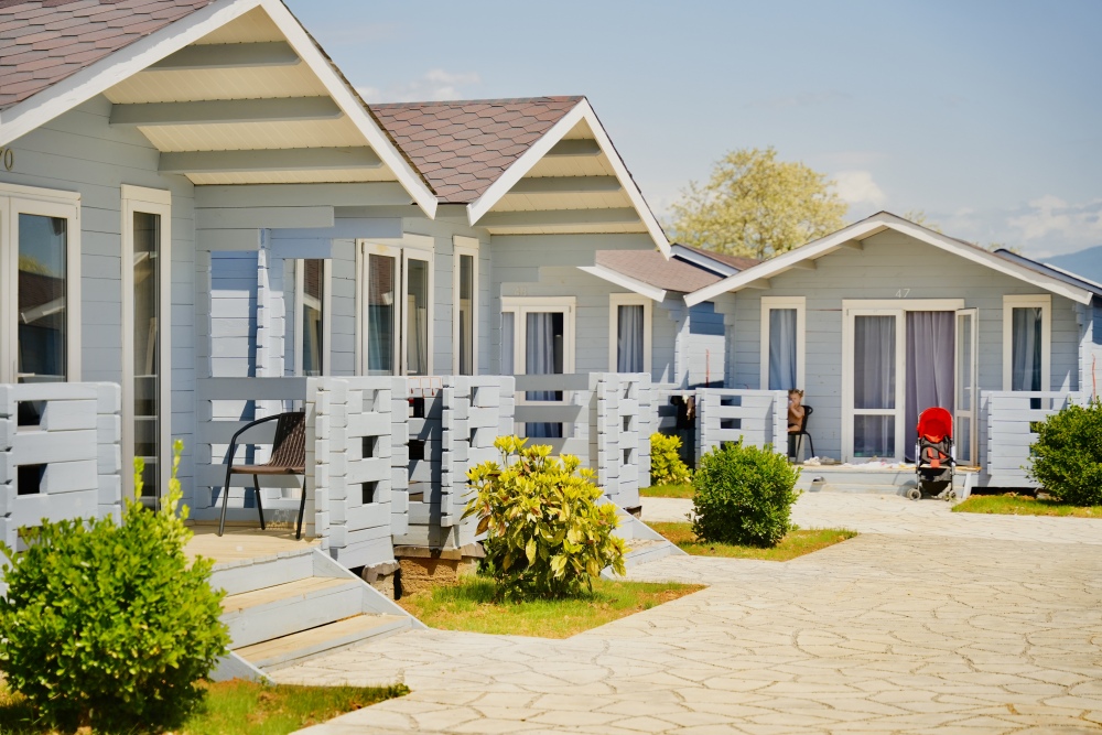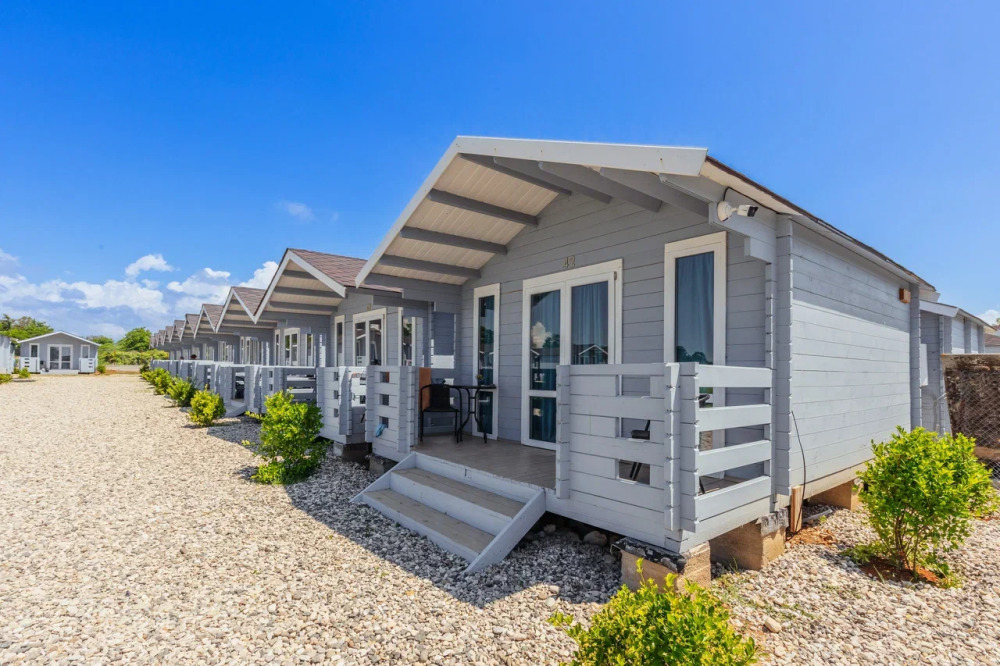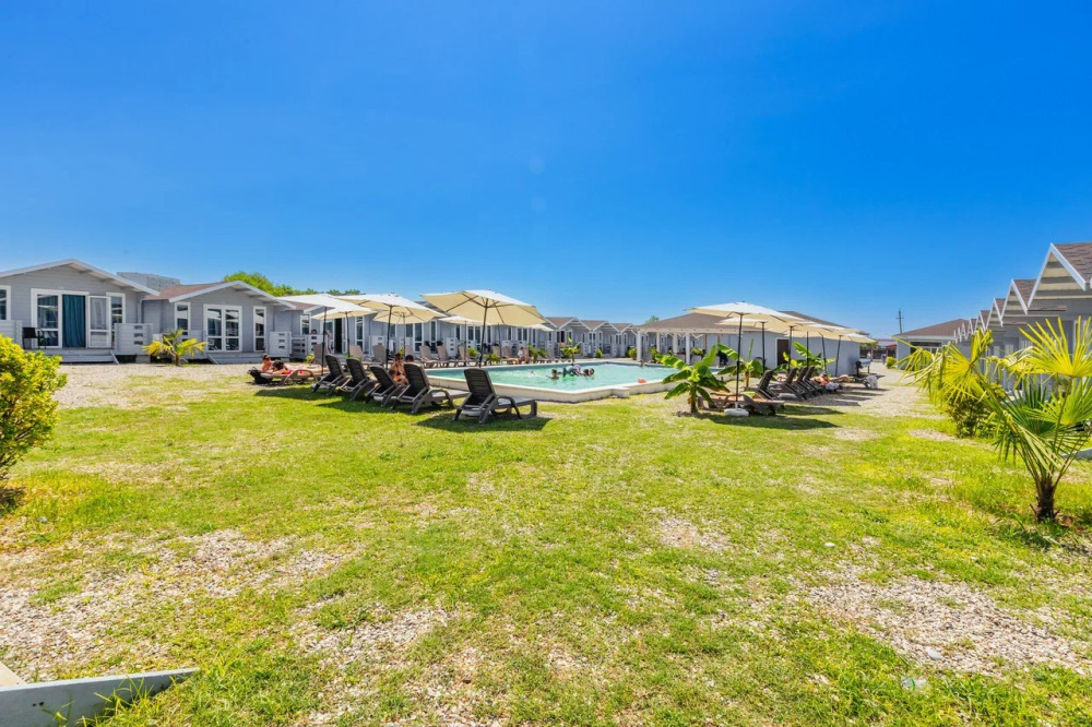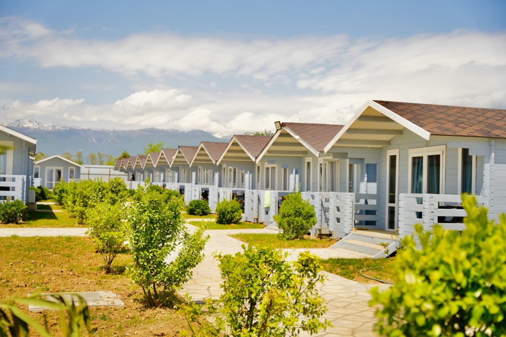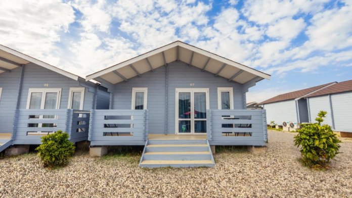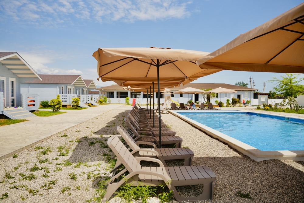 Номерной фонд отеля – 100 отдельно стоящих деревянных домика с отдельным входом.