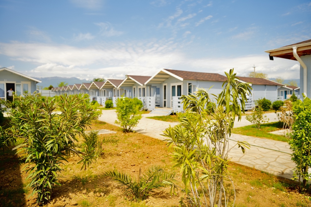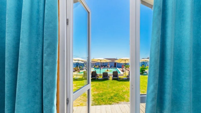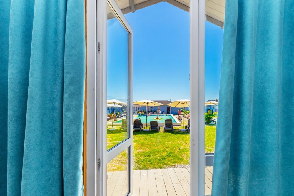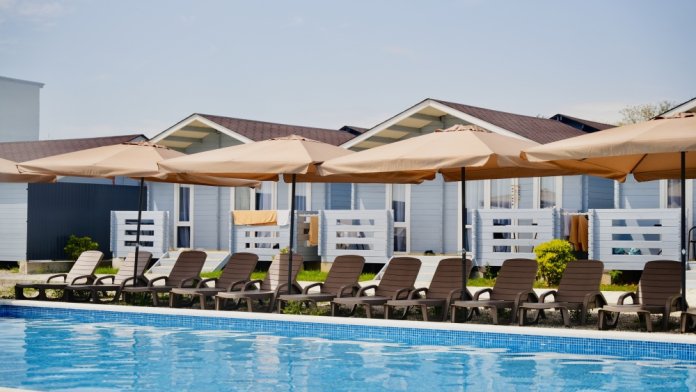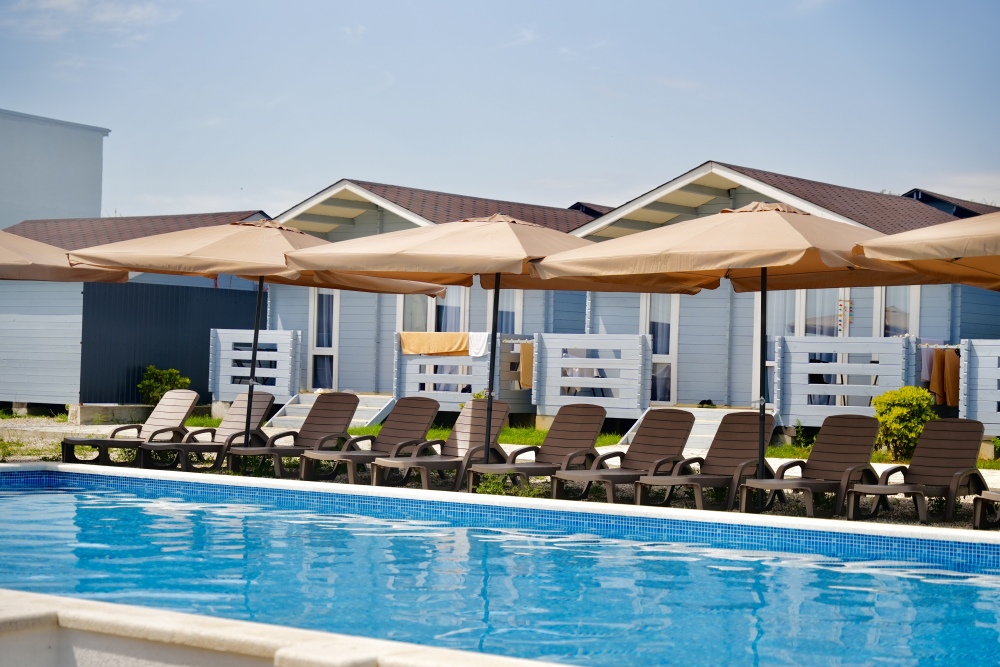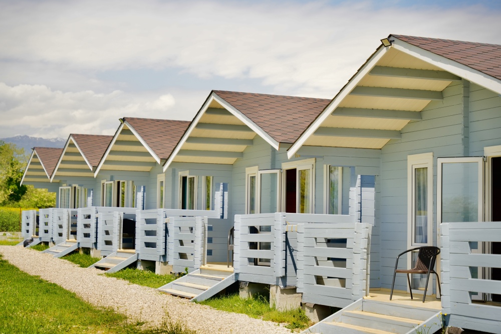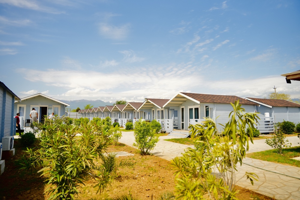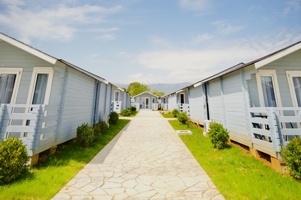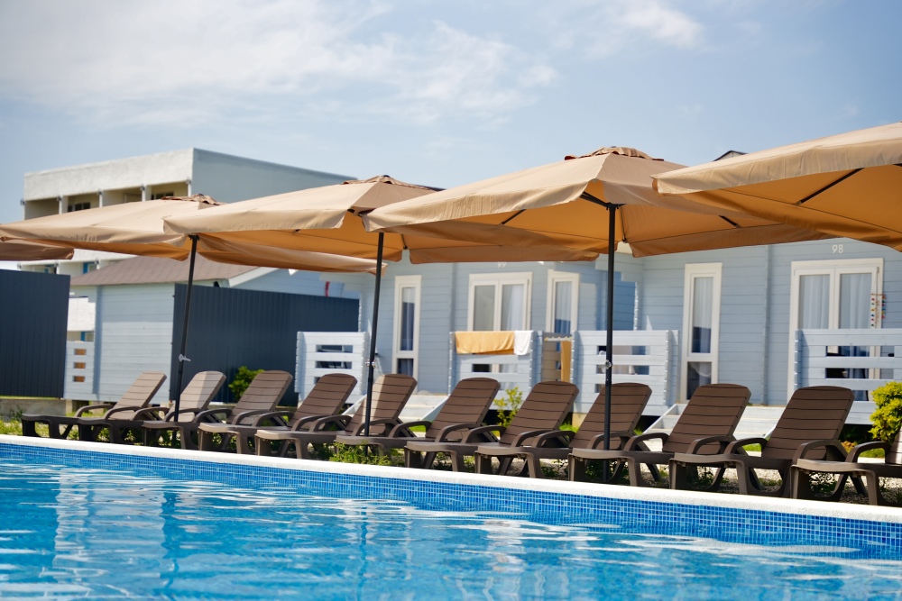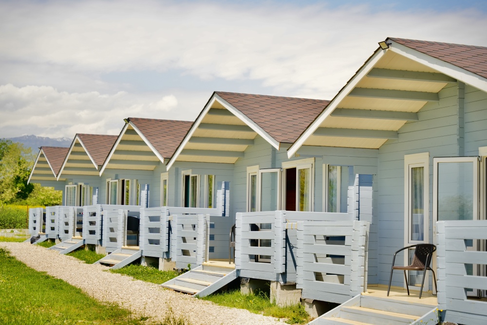 Номерной фонд отеля – 100 отдельно стоящих деревянных домика с отдельным входом.