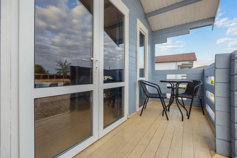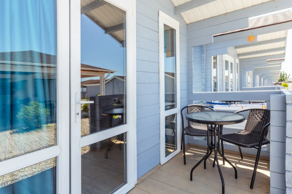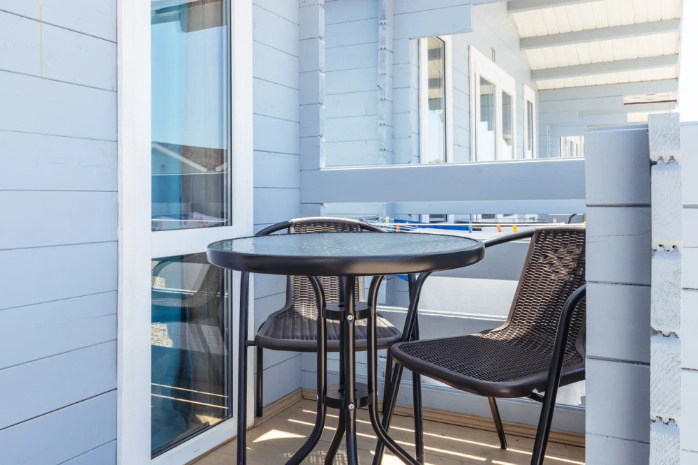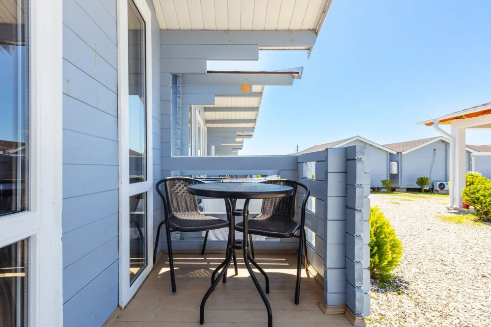 Комфортабельный однокомнатный номер с балконом с отдельным входом, со всеми удобствам — большая двуспальная кровать, 1 кресло-кровать, шкаф, стол, стул, душевая кабинка, санузел.