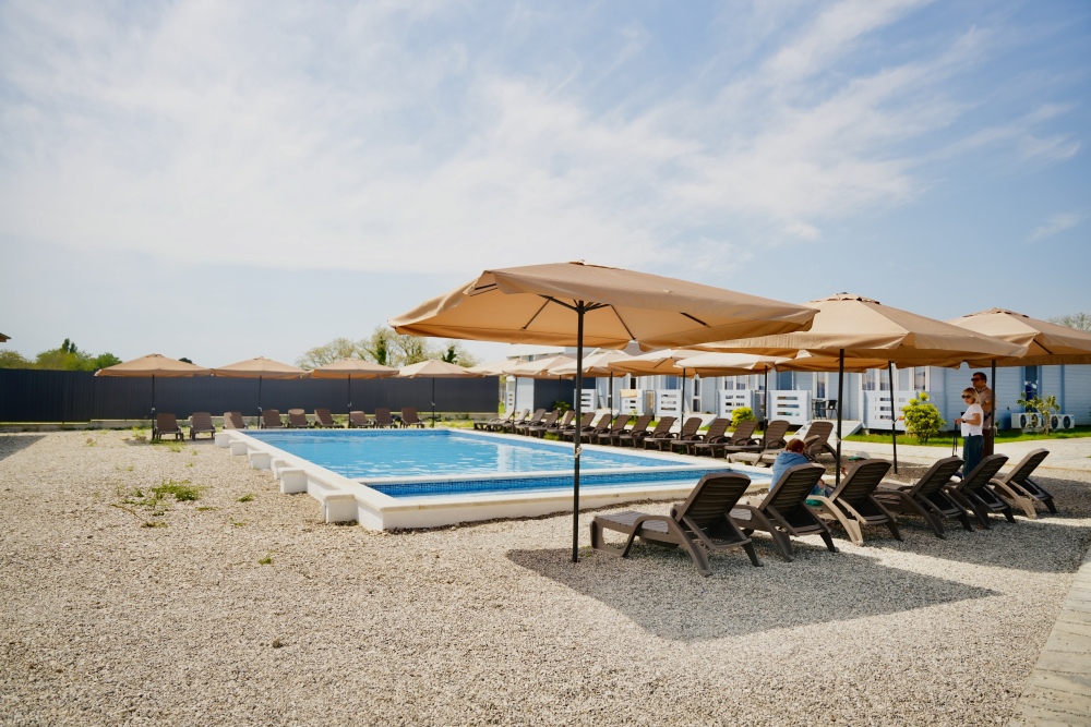 Два открытых бассейна, один подогреваемый ( 7/14) , второй без подогрева с детским отсеком ( 7/16).