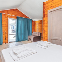 - комфортабельный двухкомнатный номер с отдельным входом, со всеми удобствами, оборудован двумя двуспальными кроватями, 2 кресло-кровати, шкаф, стол, стул, душевая кабинка, санузел.