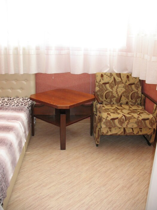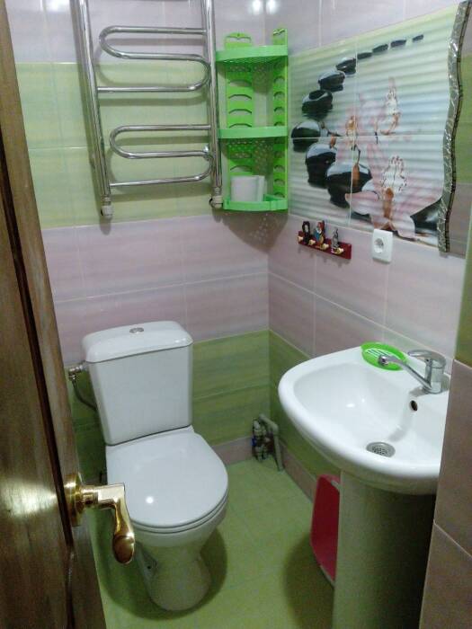 Практически это 3-комнатная квартира проходного типа.Все условия и удобства,гарячая вода круглосуточно.