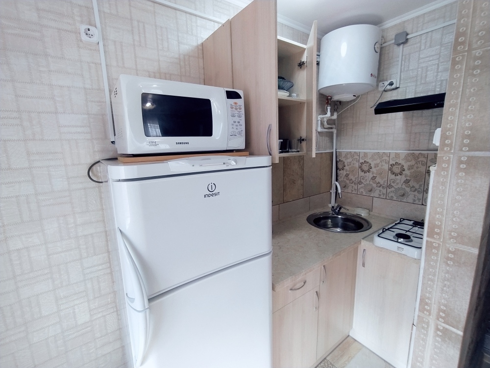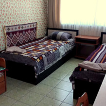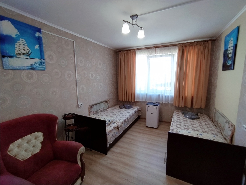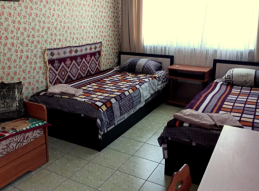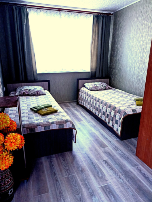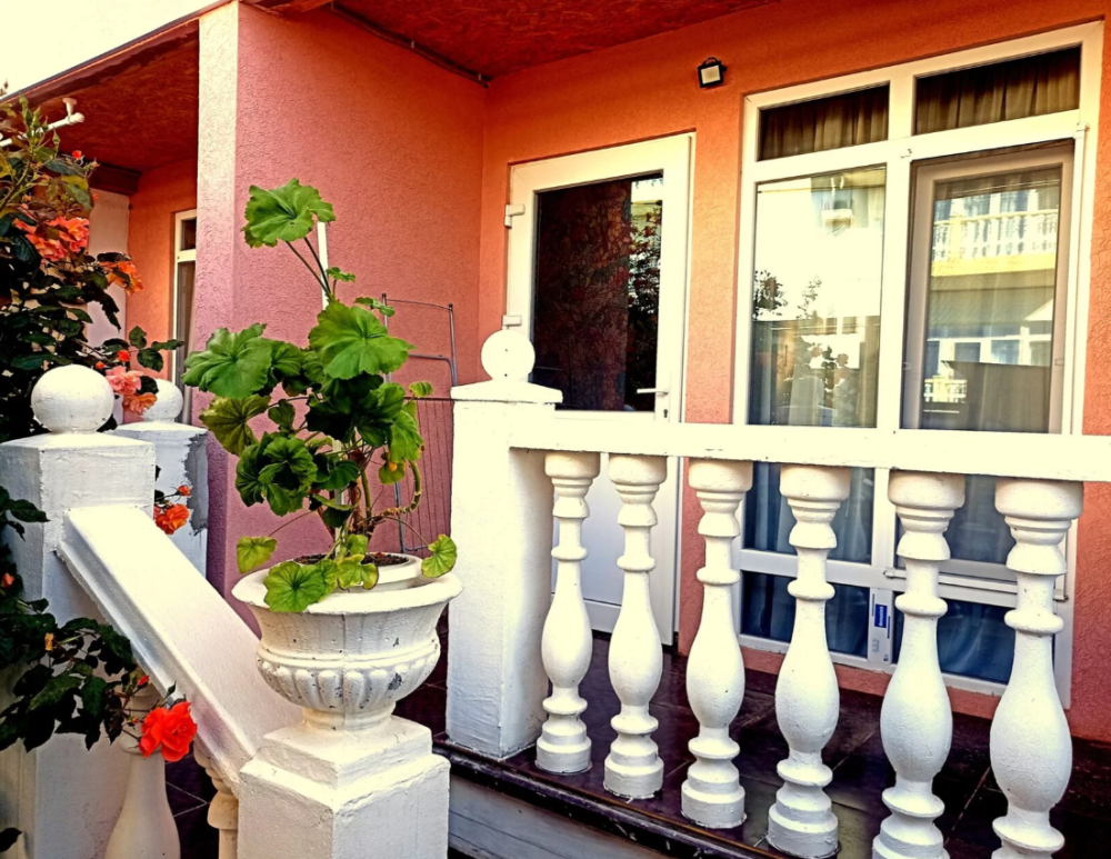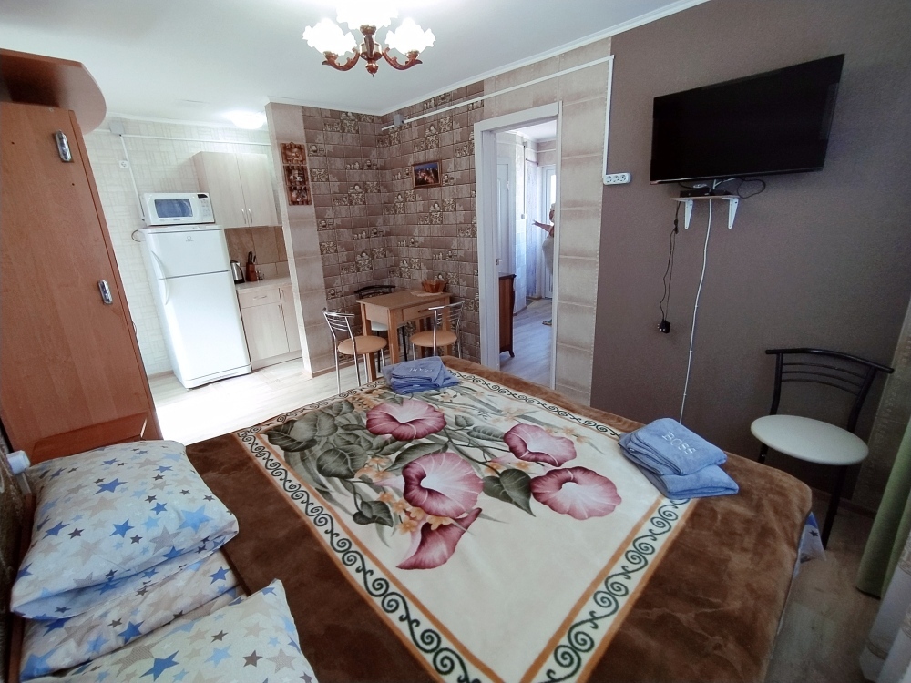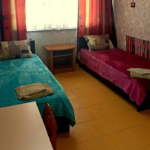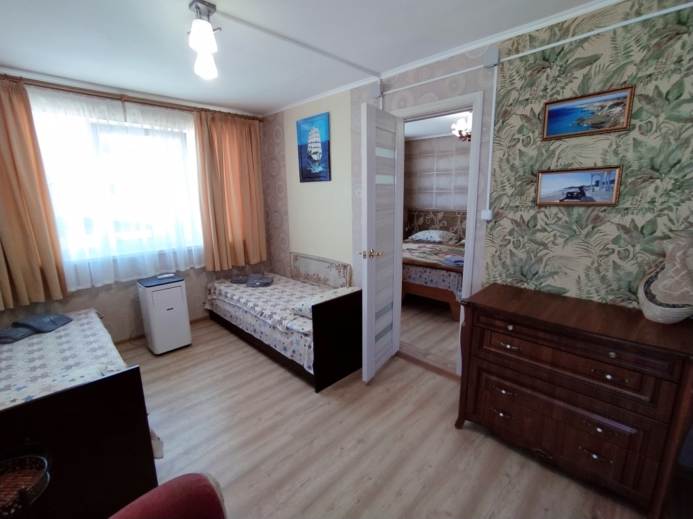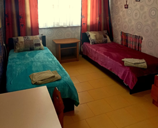 На первом этаже комната с верандой, санузлом и душем. Холодильник, чайник, двуспальная кровать. Кондиционеры на каждом этаже.