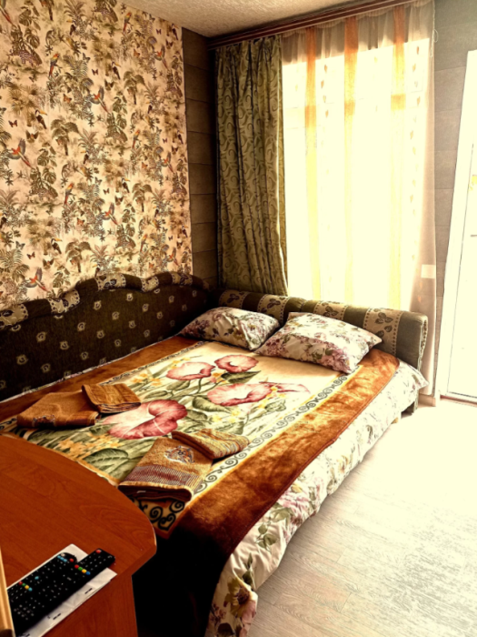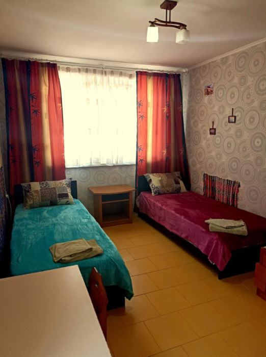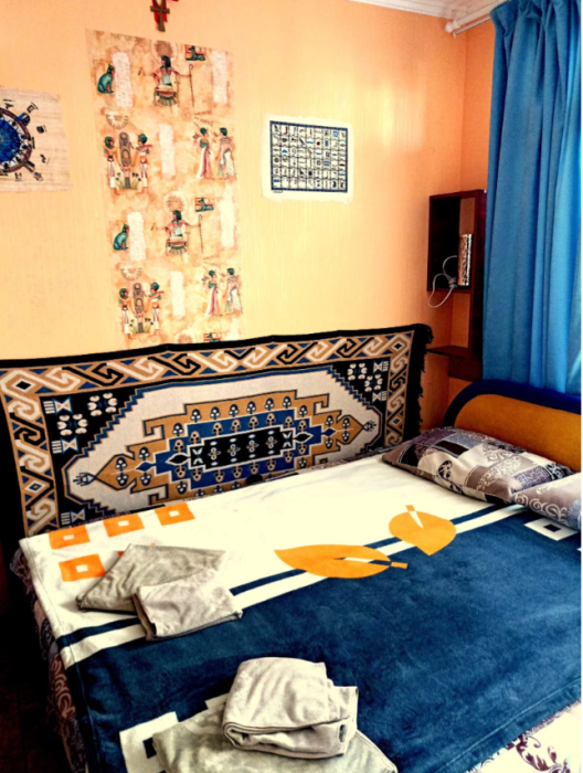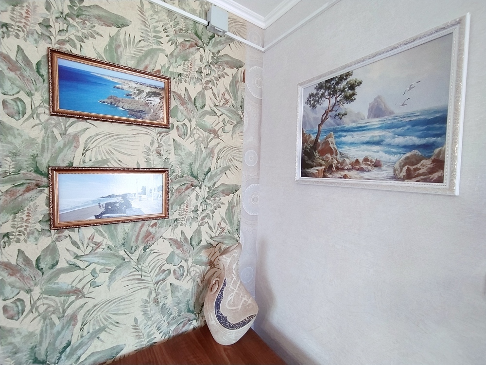 Номер убран эзотерическими картинами, обладающими целебными уравновешивающими баланс, настенными панно. Атмосфера в доме и окружение способствует восстановлению баланса и оздоравливающего отдыха.