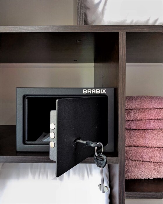 В номере имеется кондиционер, смарт тв, wi-fi, чайник, холодильник, столовые приборы, полотенца, туалетные принадлежности, сейф.