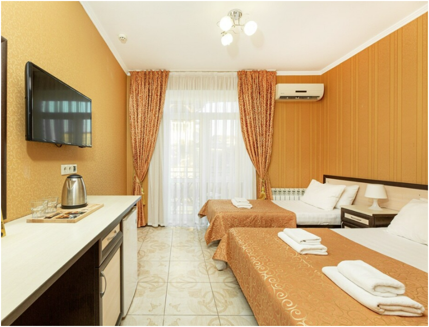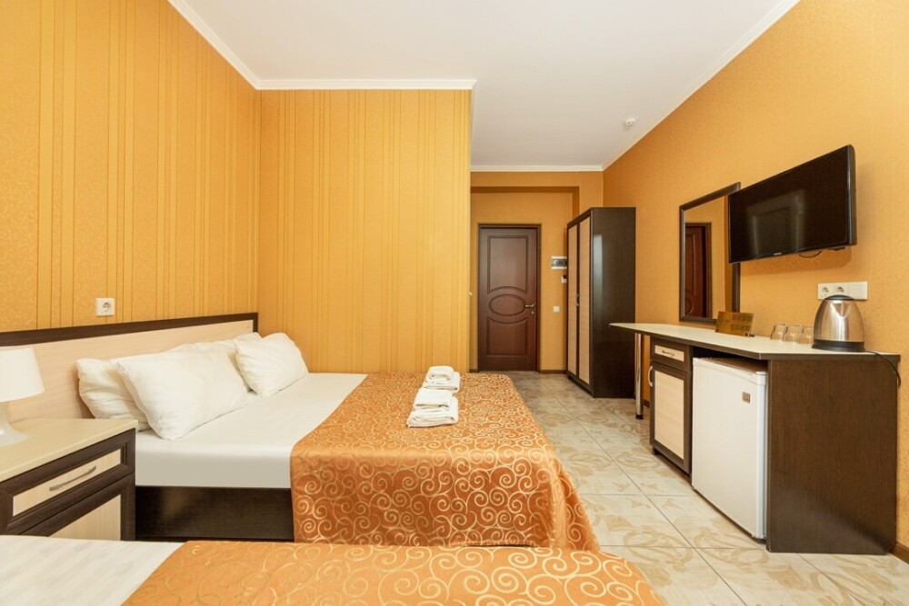 Номерной фонд отеля представлен 56-ю номерами разных категории с уютным интерьером. Во всех номерах есть балкон. Каждый номер оснащен двуспальной и односпальной кроватями, прикроватными тумбочками, платяным шкафом, туалетным столиком, жидкокристаллическим телевизором, холодильником, кондиционером, сейфом, электрочайником, феном. В ванной комнате душ, туалет, раковина, туалетная полочка с зеркалом, туалетные принадлежности, комплект банных полотенец.