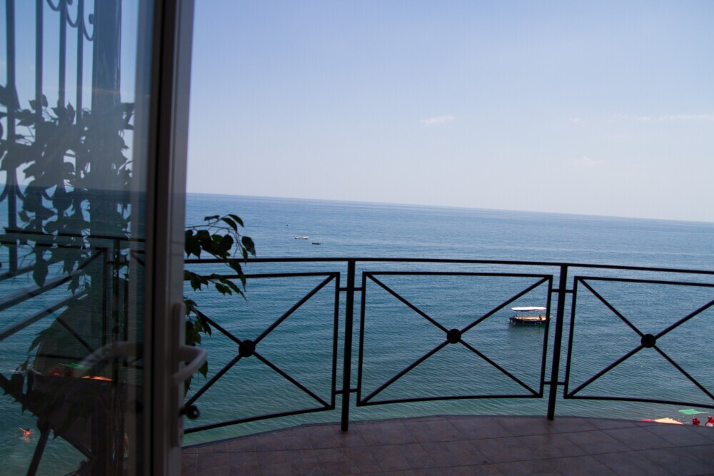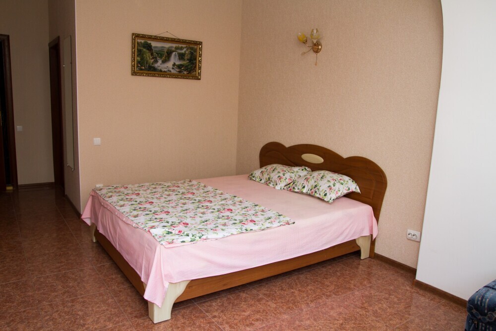 Комфортабельный большой семейный номер с открытым балконом, с видом на море, оснащен всеми удобствами. В номере кондиционер, большая двуспальная кровать, две раскладные кровати, холодильник, чайник, шкаф для одежды, телевизор. Большой балкон со столом и стульями. Ванная комната с душем, горячая и холодная вода круглосуточно. Номер рассчитан на проживание до 4 человек.