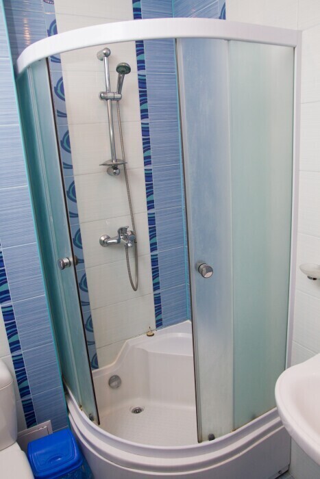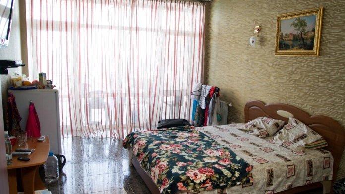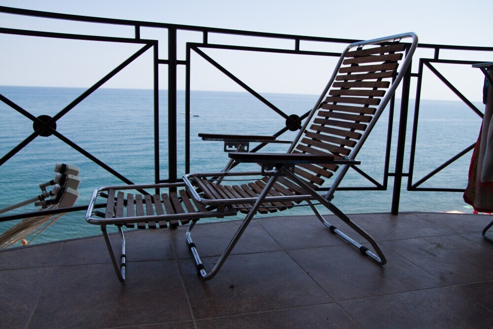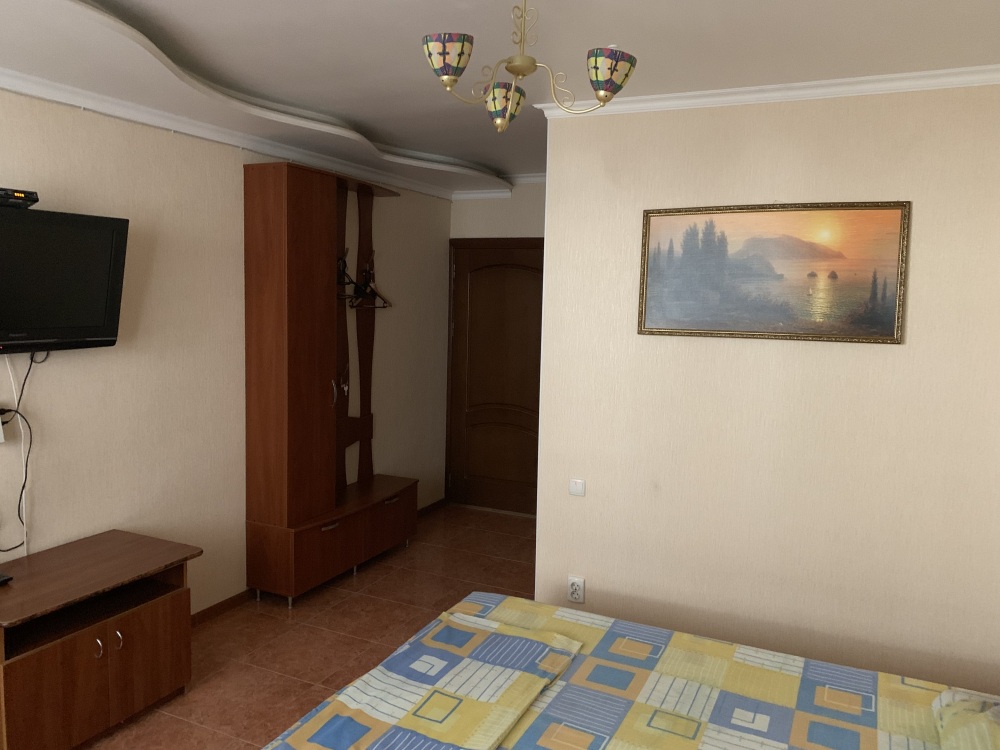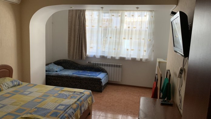Комфортабельный большой семейный номер с открытым балконом, с видом на море, оснащен всеми удобствами. В номере кондиционер, большая двуспальная кровать, две раскладные кровати, холодильник, чайник, шкаф для одежды, телевизор. Большой балкон со столом и стульями. Ванная комната с душем, горячая и холодная вода круглосуточно. Номер рассчитан на проживание до 3 человек.