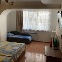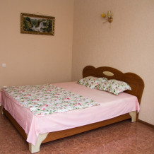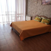 Комфортабельный большой семейный номер с балконом, оснащен всеми удобствами. В номере кондиционер, большая двуспальная кровать, раскладная кровать, холодильник, чайник, шкаф для одежды, телевизор. Ванная комната с душем, горячая и холодная вода круглосуточно. Номер рассчитан на проживание до 3 человек.