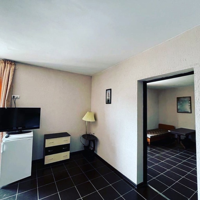 Гостям, для проживания, предлагаются уютные номера со всем необходимым для комфортного отдыха. В каждом номере: душевая кабина, санузел, кондиционер, холодильник, телевизор со спутниковыми каналами, необходимая мебель. У каждого номера своя зона со столиком.