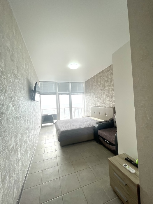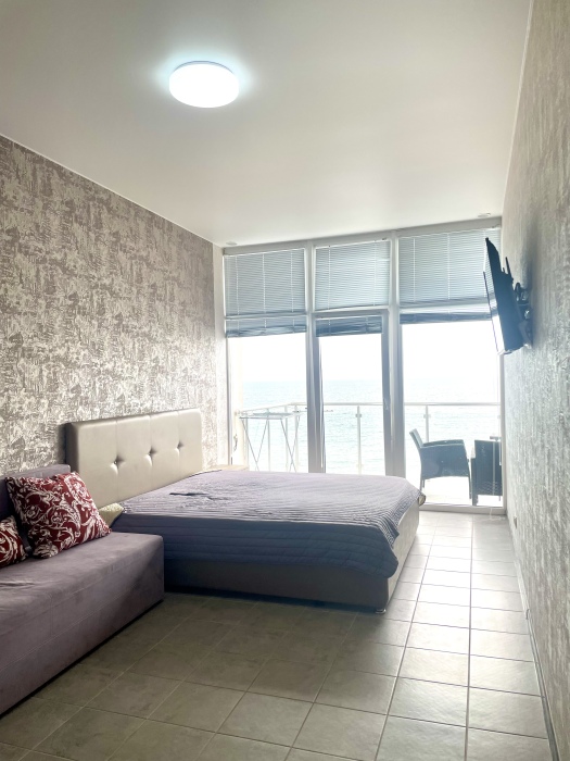 Панорамный вид на море из апартаментов.