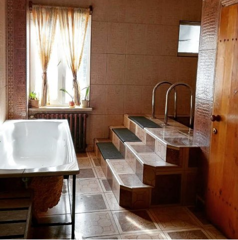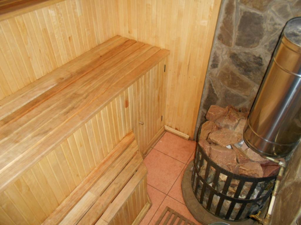 На территории беседки, мангальные зоны, детская площадка и банька на дровах, в которой можно принять даже хвойную ванну.