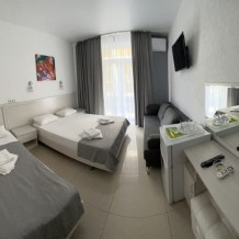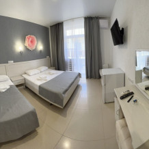 Номерной фонд гостевого дома состоит из 25 номеров различных категорий, каждый из которых снабжен всеми необходимыми удобствами для комфортного отдыха. В каждом номере имеются санузел с душевой кабиной, кондиционер с климат-контролем, беспроводной интернет. К Вашим услугам предоставляется отрытый бассейн , столовая с русской, европейской, японской кухней, кафе для приятного отдыха.