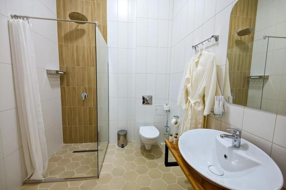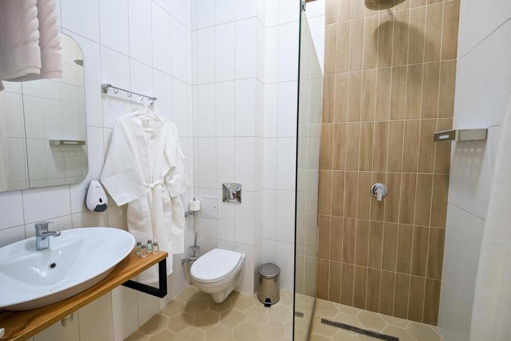 В стоимость проживания включено посещение акватермальной зоны: финская сауна, соляная комната, открытый подогреваемый бассейн (летом 28-30 ºС, зимой 28-30 ºС).