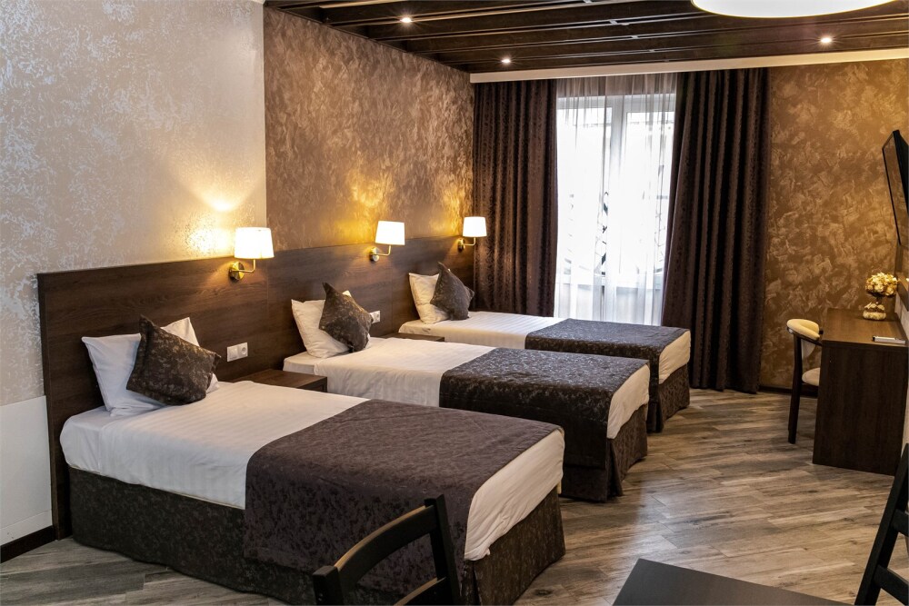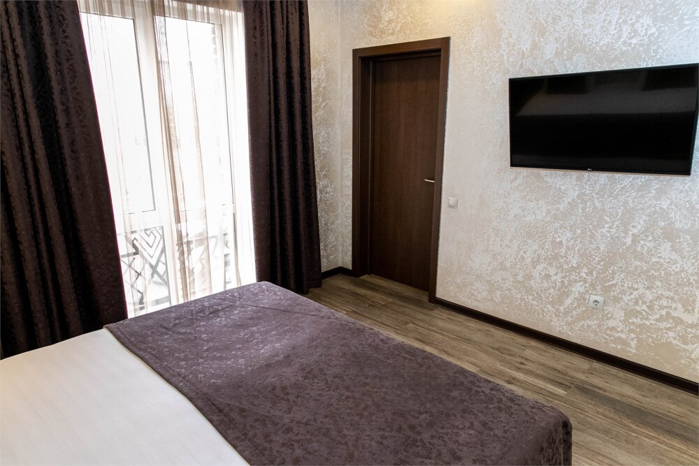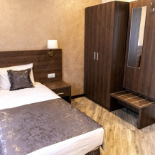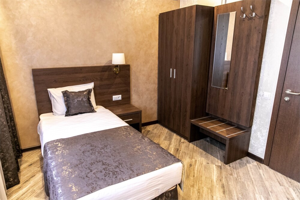 Мы предлагаем уютные номера в тихом районе города недалеко от активной улицы с ресторанами и магазинами. В нашем отеле Вы сможете почувствовать себя как дома. Мы предлагаем Вам 5 типов номеров. Все наши номера оборудованы ванными комнатами и Wi-Fi.