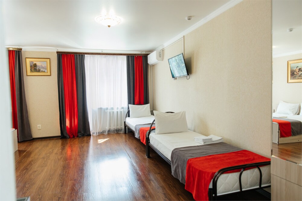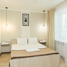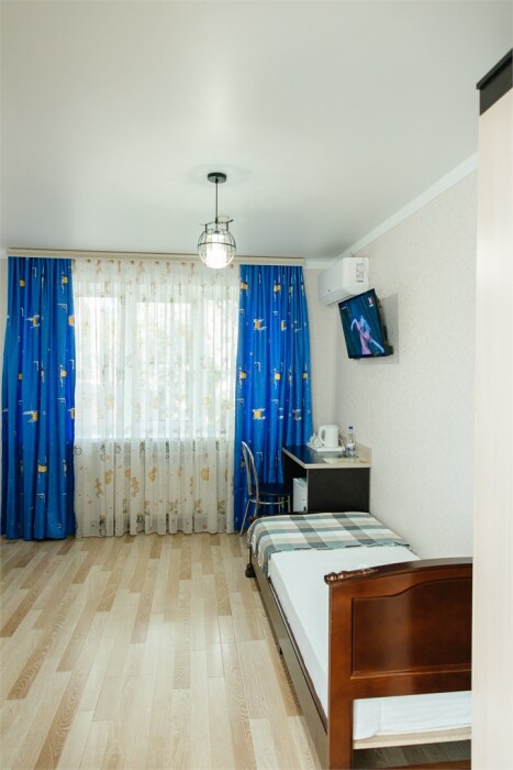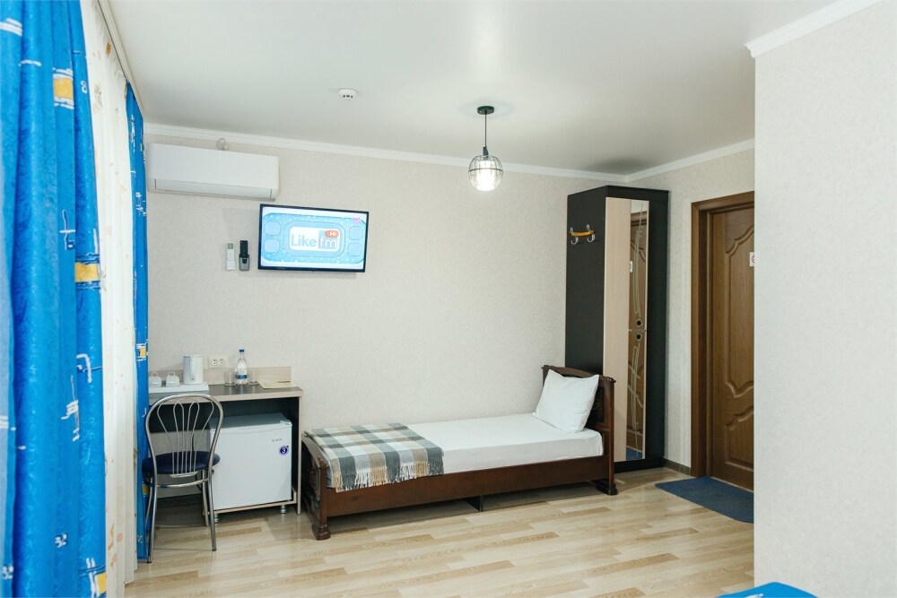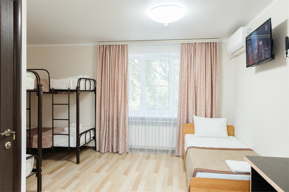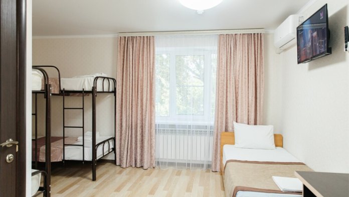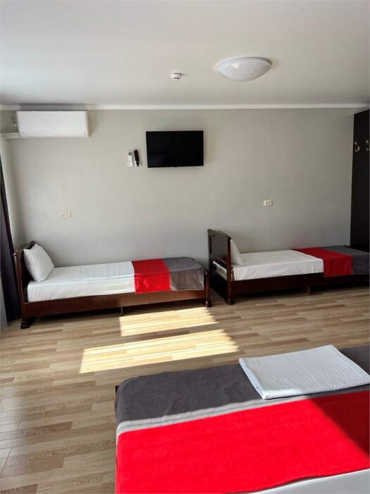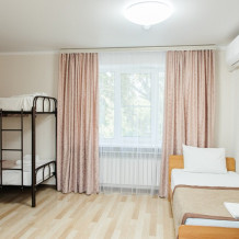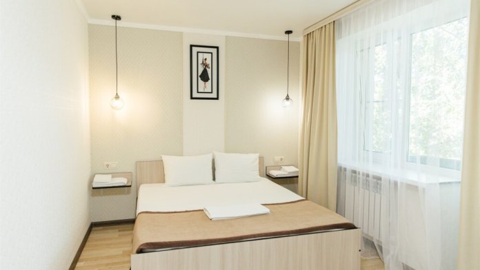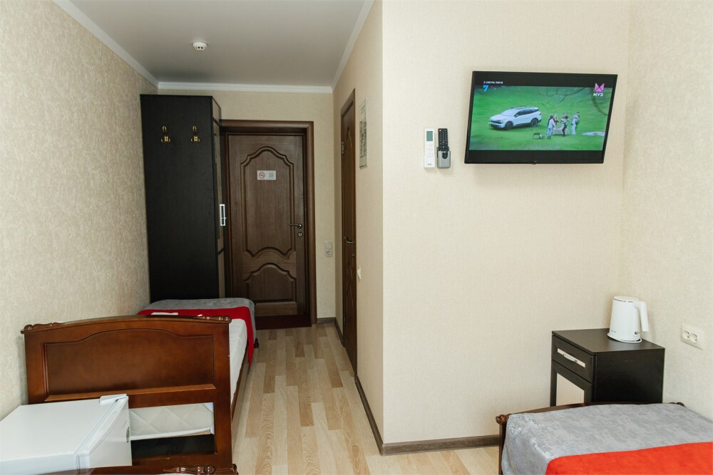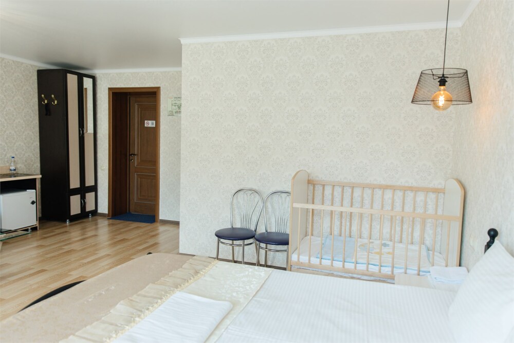 Комнаты различной вместимости с разными типами кроватей, а так же кроватями для детей В номере гостей ждут телевизор. Оснащение зависит от выбранной категории номера.
