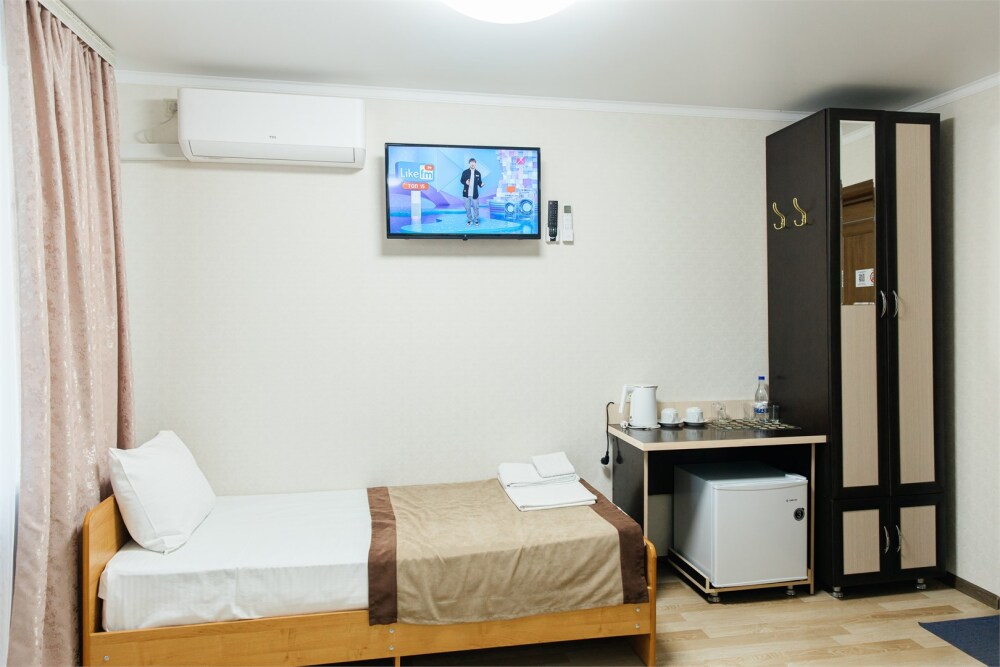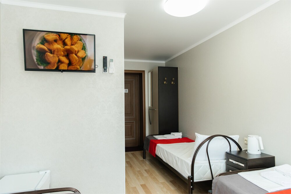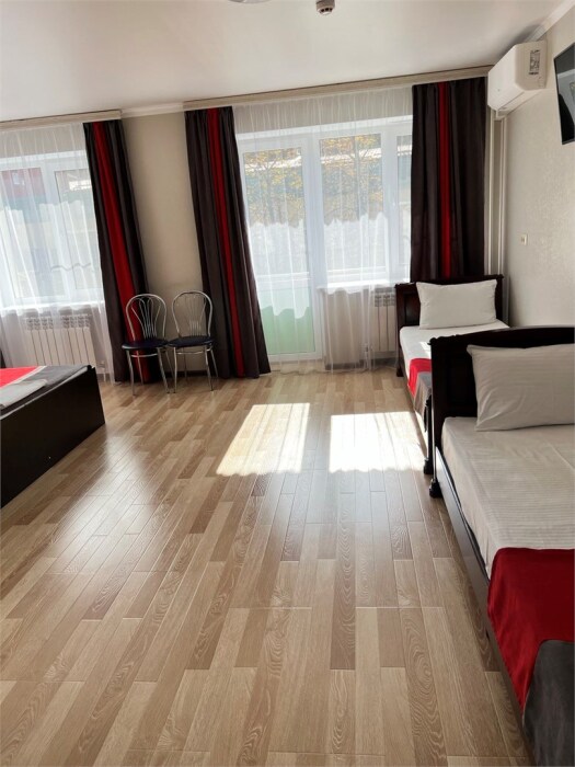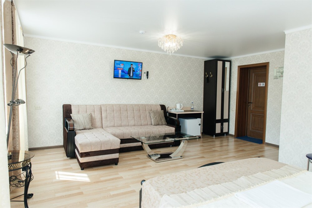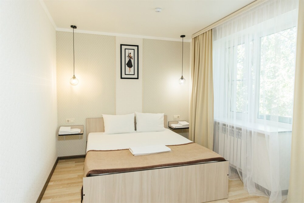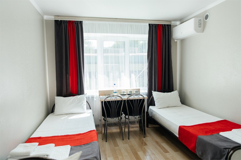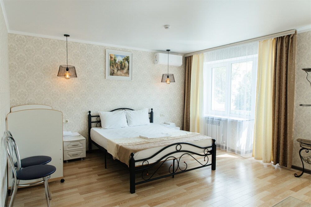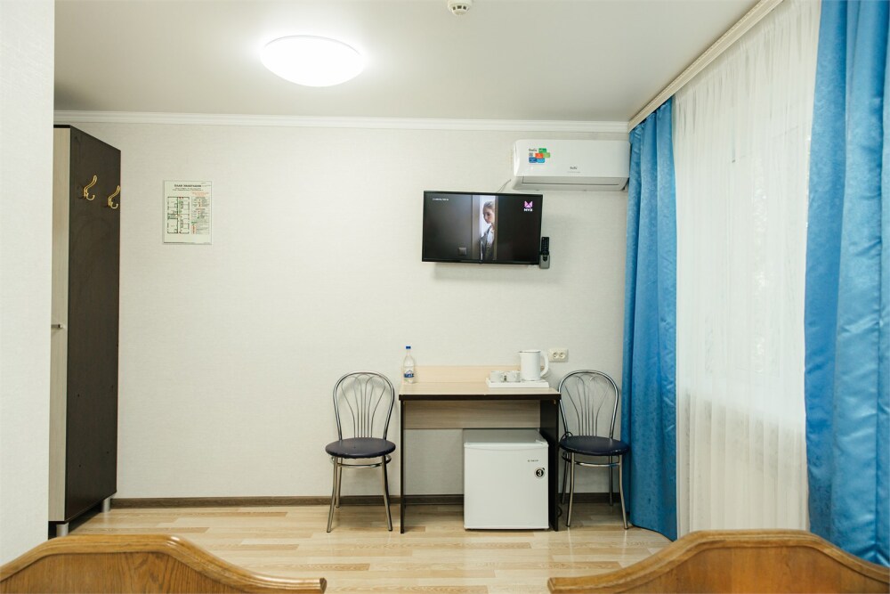 Комнаты различной вместимости с разными типами кроватей, а так же кроватями для детей В номере гостей ждут телевизор. Оснащение зависит от выбранной категории номера.