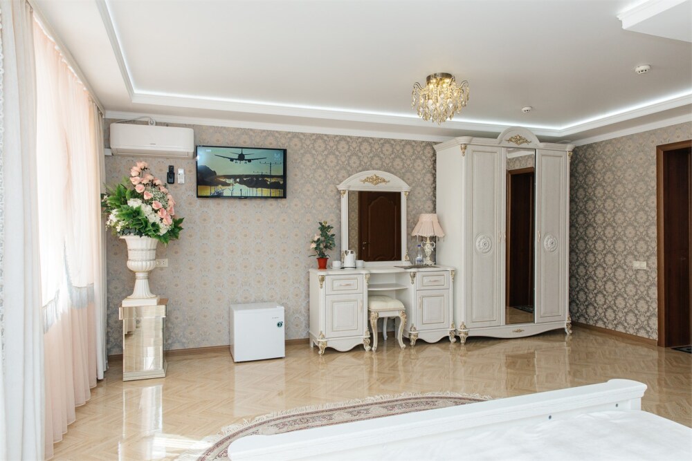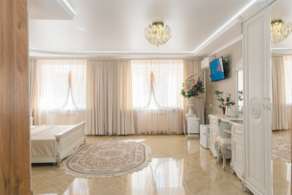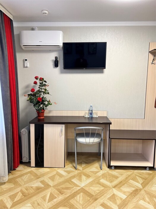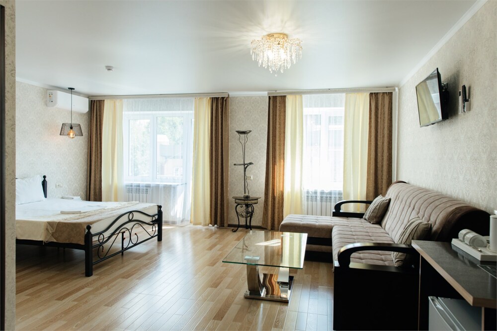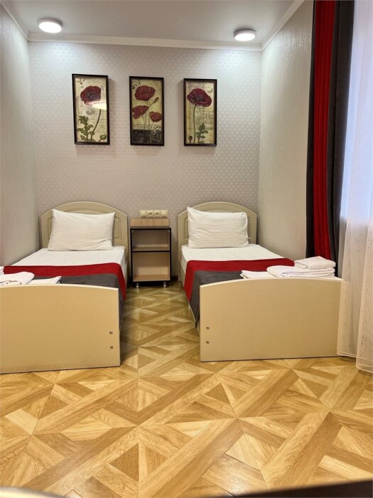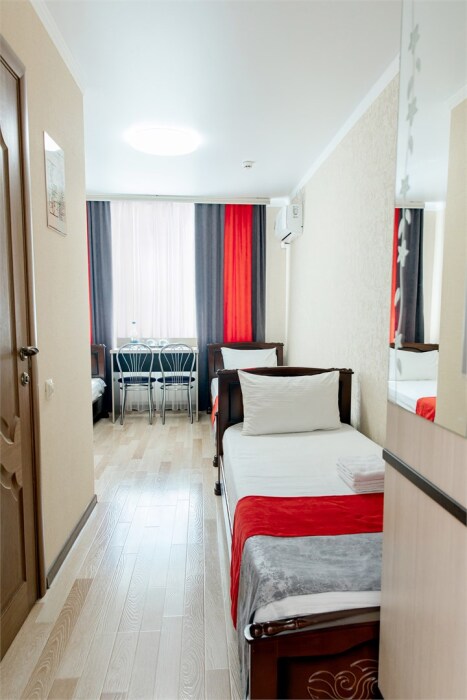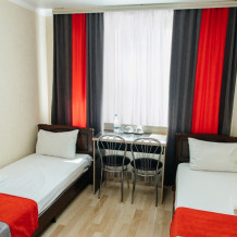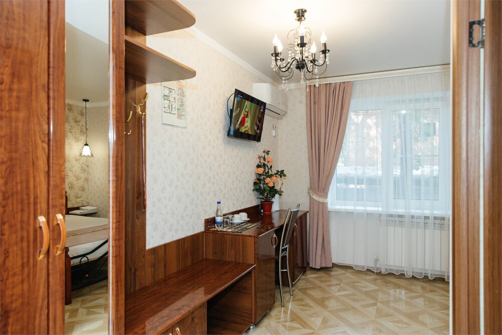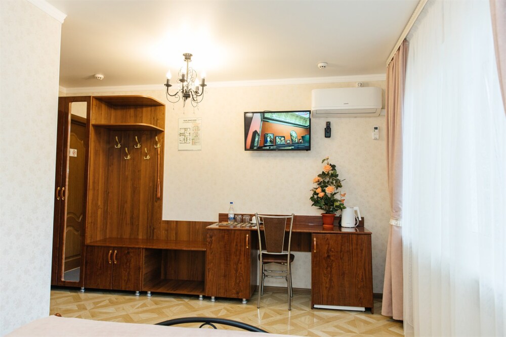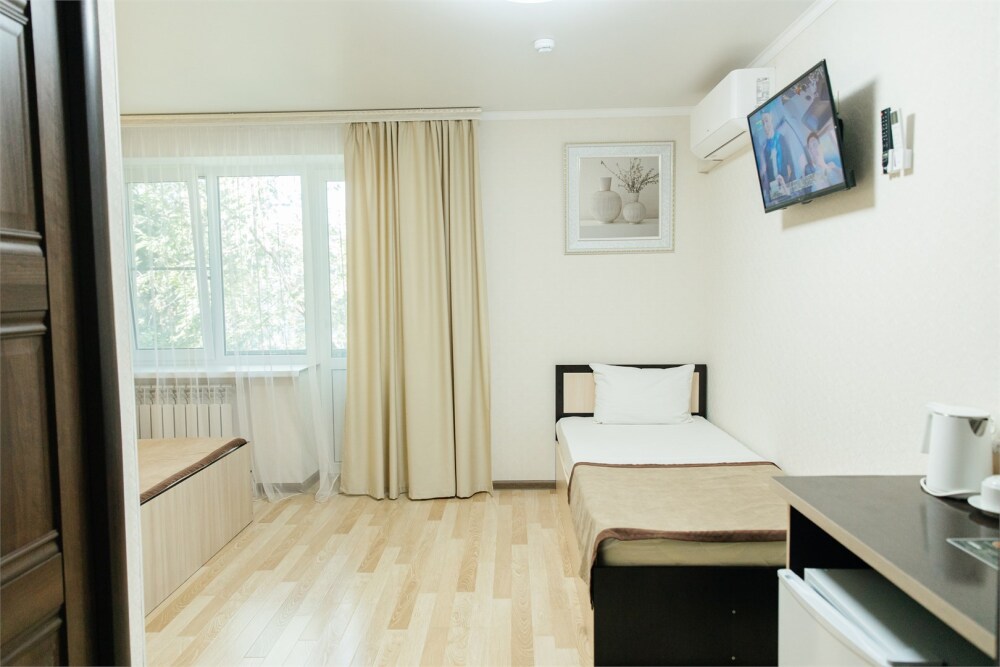 Комнаты различной вместимости с разными типами кроватей, а так же кроватями для детей В номере гостей ждут телевизор. Оснащение зависит от выбранной категории номера.