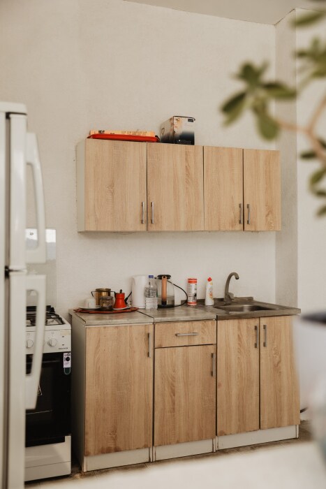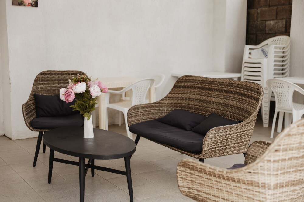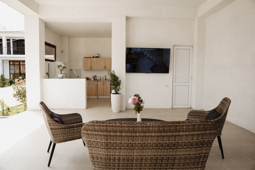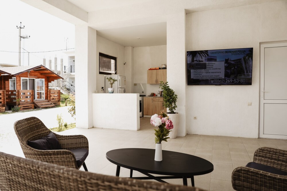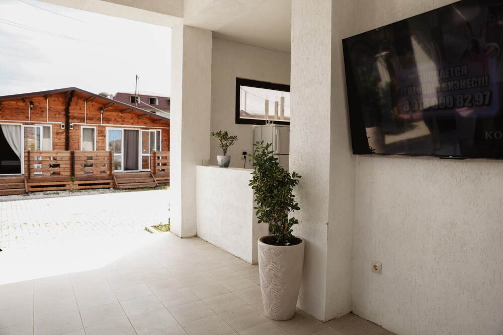 На территории мини-отеля есть общая кухня-веранда, полностью оборудованная для самостоятельного приготовления пищи, стиральная машина, сушилки для одежды, гладильный уголок, зона барбекю. Территория ограждена, также есть парковка для автомобиля.