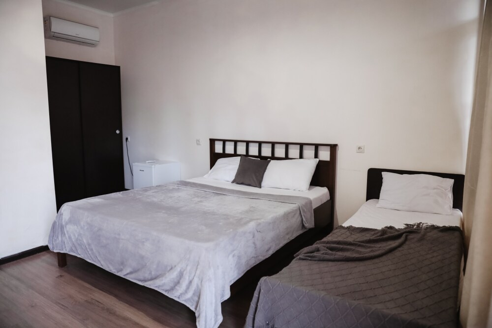 Для гостей мы предлагаем уютные номера и коттеджные домики, полностью оборудованные для комфортного проживания. В каждом домике и номере есть фен, холодильник, установлен телевизор, WI-FI, а также имеется кондиционер и ванная комната. У каждого домика есть своя веранда, на которой расположены стол и стулья, для отдыха на свежем отдыхе.