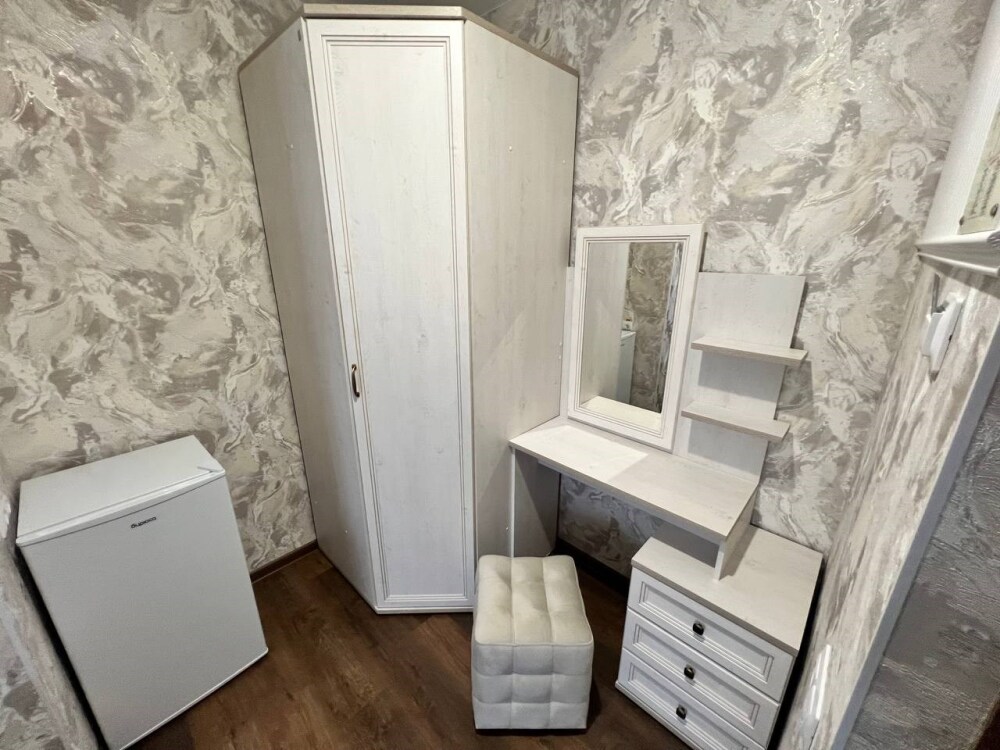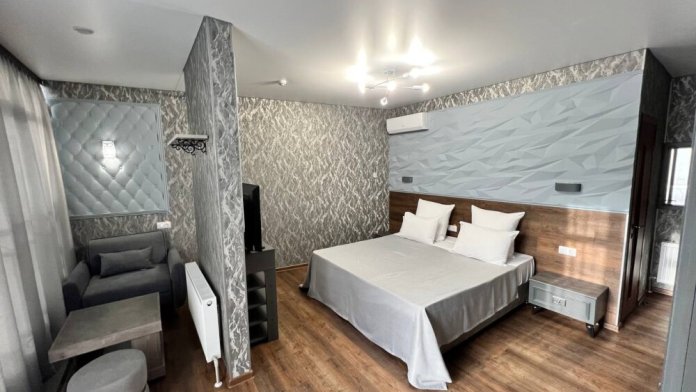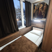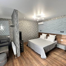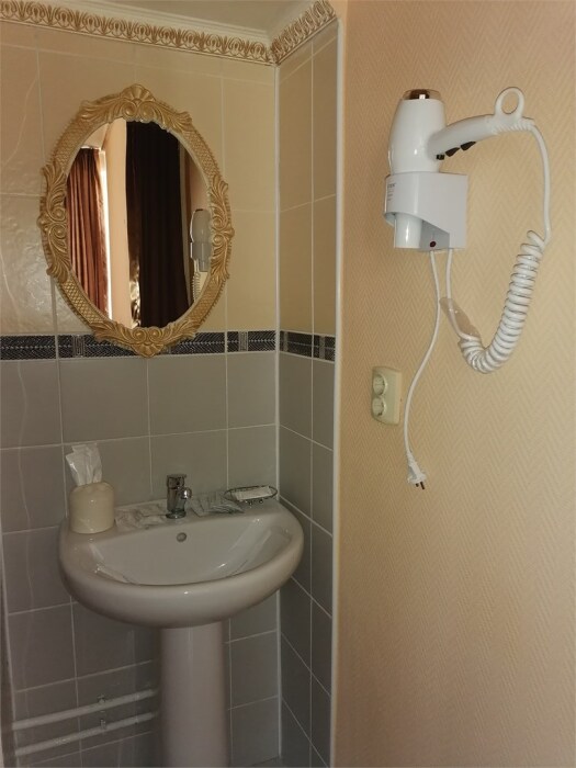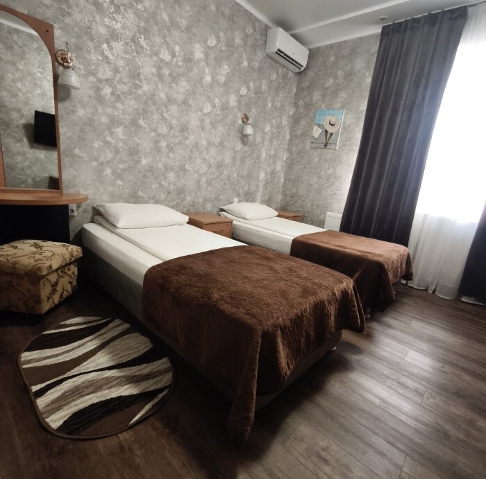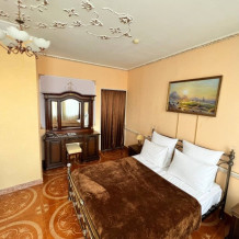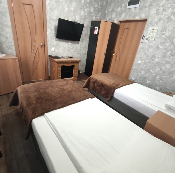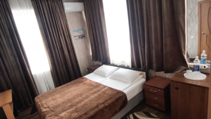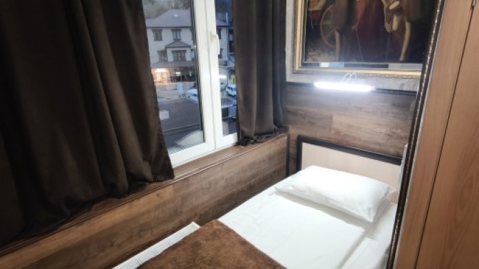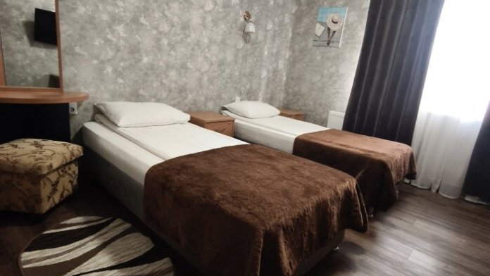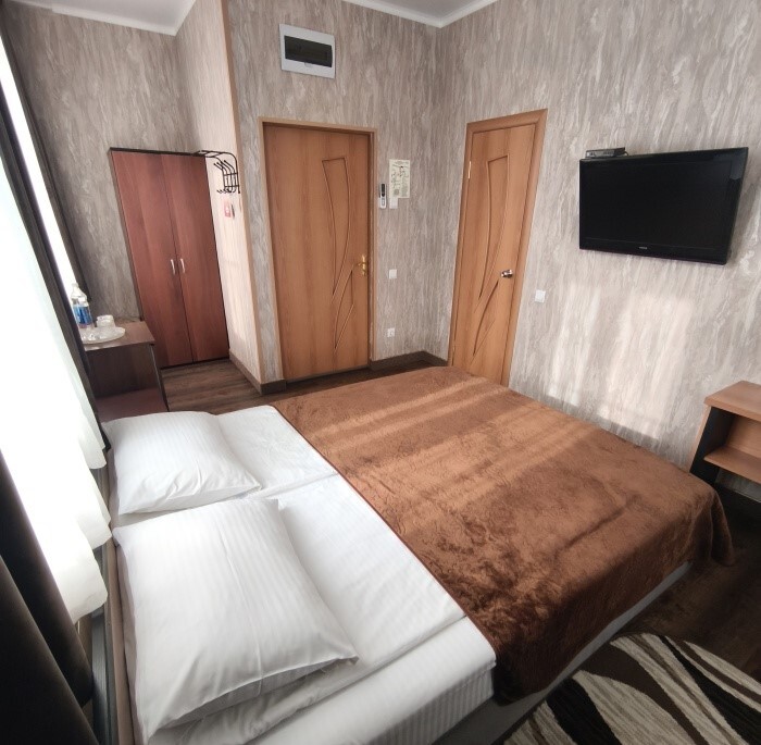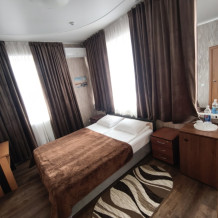 Одноместный номер —предназначенный для проживания одного гостя. Включает кровать, шкаф, трюмо, стул и минимально необходимую мебель. Санузел индивидуальный, есть все необходимые гигиенические комплекты и туалетные принадлежности.