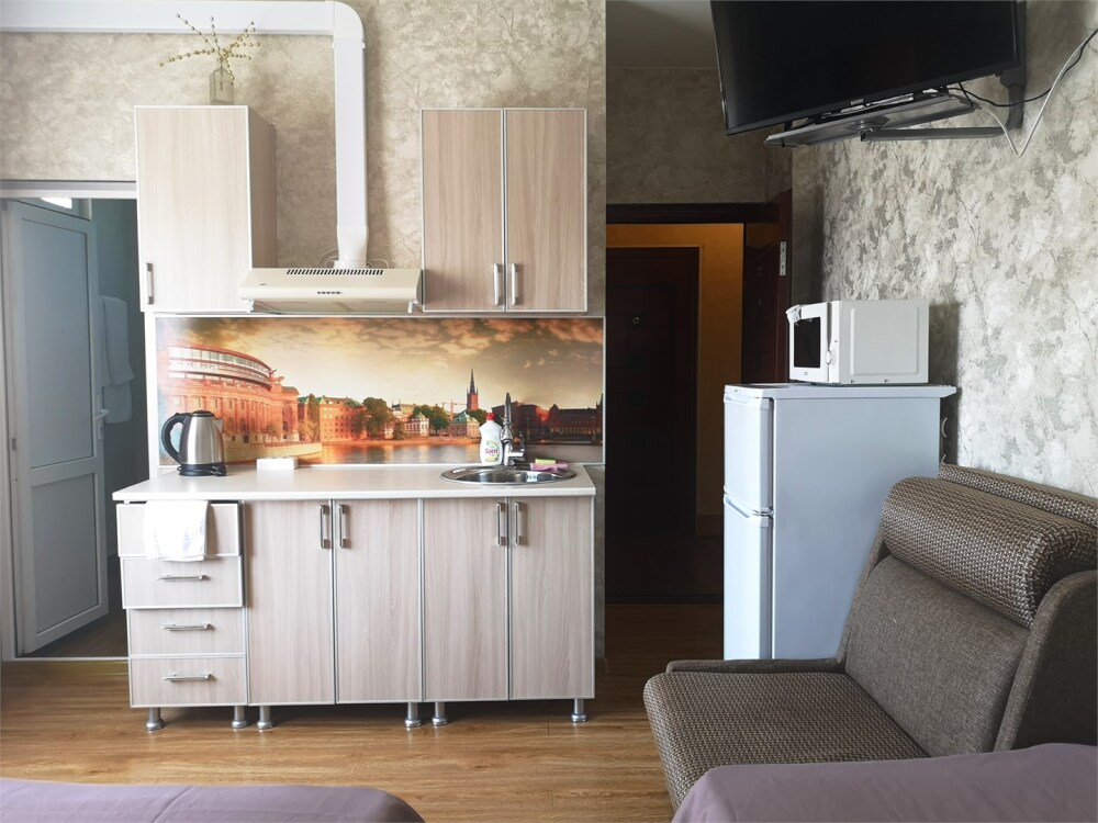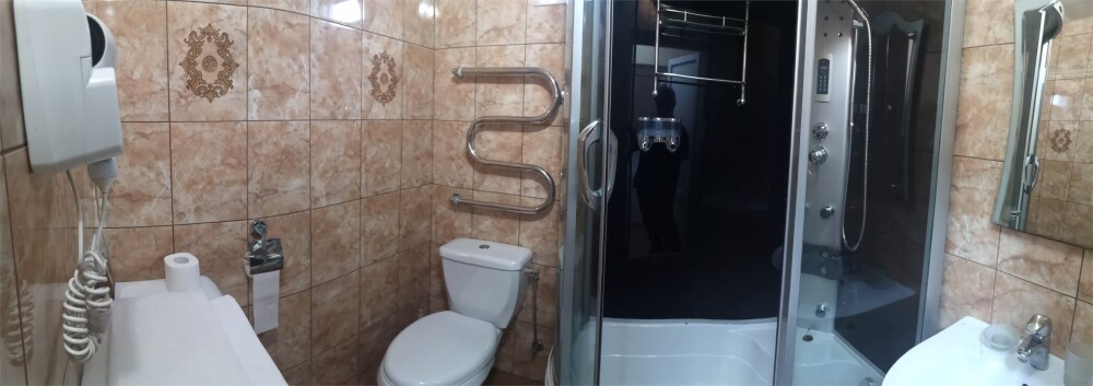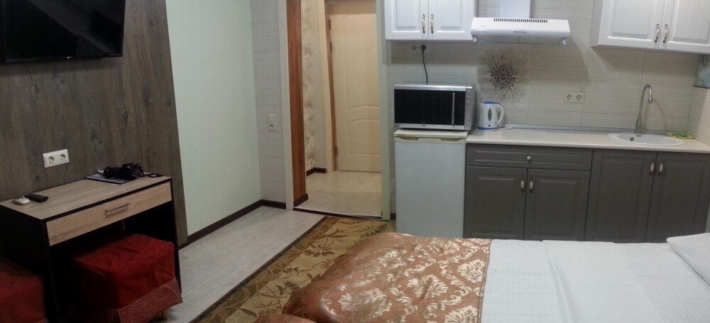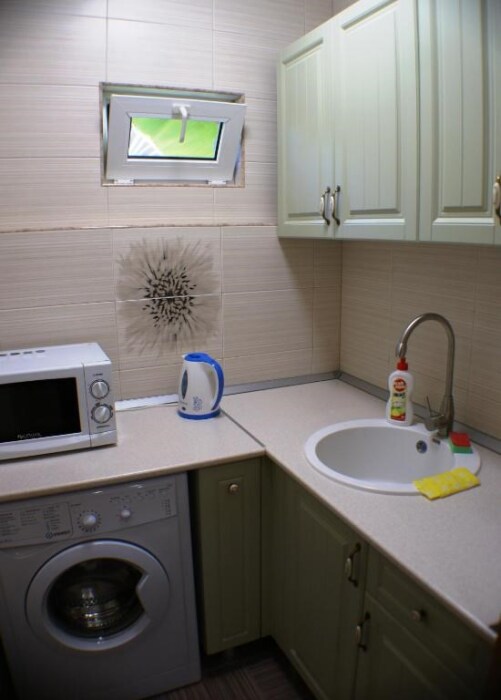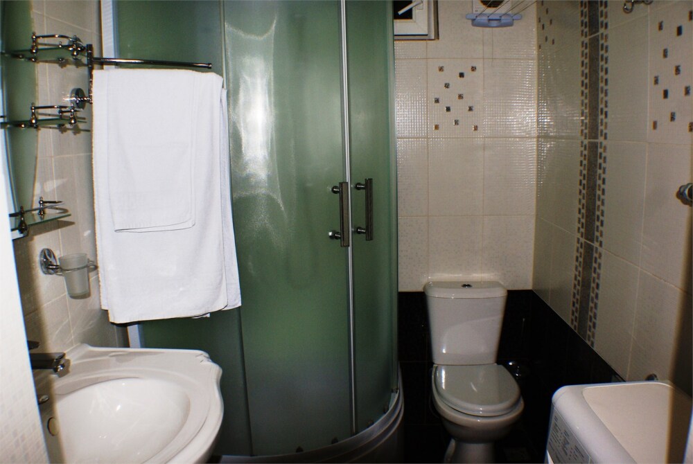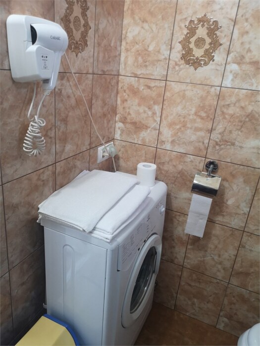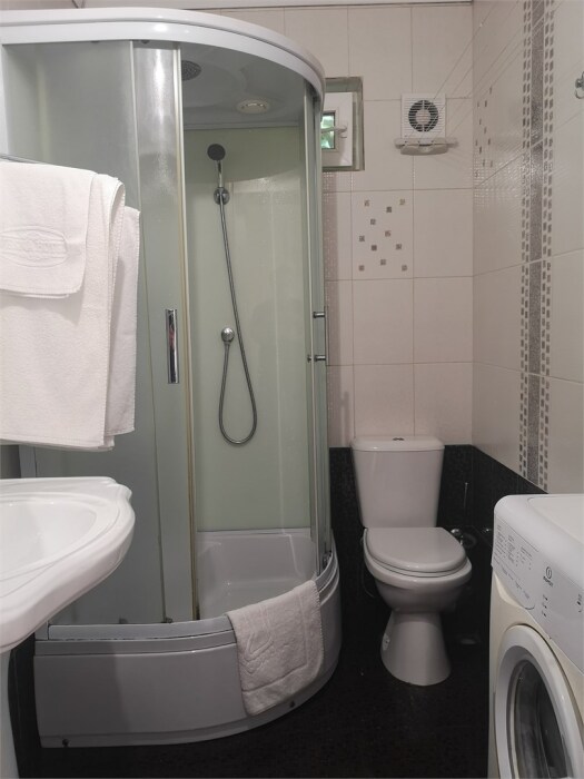 Душ, туалет, фен, телевизор, холодильник, кондиционер, стиральная машина. Кухня, столовая посуда, гладильная доска.