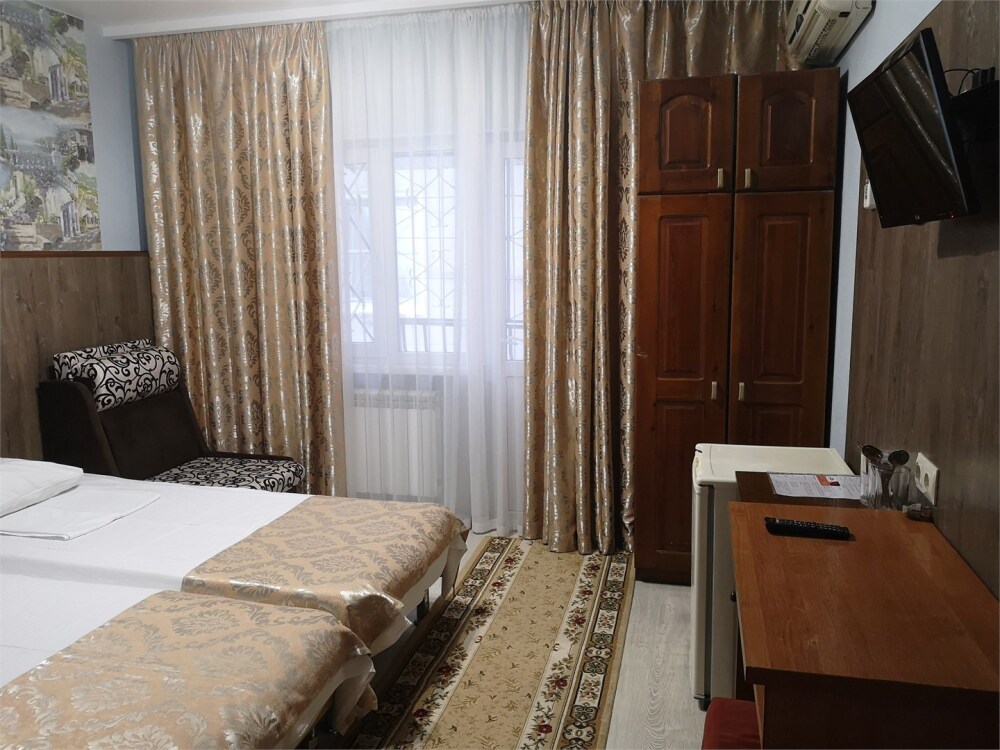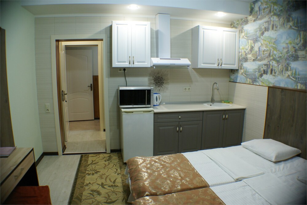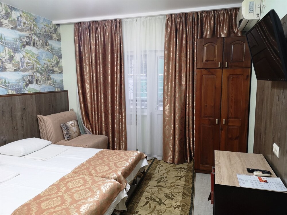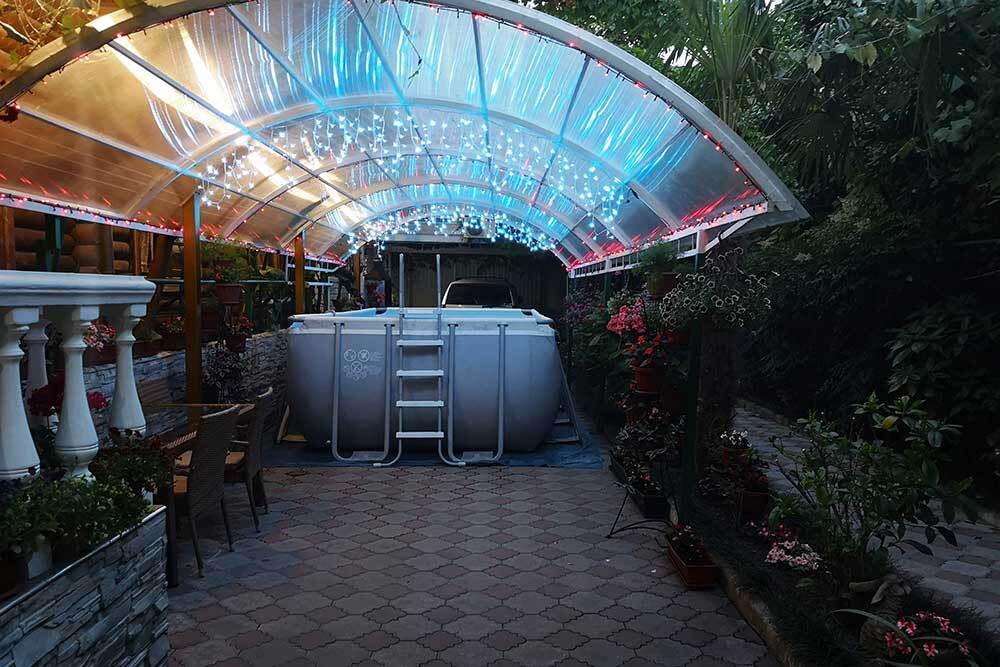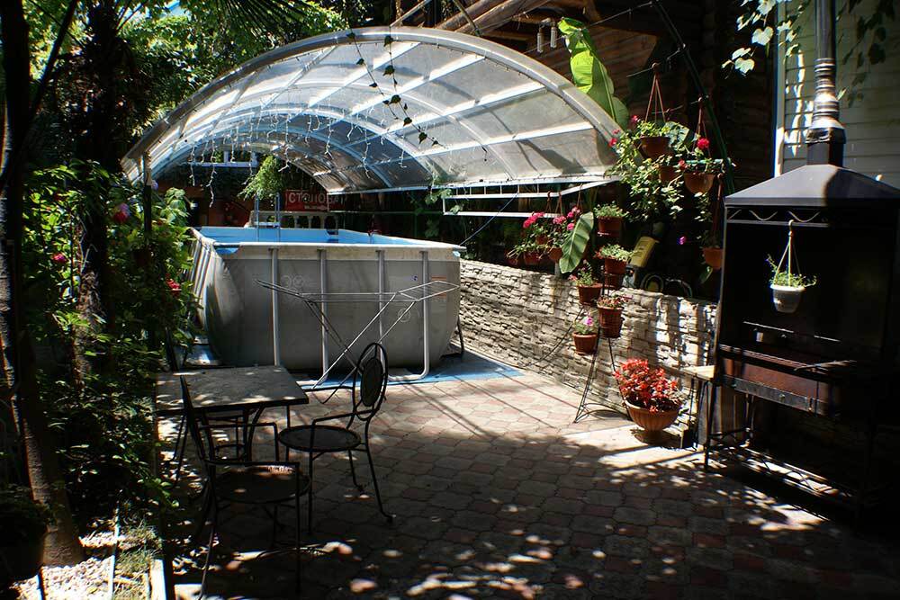 При входе в отель Вы сначала попадаете в небольшой увитый плющом дворик с фонтаном, цветущими клумбами, экзотическими растениями и сразу возникает ощущение уюта и предвкушение хорошего отдыха. А для хорошего отдыха здесь есть всё: уютные номера со всеми удобствами с видом на море или на Кавказские горы, ласковое море с мелкогалечным пляжем, открытый бассейн (работает в летний период с 15.06. по 30.09). На свежем воздухе имеется место, укомплектованное садовой мебелью, для приготовления шашлыка. Принадлежности для барбекю выдаются.