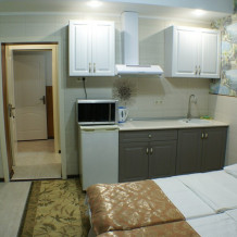 Бытовая комната на 3 номера - кухня, столовая посуда, стиральная машина, гладильная доска.