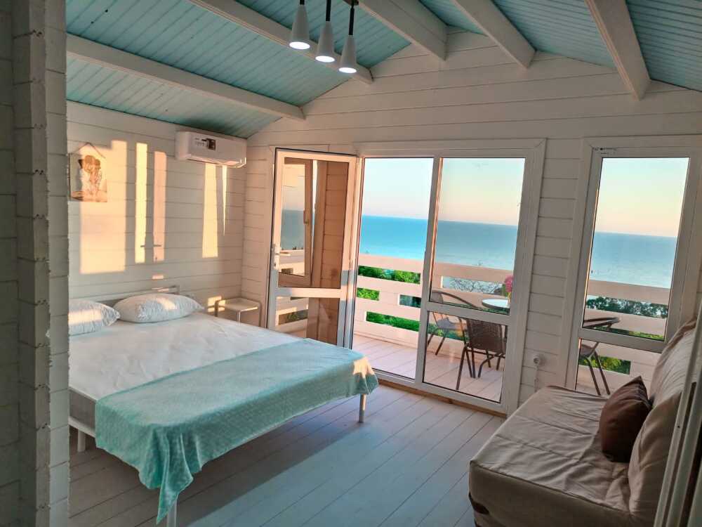 Все номера в гостевом дом е с видом на море. К каждому номеру имеется своя кухонная зона на открытой террасе.