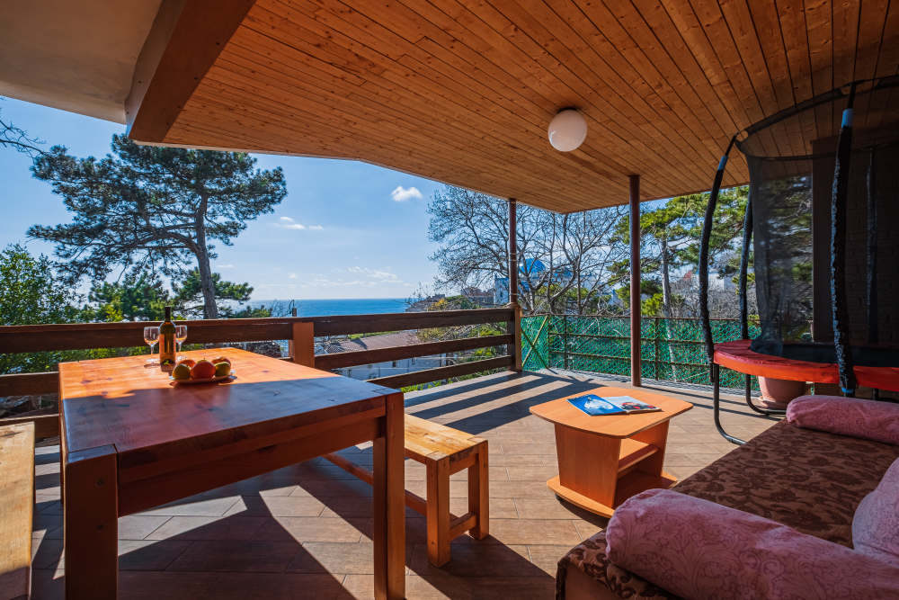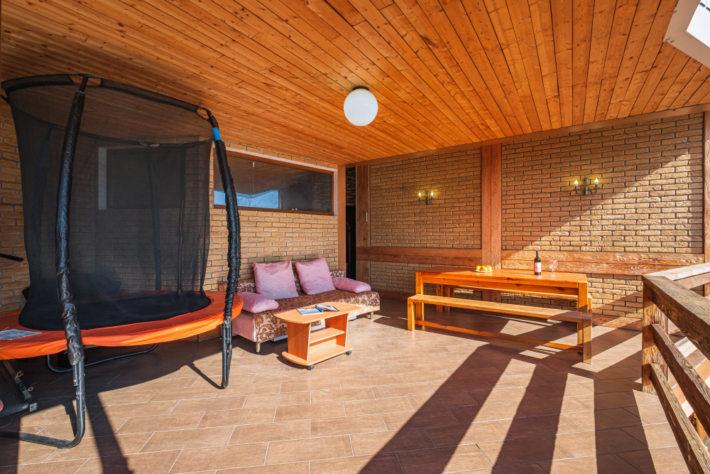 На террасе установлен батут для ваших детей.