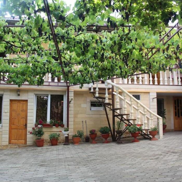 На территории большой, благоустроенный, зеленый двор, с зоной для отдыха и оборудованной летней кухней-столовой. Двор утопает в тени тропической зелени и цветах. Для тех, кто любит оставаться на отдыхе с интернетом, имеется зона покрытия Wi-Fi. Для гостей предусмотрена парковка для машин, во дворе. В гостевом доме работает туристическое бюро.