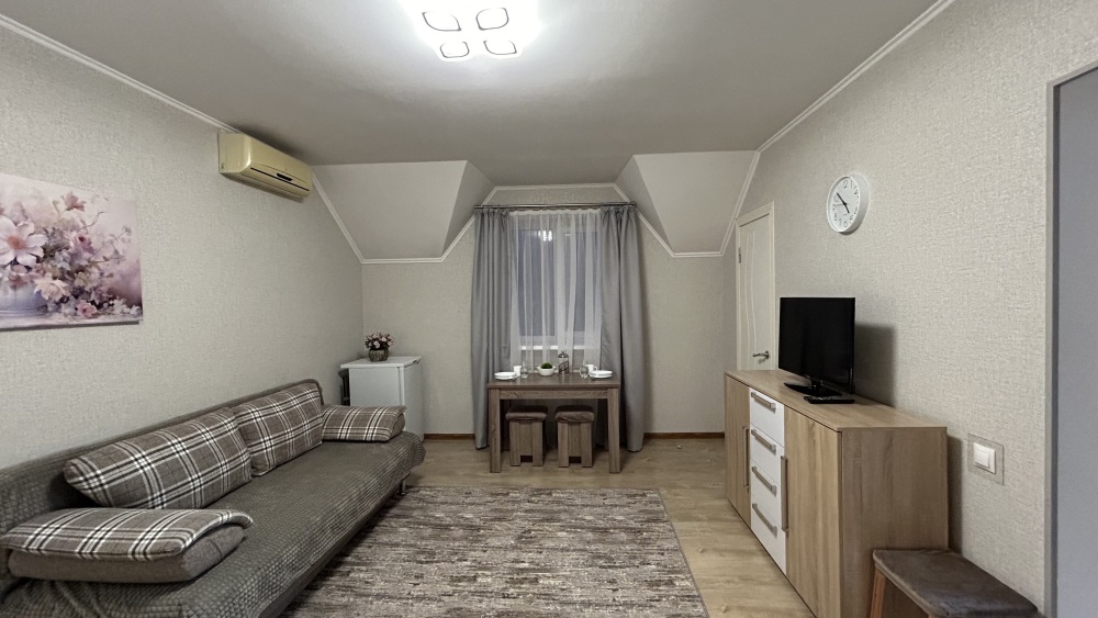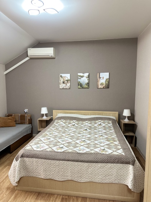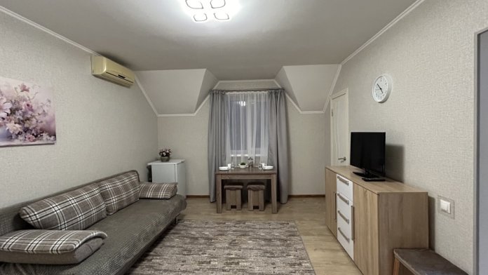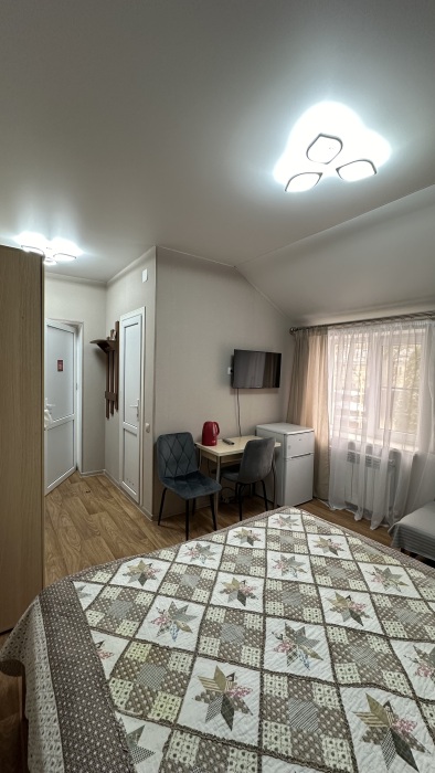В доме 4 комнаты на 2–3 человека. В каждой комнате есть санузел, душ, кухня со всем необходимым.