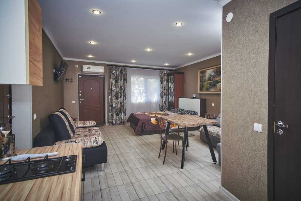Гостям, для проживания, предлагаются номера разной вместимости, со всем необходимым для комфортного отдыха.