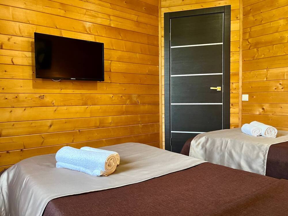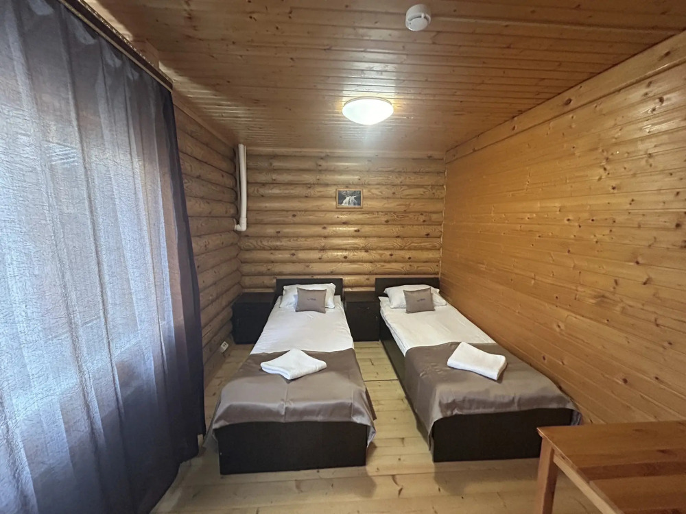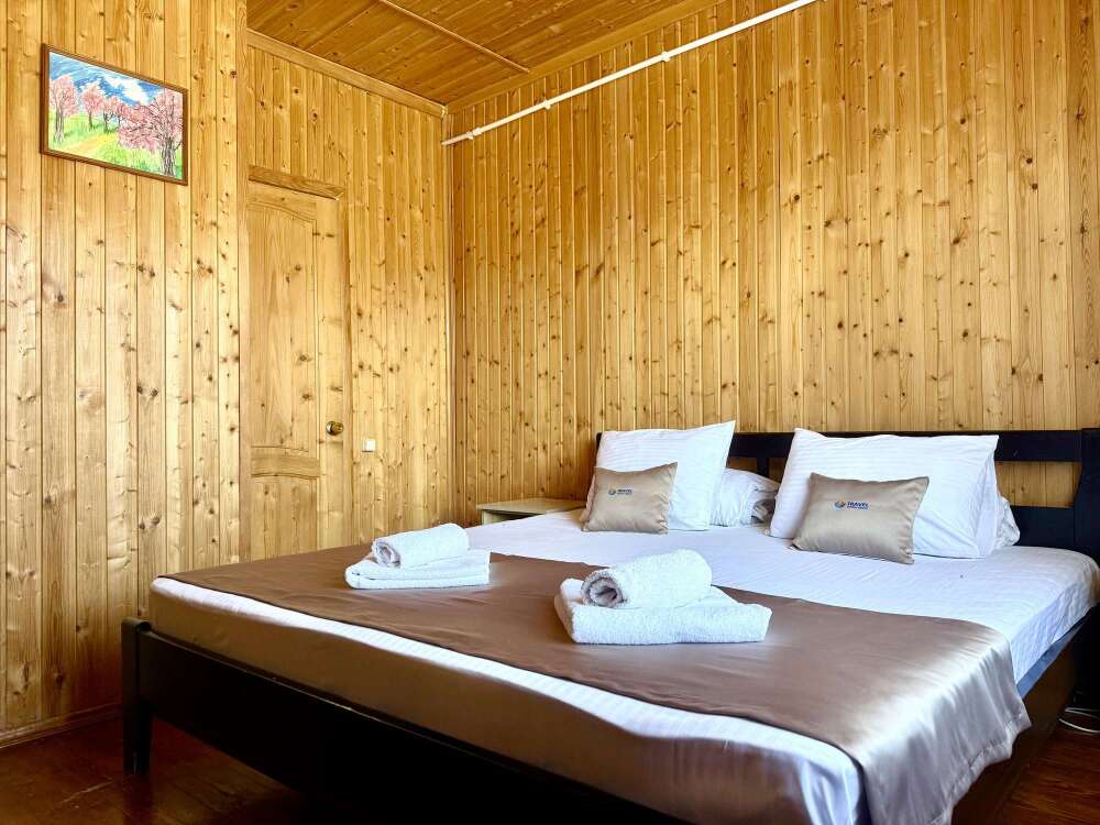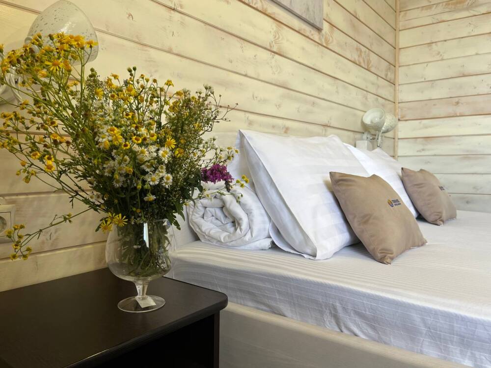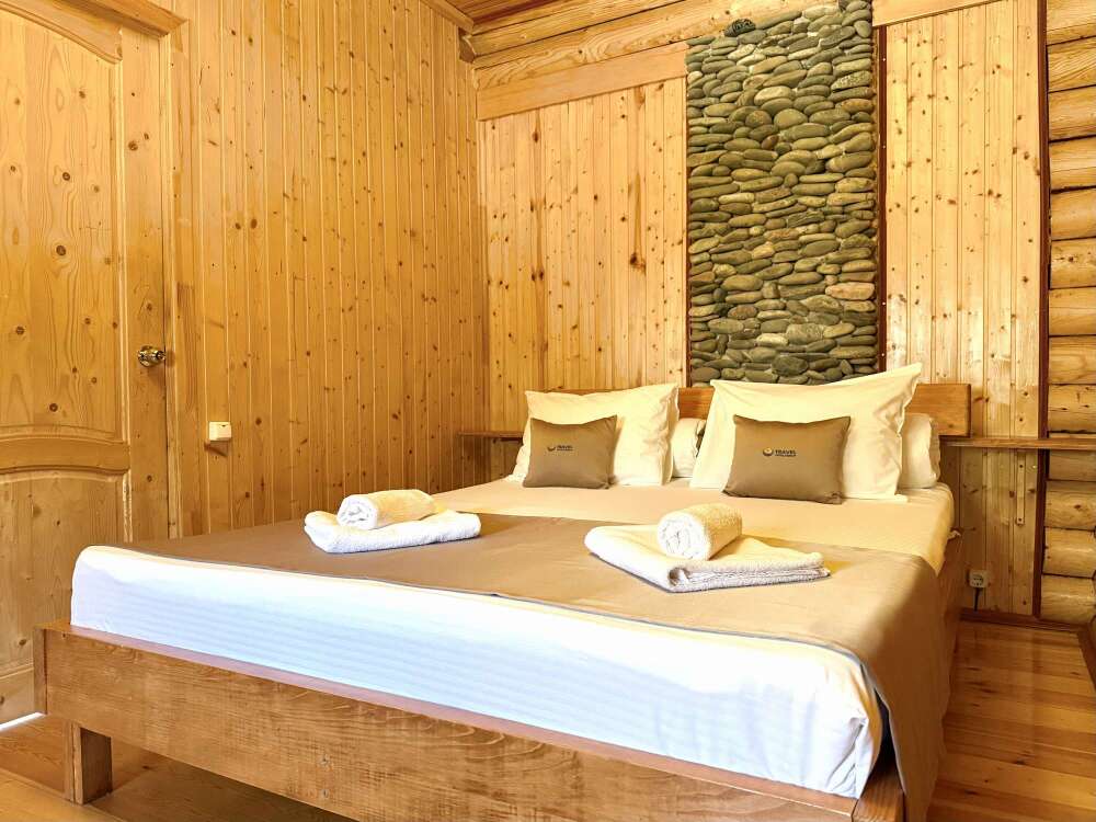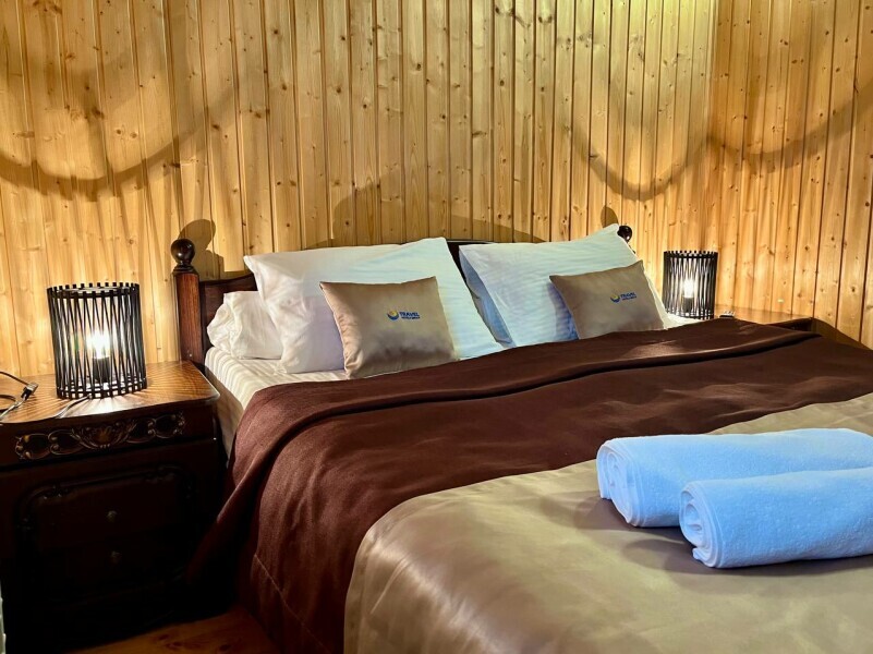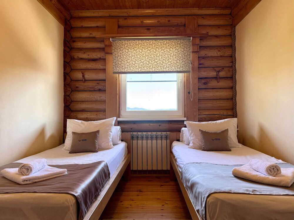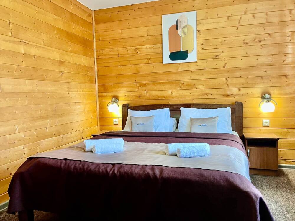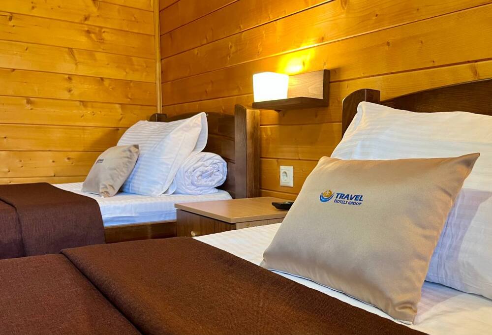 Уютные двухместные номера выполнены в эко‑стиле — в них легко дышится, много натуральных материалов и ощущение спокойствия. Просторная кровать с тёплыми одеялами и ортопедическими подушками обеспечивает по‑настоящему комфортный отдых.
