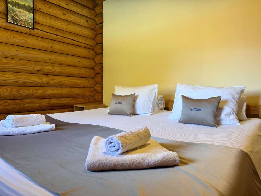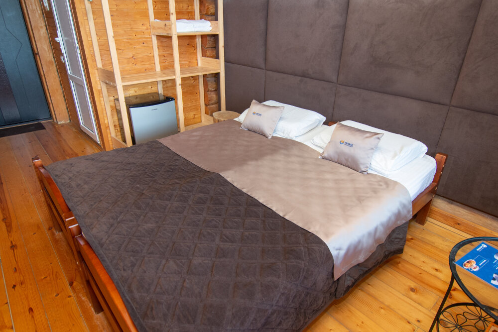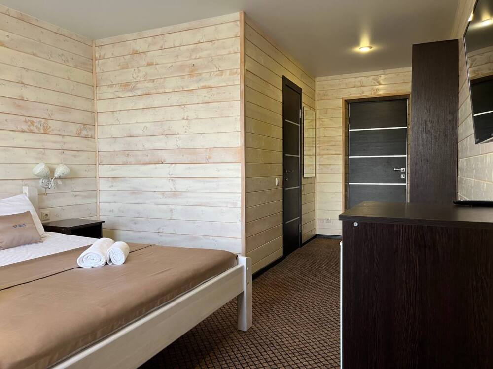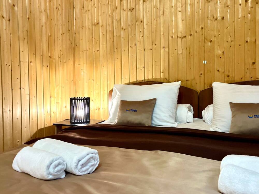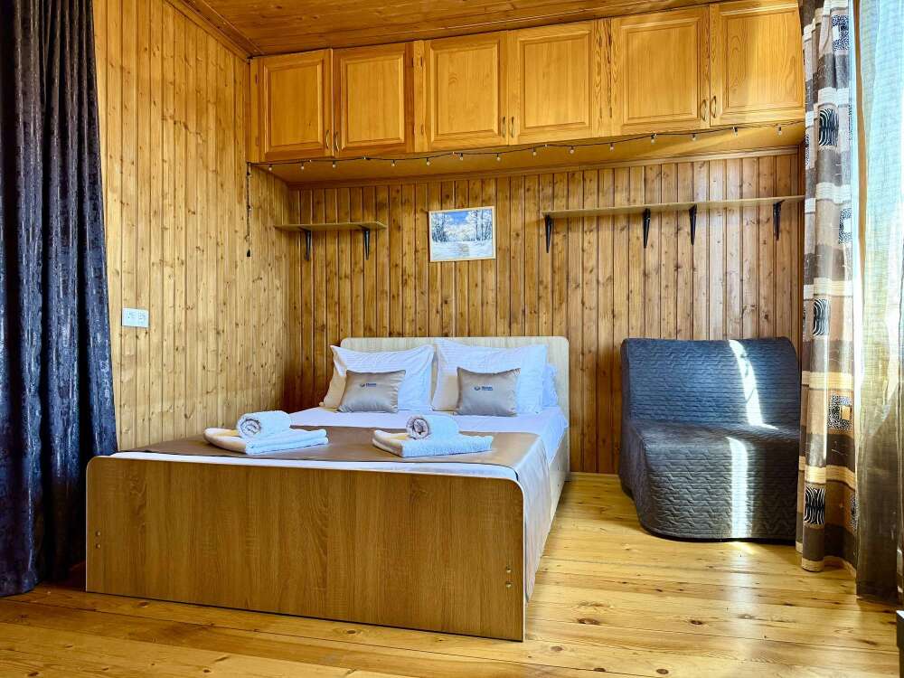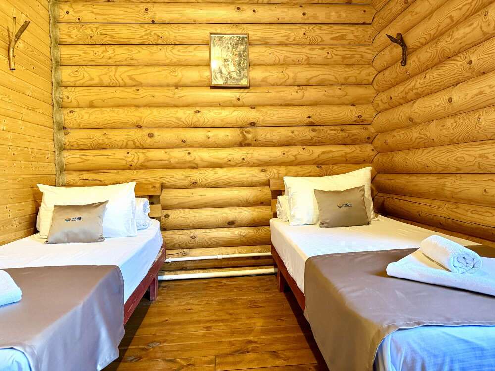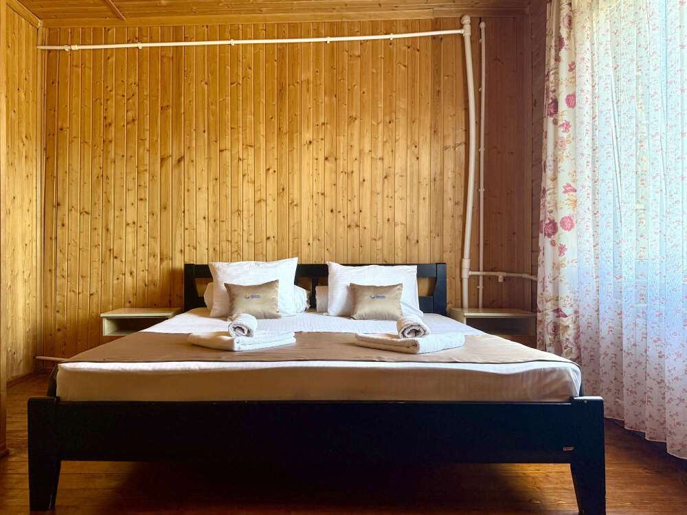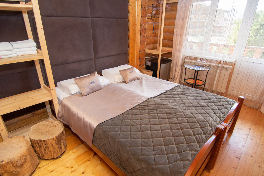 Уютные двухместные номера выполнены в эко‑стиле — в них легко дышится, много натуральных материалов и ощущение спокойствия. Просторная кровать с тёплыми одеялами и ортопедическими подушками обеспечивает по‑настоящему комфортный отдых.