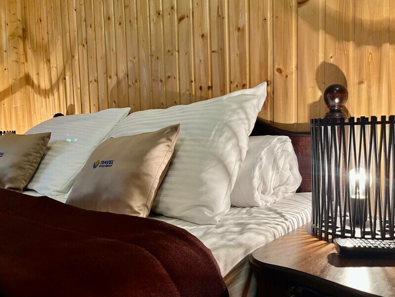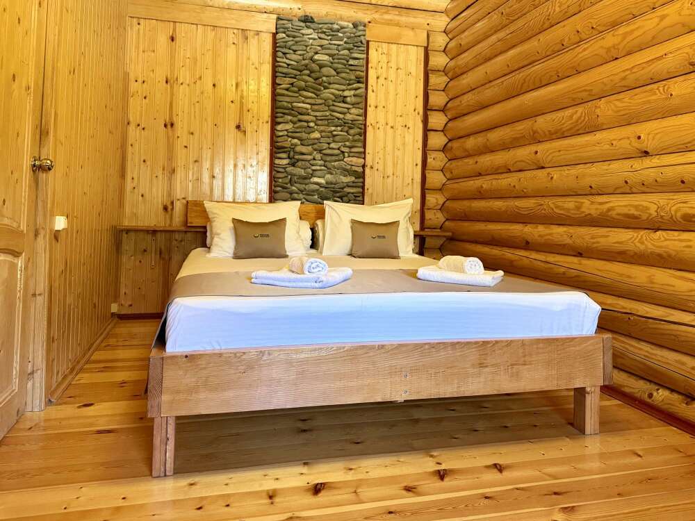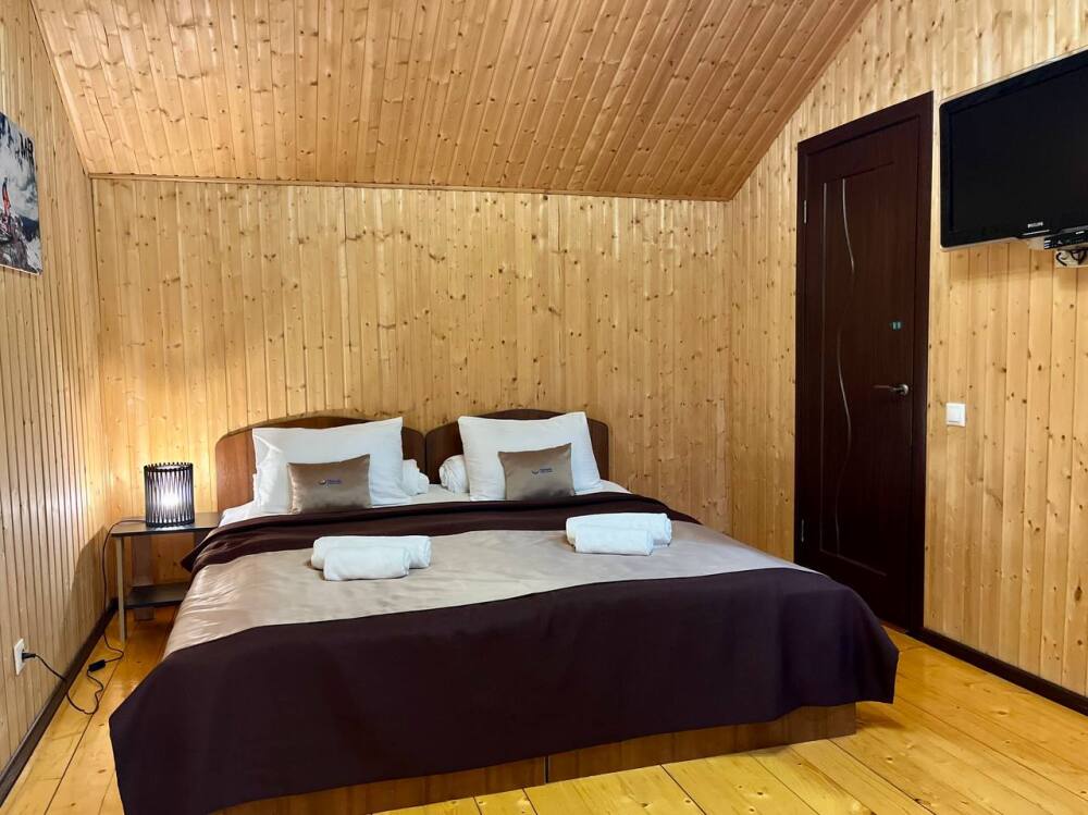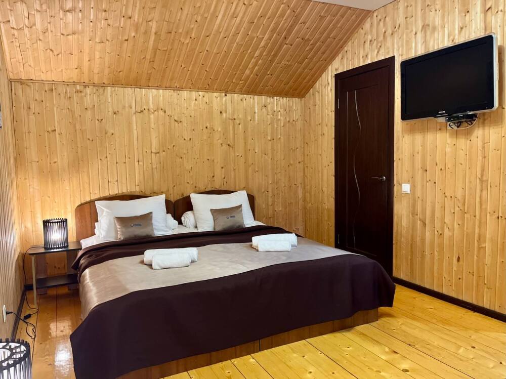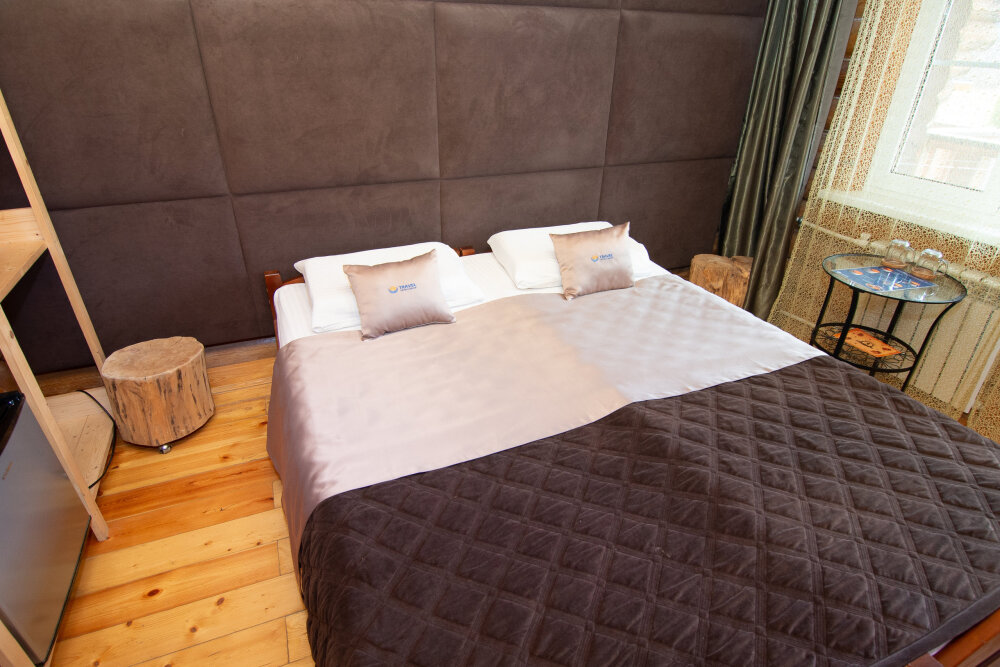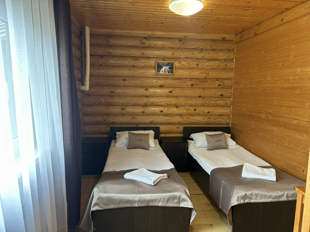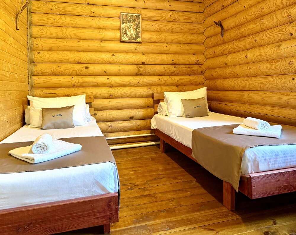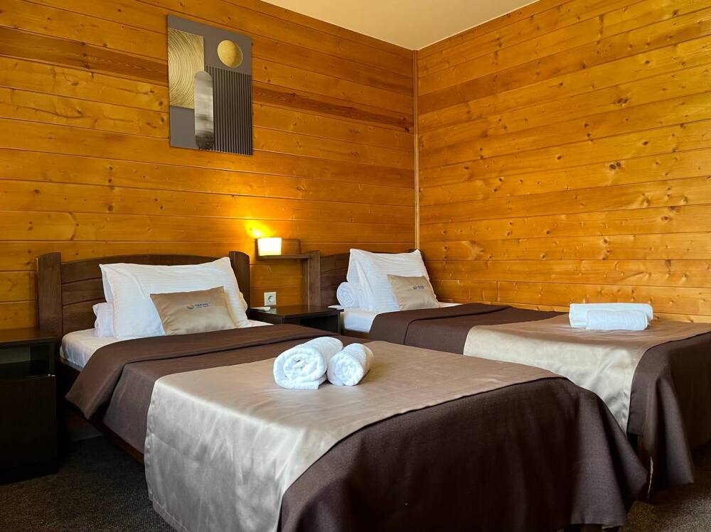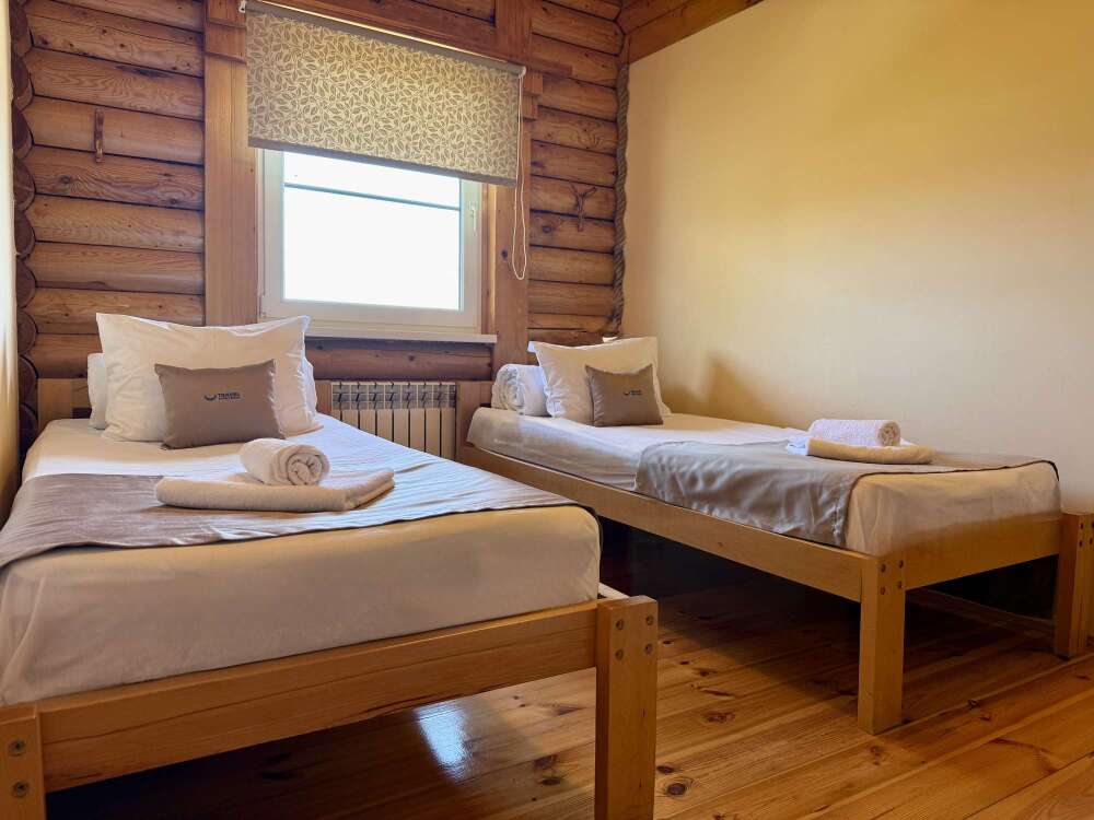 Уютные двухместные номера выполнены в эко‑стиле — в них легко дышится, много натуральных материалов и ощущение спокойствия. Просторная кровать с тёплыми одеялами и ортопедическими подушками обеспечивает по‑настоящему комфортный отдых.
