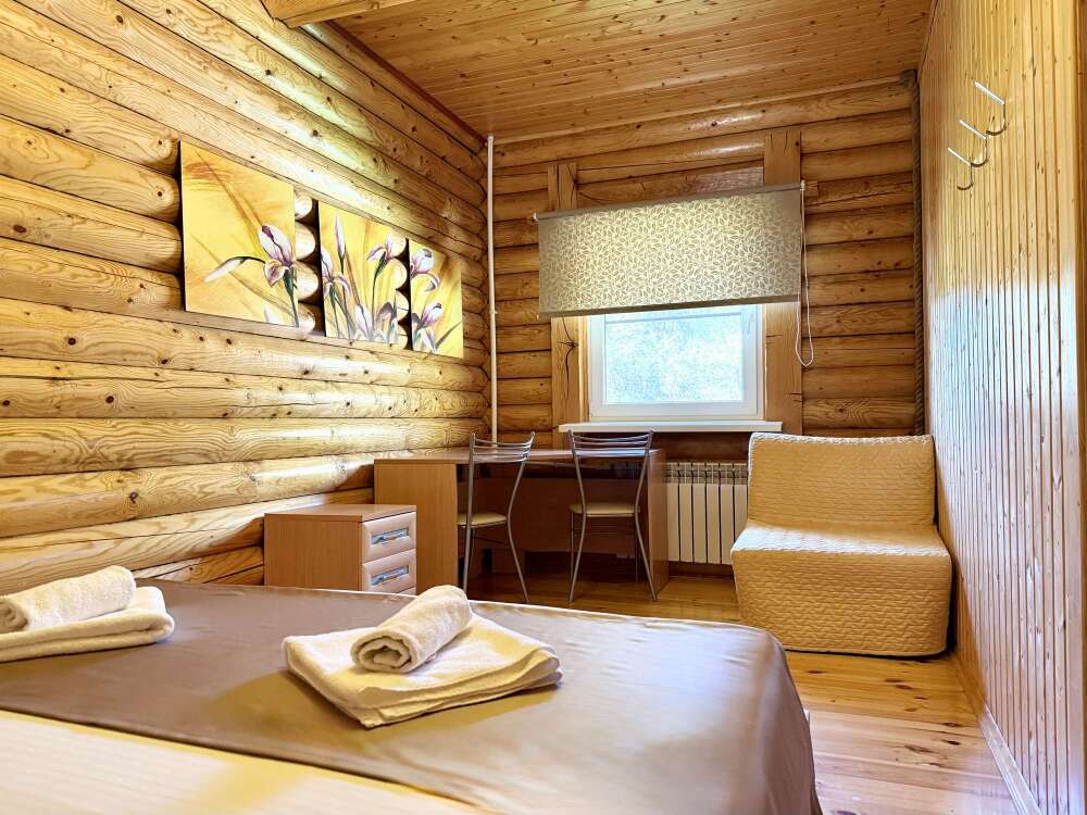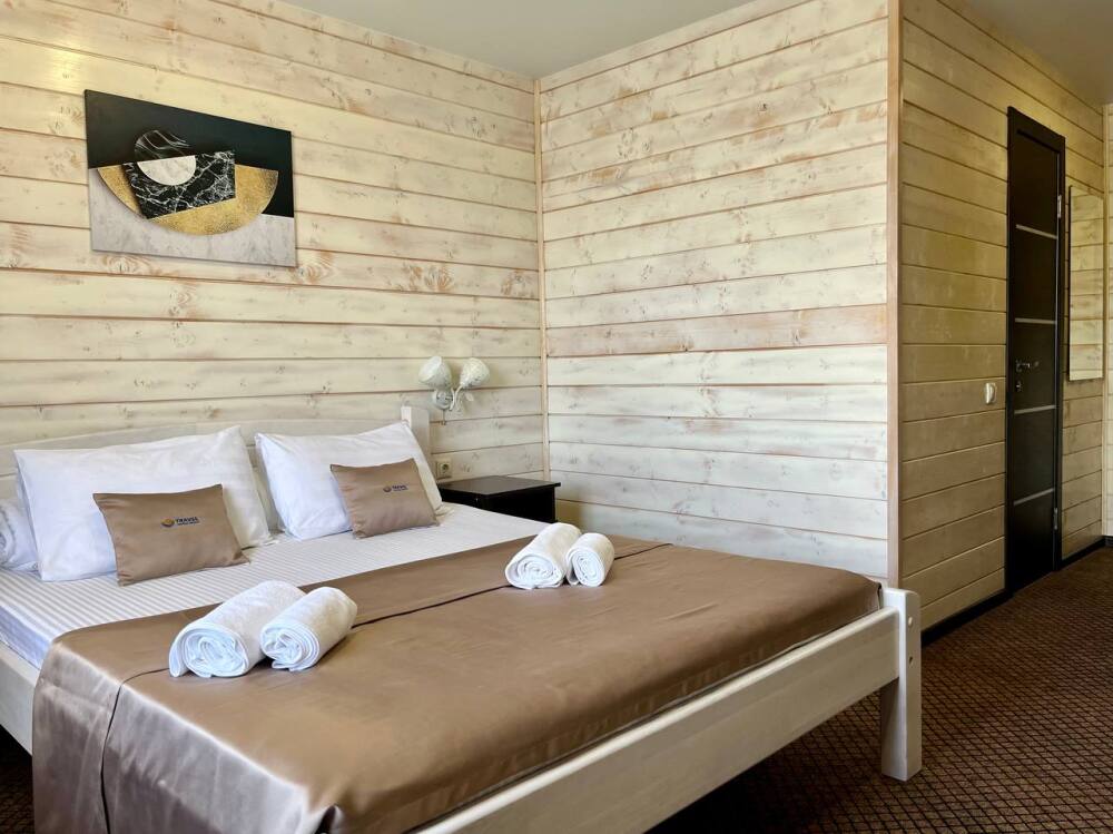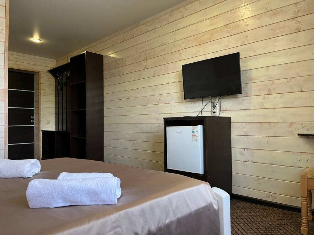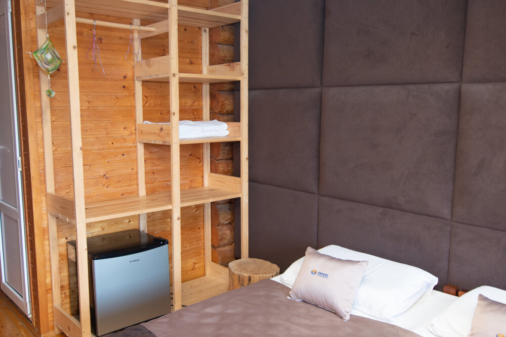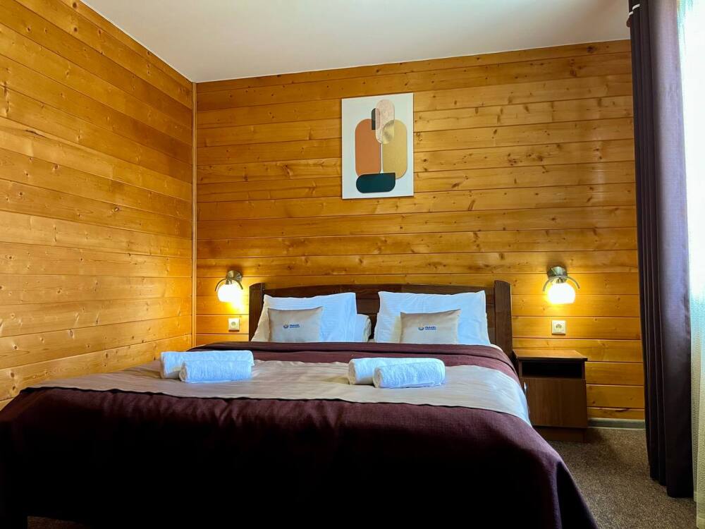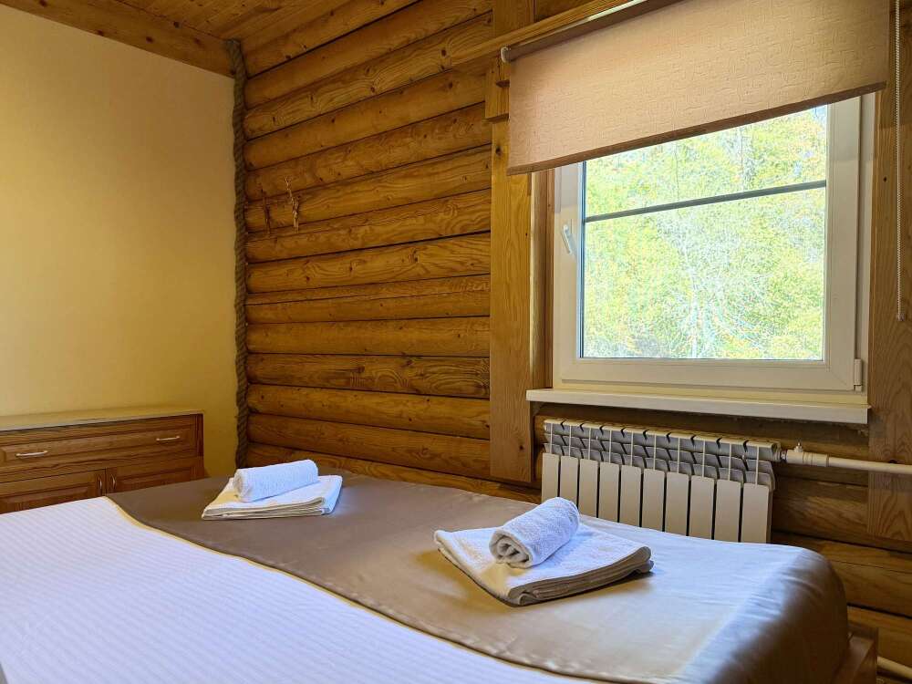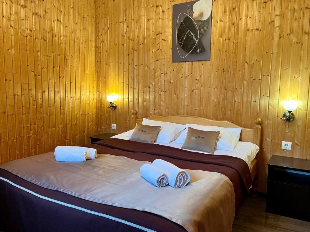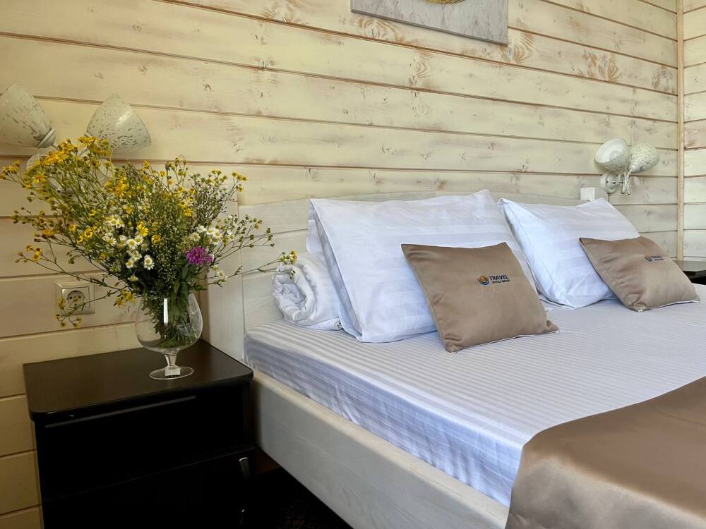 Уютные двухместные номера выполнены в эко‑стиле — в них легко дышится, много натуральных материалов и ощущение спокойствия. Просторная кровать с тёплыми одеялами и ортопедическими подушками обеспечивает по‑настоящему комфортный отдых.
