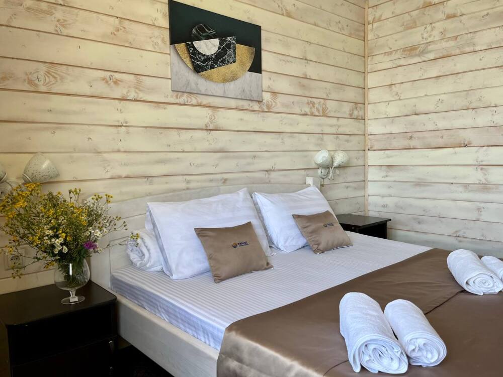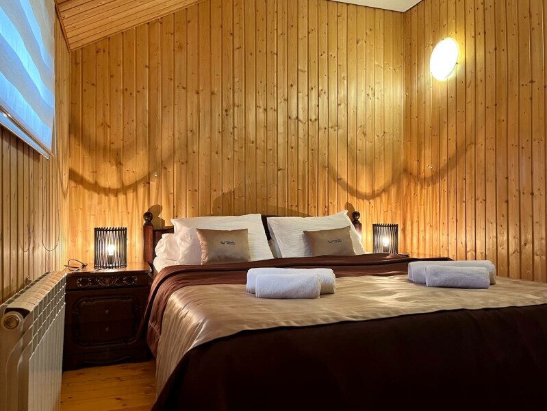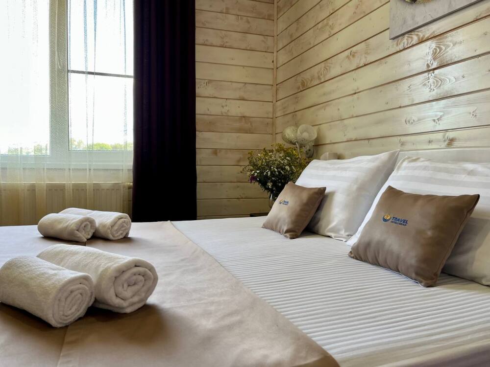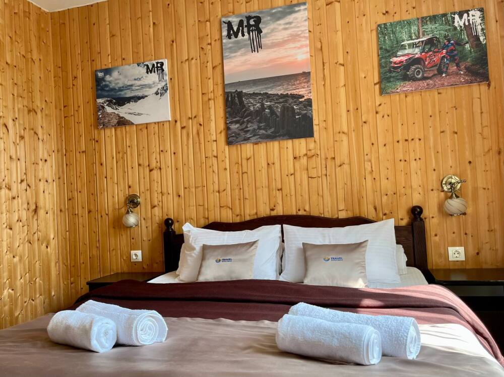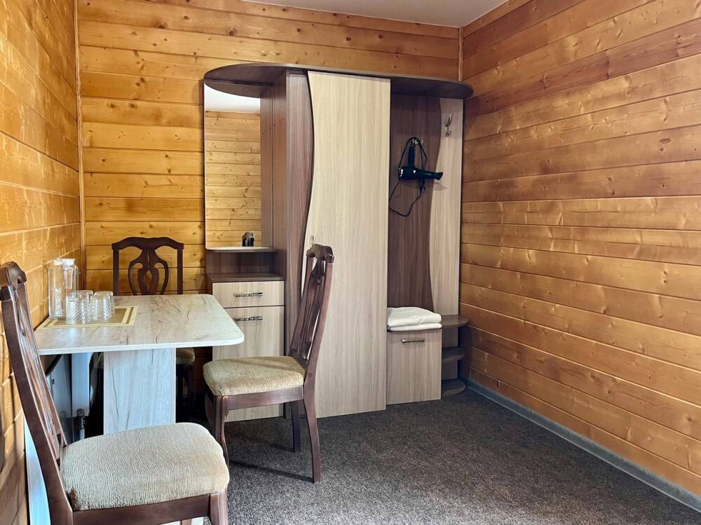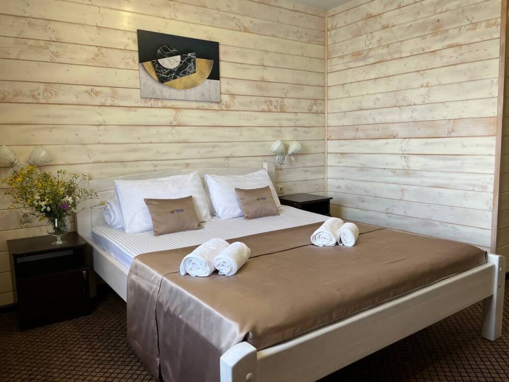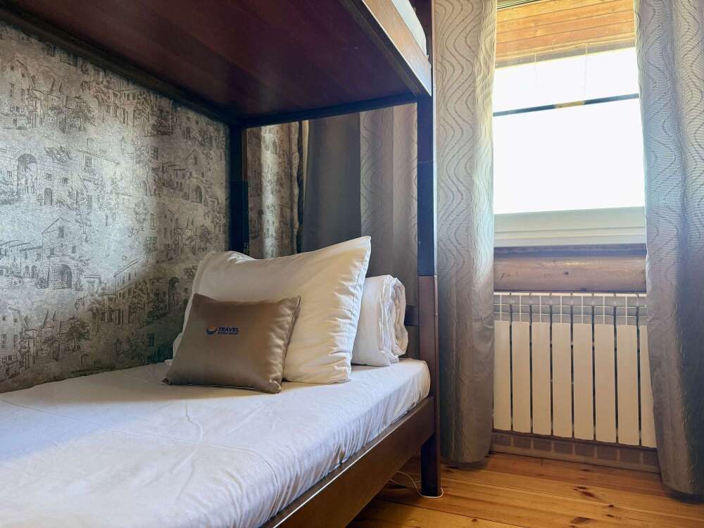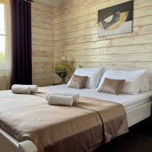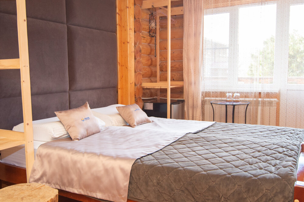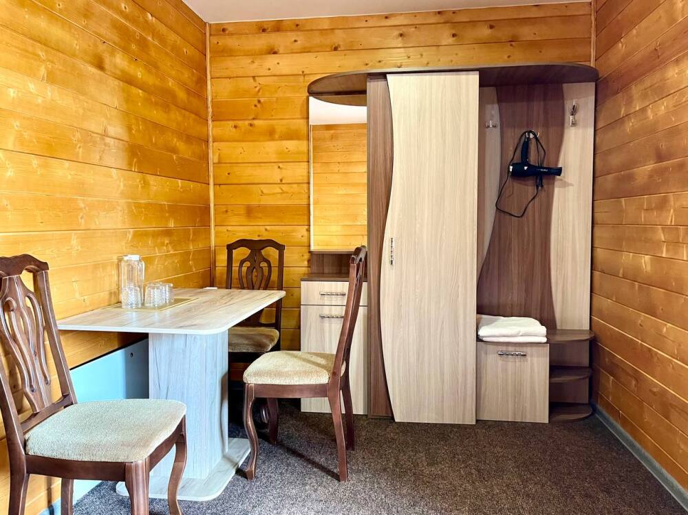 Уютные двухместные номера выполнены в эко‑стиле — в них легко дышится, много натуральных материалов и ощущение спокойствия. Просторная кровать с тёплыми одеялами и ортопедическими подушками обеспечивает по‑настоящему комфортный отдых.