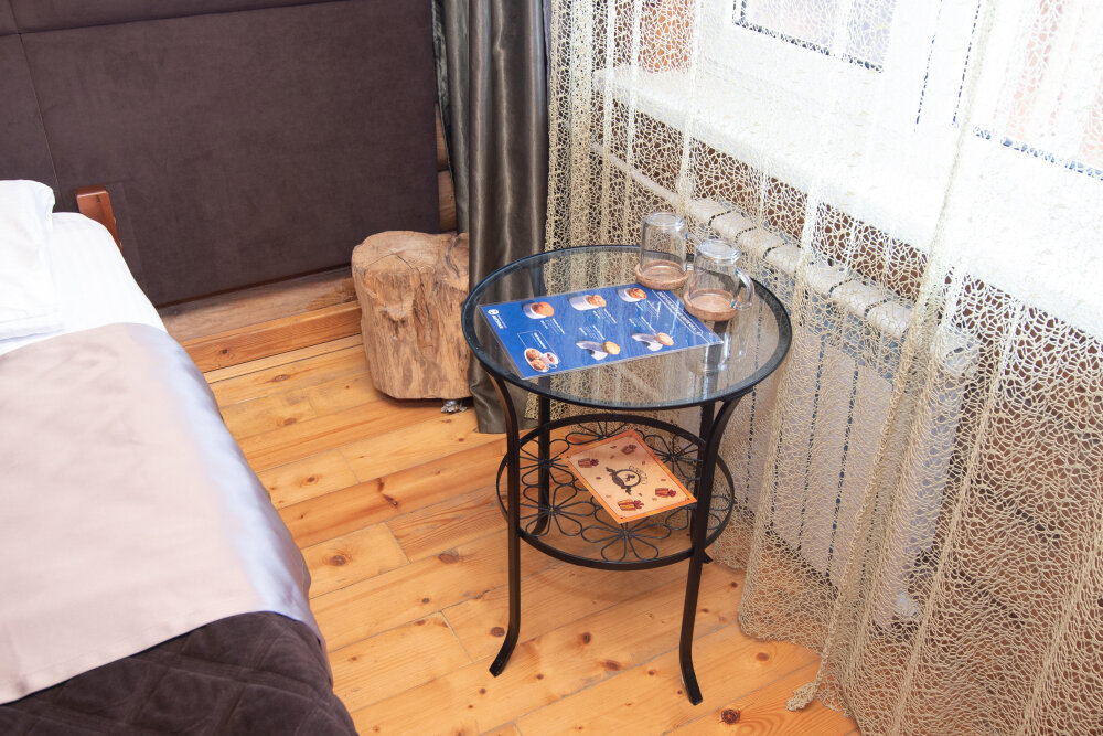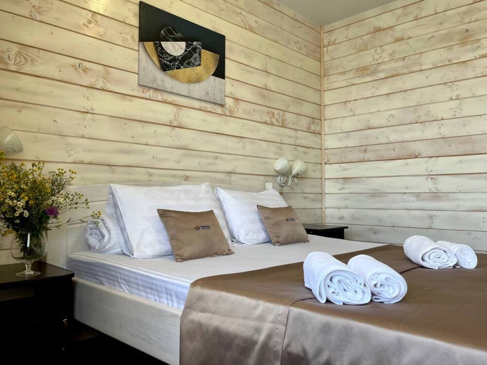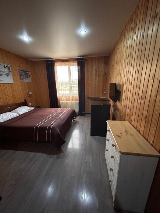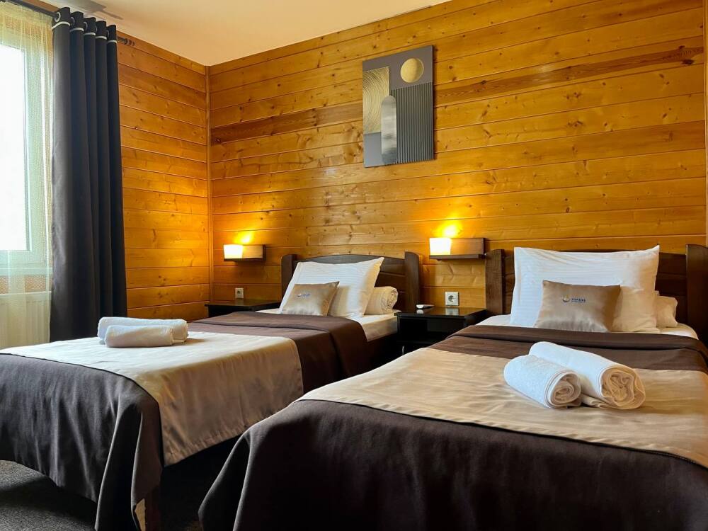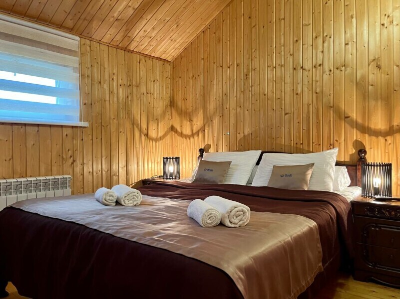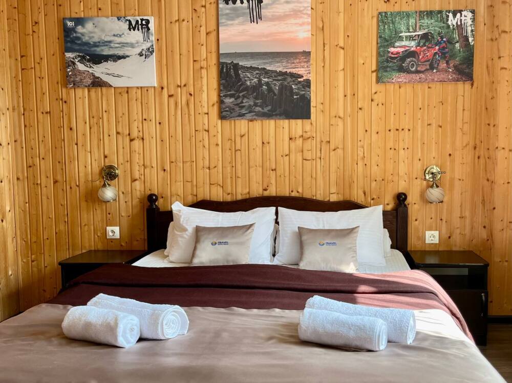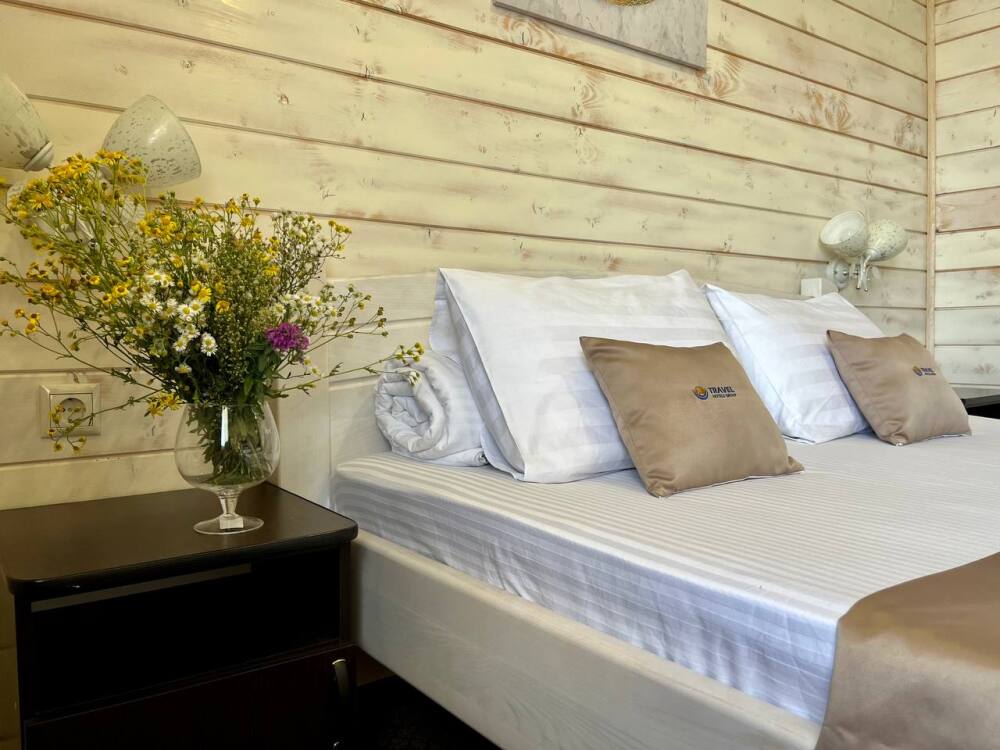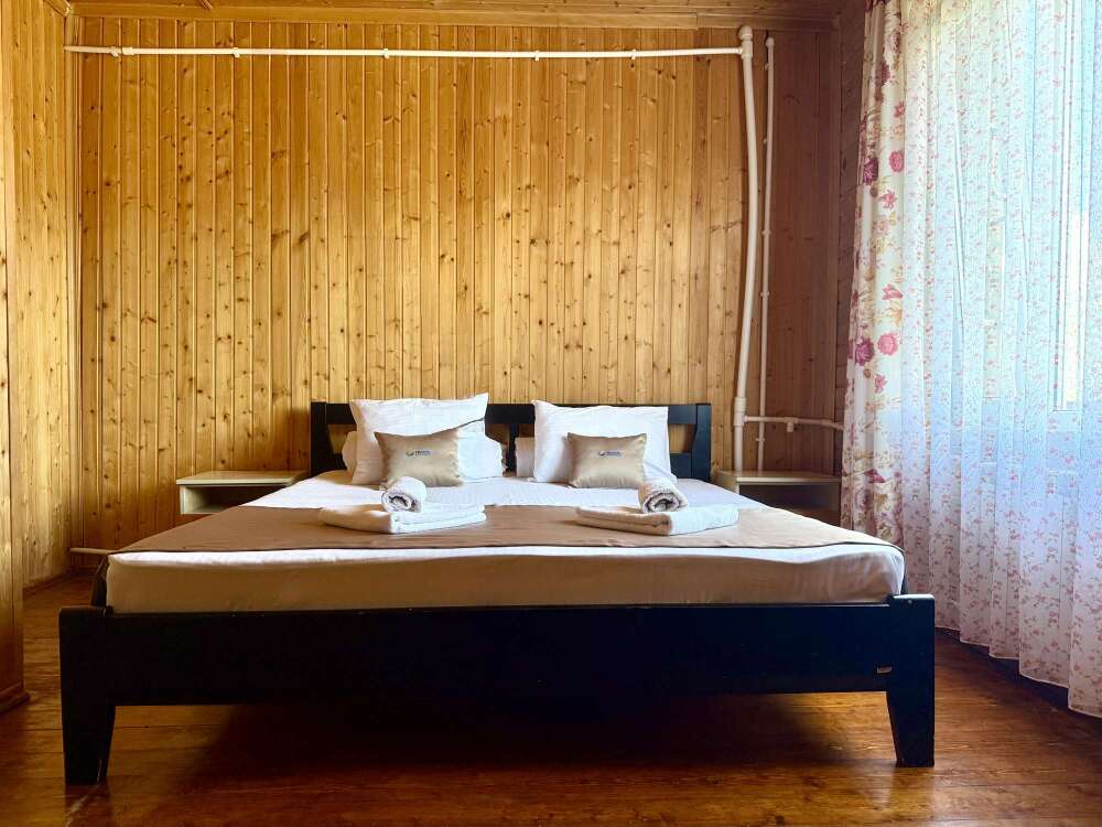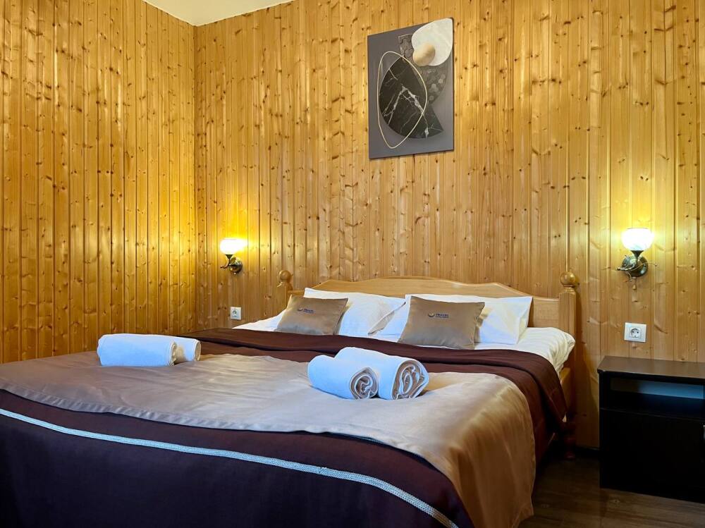 Уютные двухместные номера выполнены в эко‑стиле — в них легко дышится, много натуральных материалов и ощущение спокойствия. Просторная кровать с тёплыми одеялами и ортопедическими подушками обеспечивает по‑настоящему комфортный отдых.
