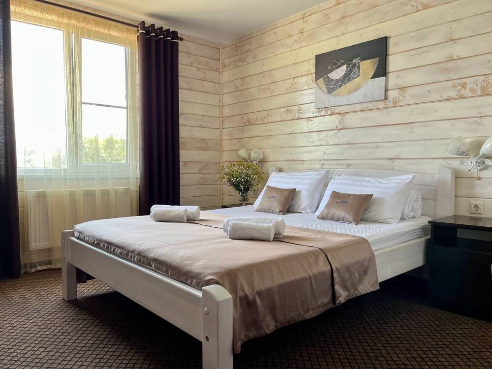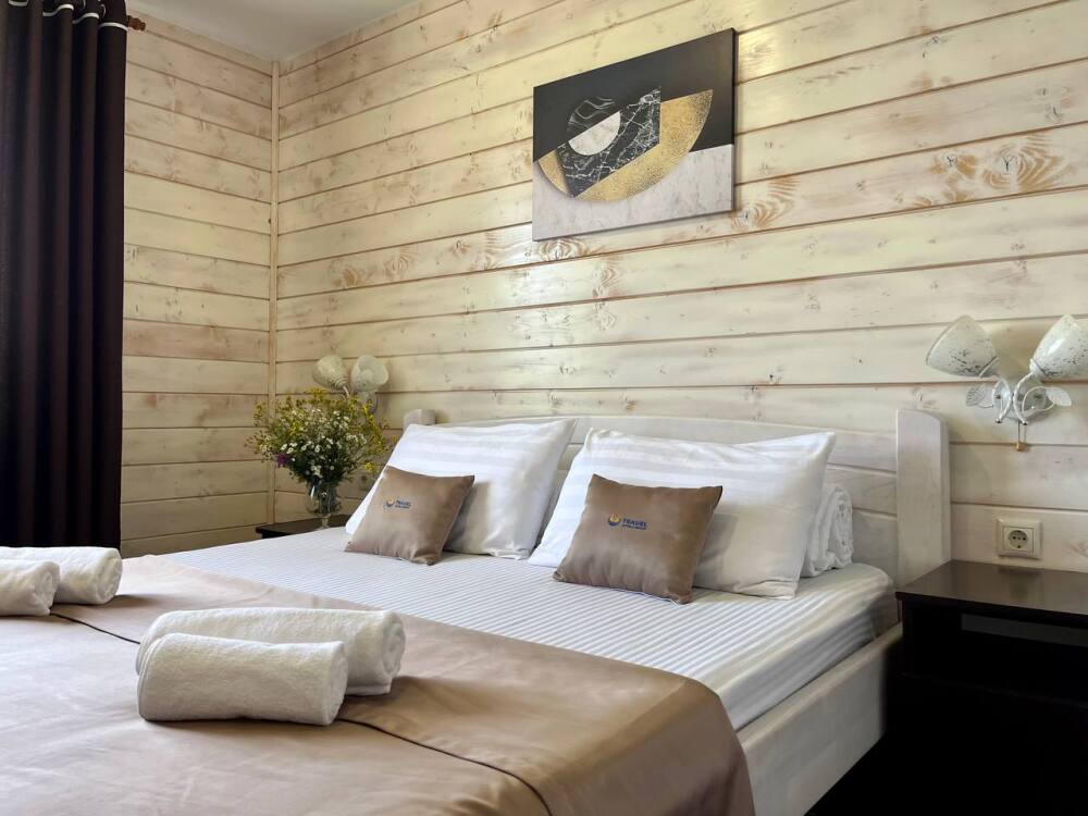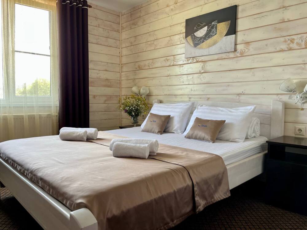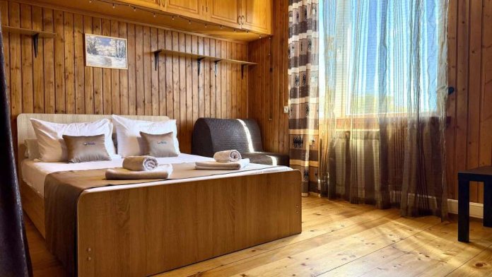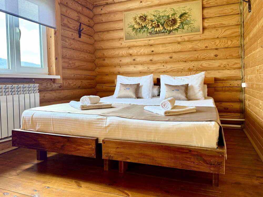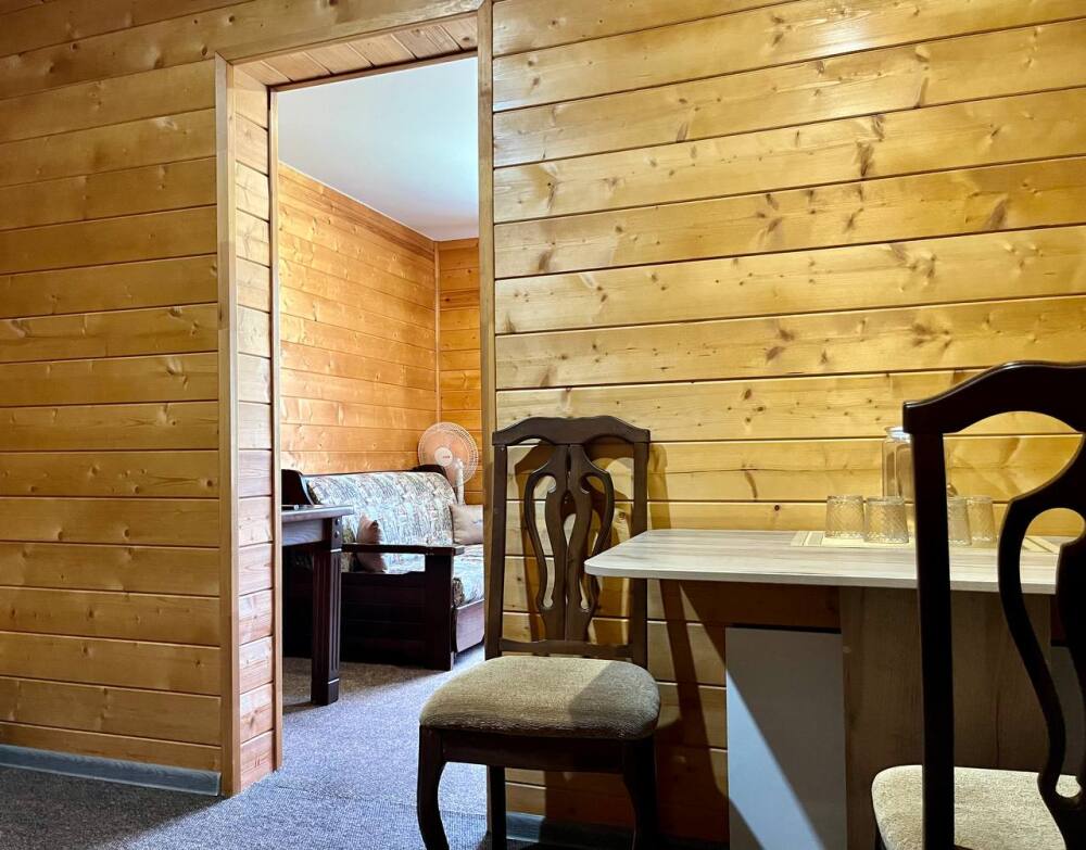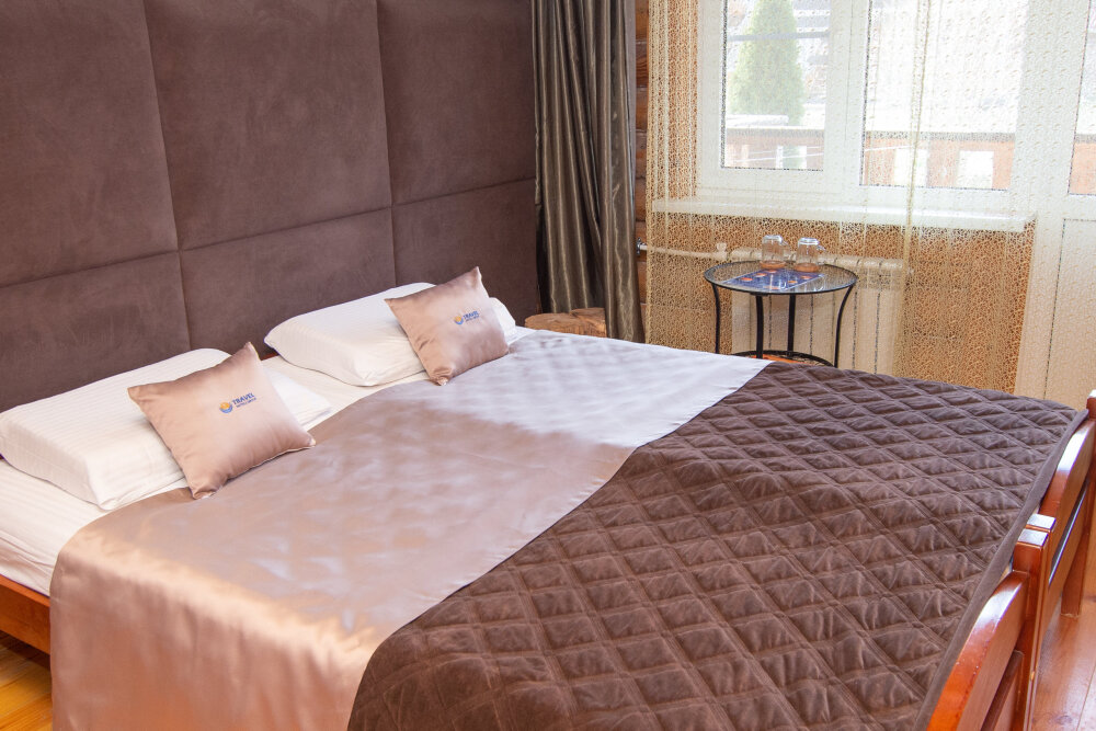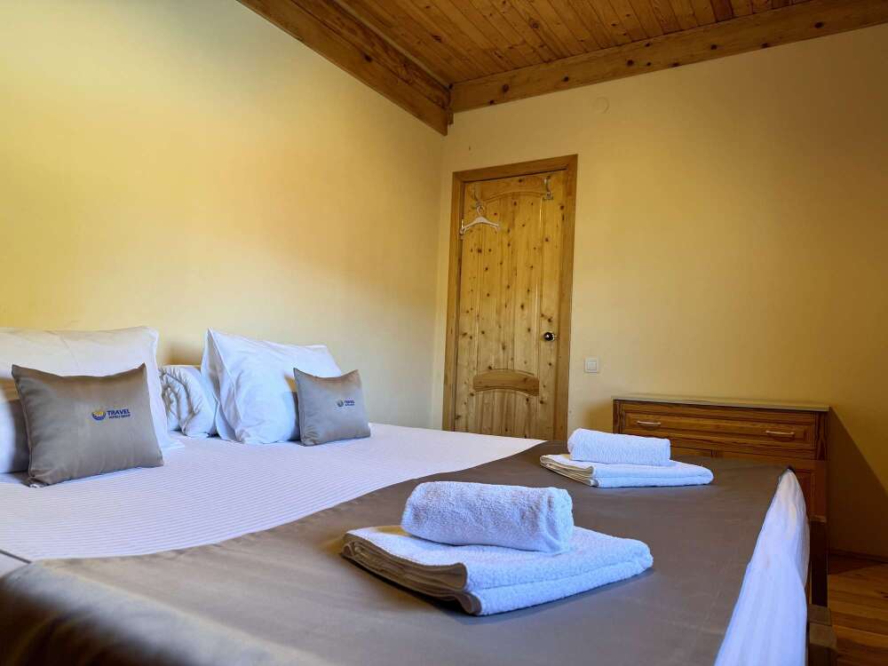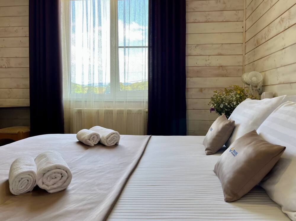 Уютные двухместные номера выполнены в эко‑стиле — в них легко дышится, много натуральных материалов и ощущение спокойствия. Просторная кровать с тёплыми одеялами и ортопедическими подушками обеспечивает по‑настоящему комфортный отдых.