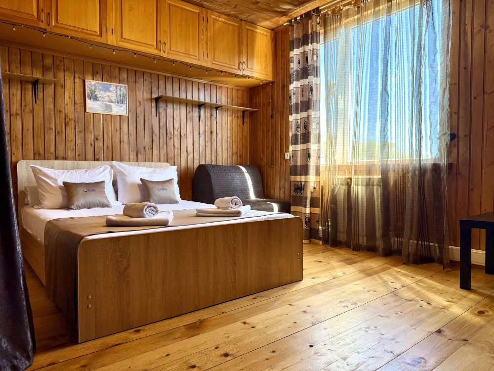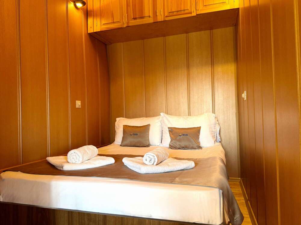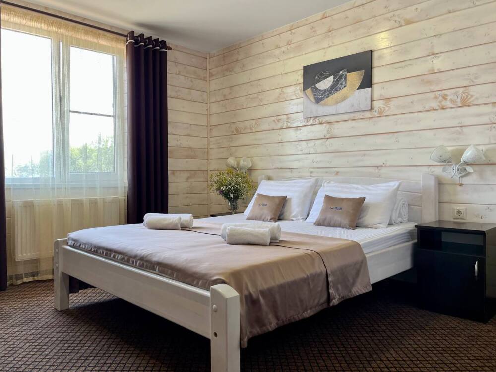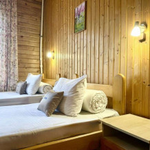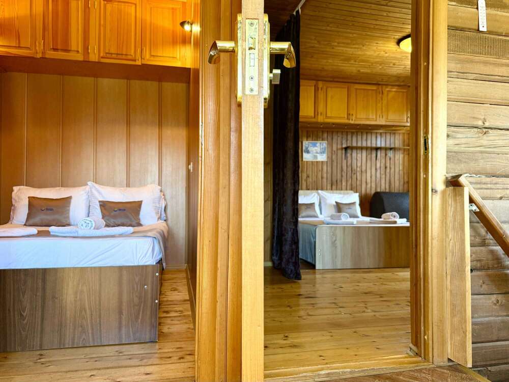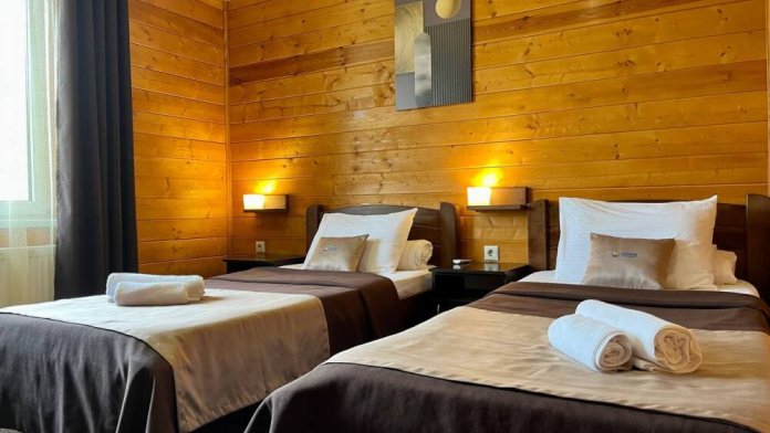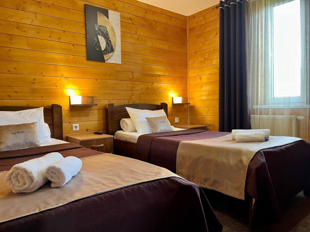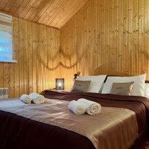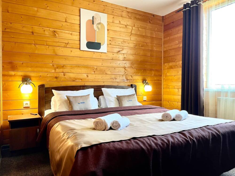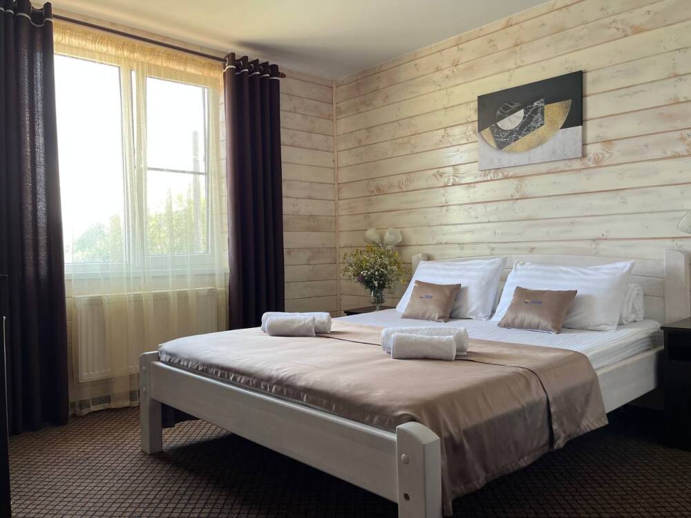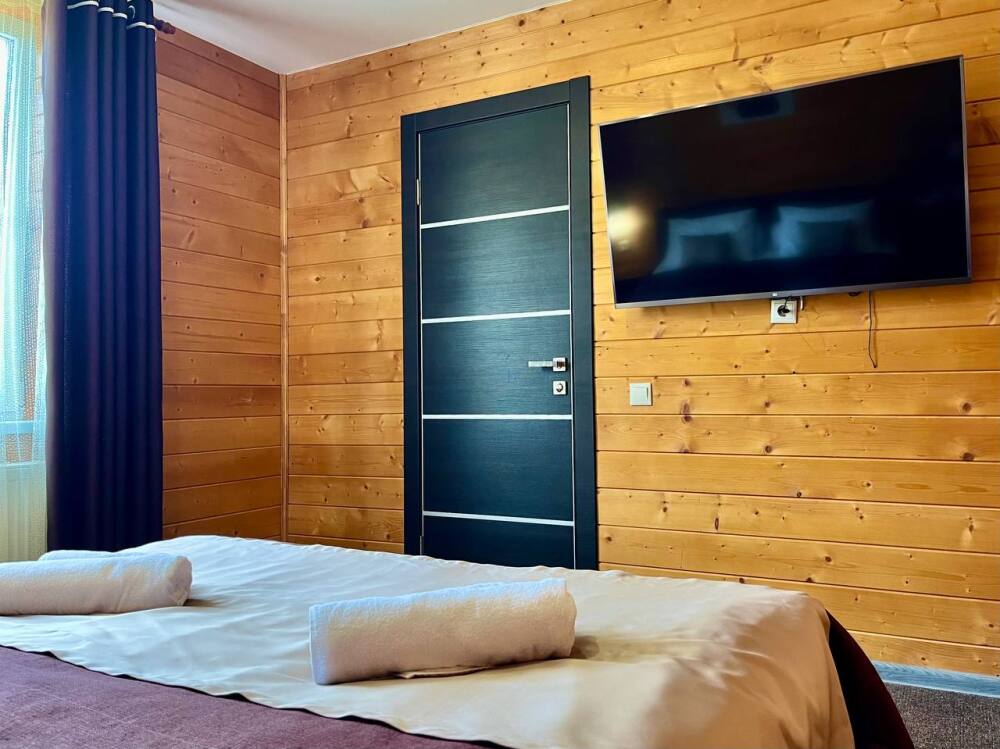 Уютные двухместные номера выполнены в эко‑стиле — в них легко дышится, много натуральных материалов и ощущение спокойствия. Просторная кровать с тёплыми одеялами и ортопедическими подушками обеспечивает по‑настоящему комфортный отдых.