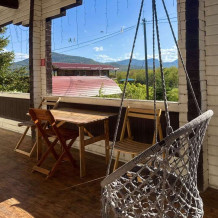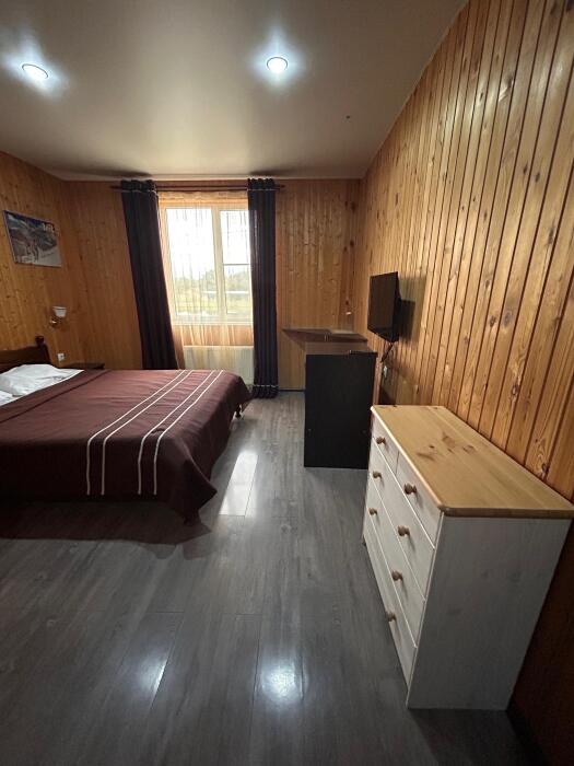 Уютный однокомнатный номер на 4-х (возможно дополнительное место - еврораскладушка) , оборудованный всем необходимым для комфортного проживания. Из окна открывается потрясающий вид на горы.