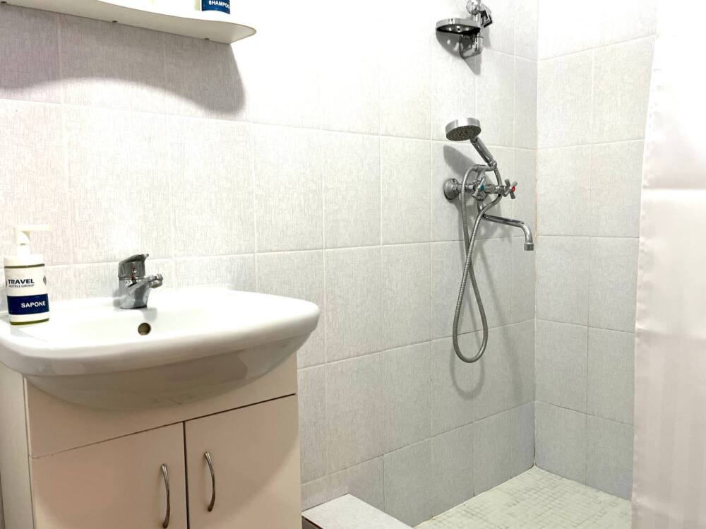 В распоряжении гостей: ванная комната (душ/туалет/раковина), одна 2-спальная кровать и 2 односпальные кровати, необходимые косметические и гигиенические средства (шампунь, мыло, гель), необходимый комплект домашнего текстиля, телевизор, холодильник. Фен (на ресепшене).