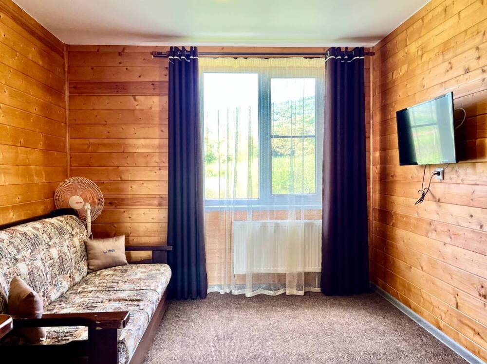Уютный однокомнатный номер , оборудованный всем необходимым для комфортного проживания. Из окна открывается потрясающий вид на горы.