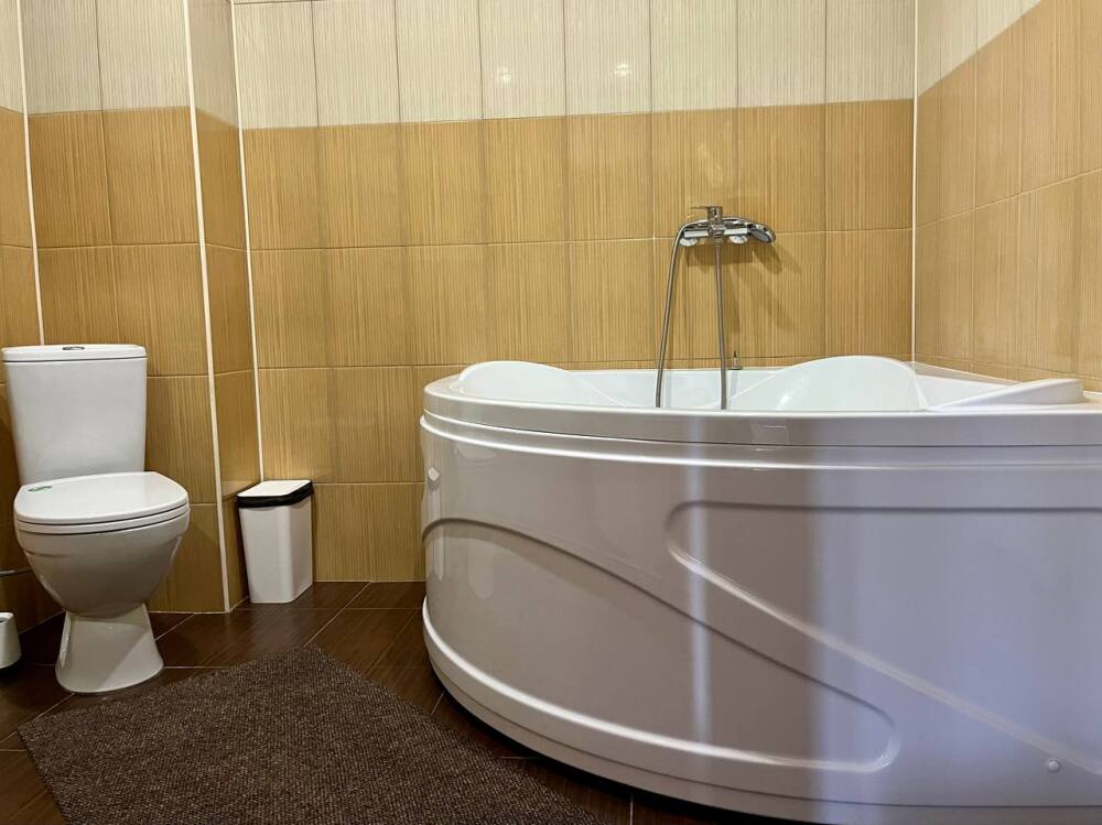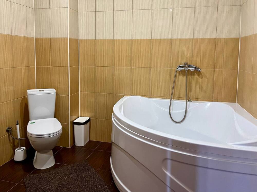 В распоряжении гостей: ванная комната (душ/туалет/раковина), одна 2-спальная кровать и 2-спальный диван, необходимые косметические и гигиенические средства (шампунь, мыло, гель), необходимый комплект домашнего текстиля, телевизор, холодильник. Фен (на ресепшене).